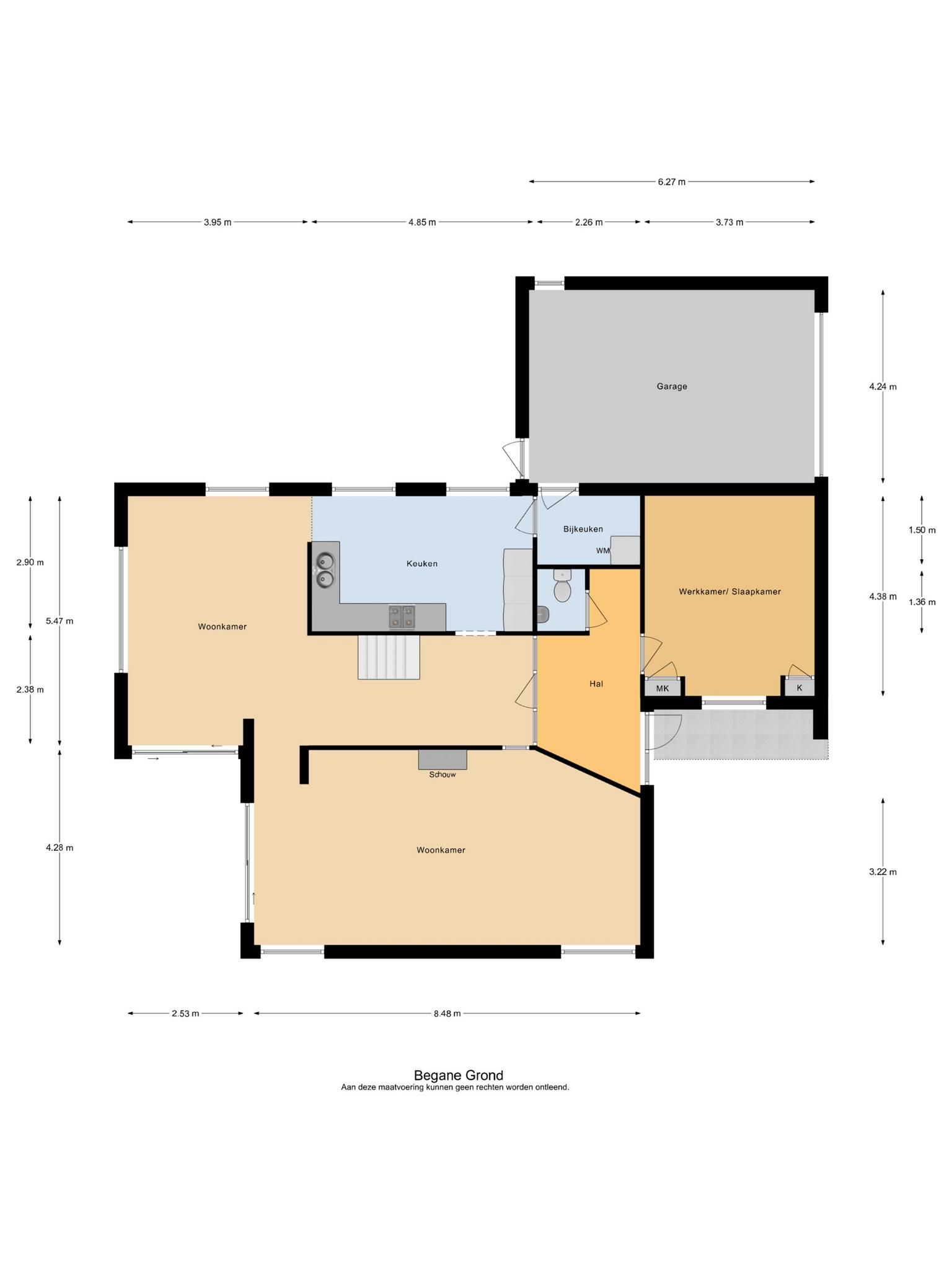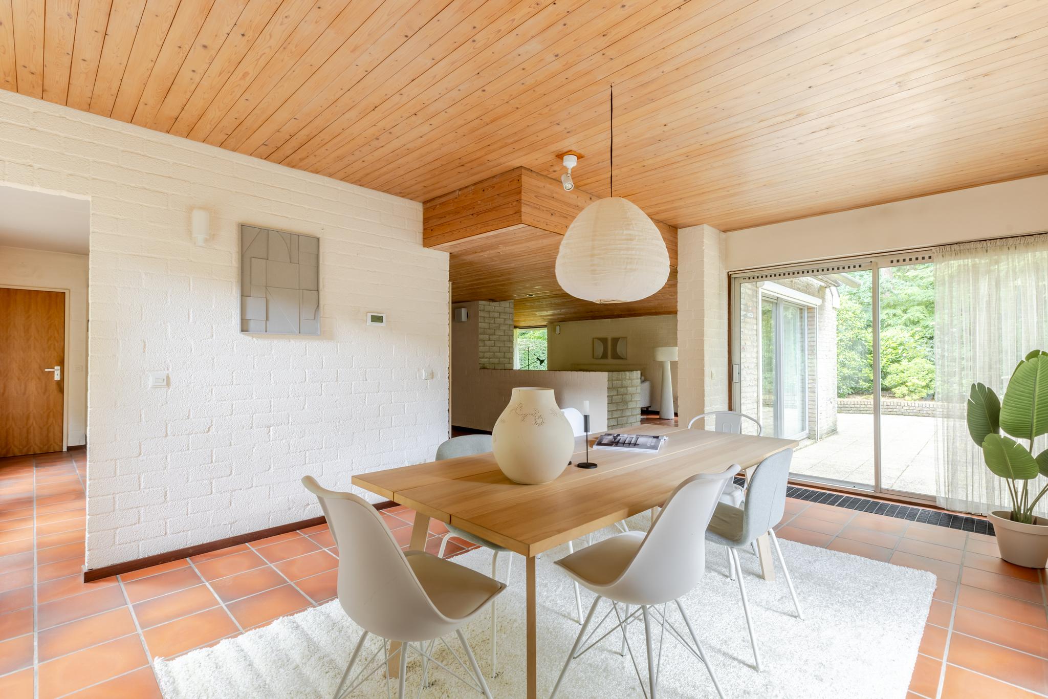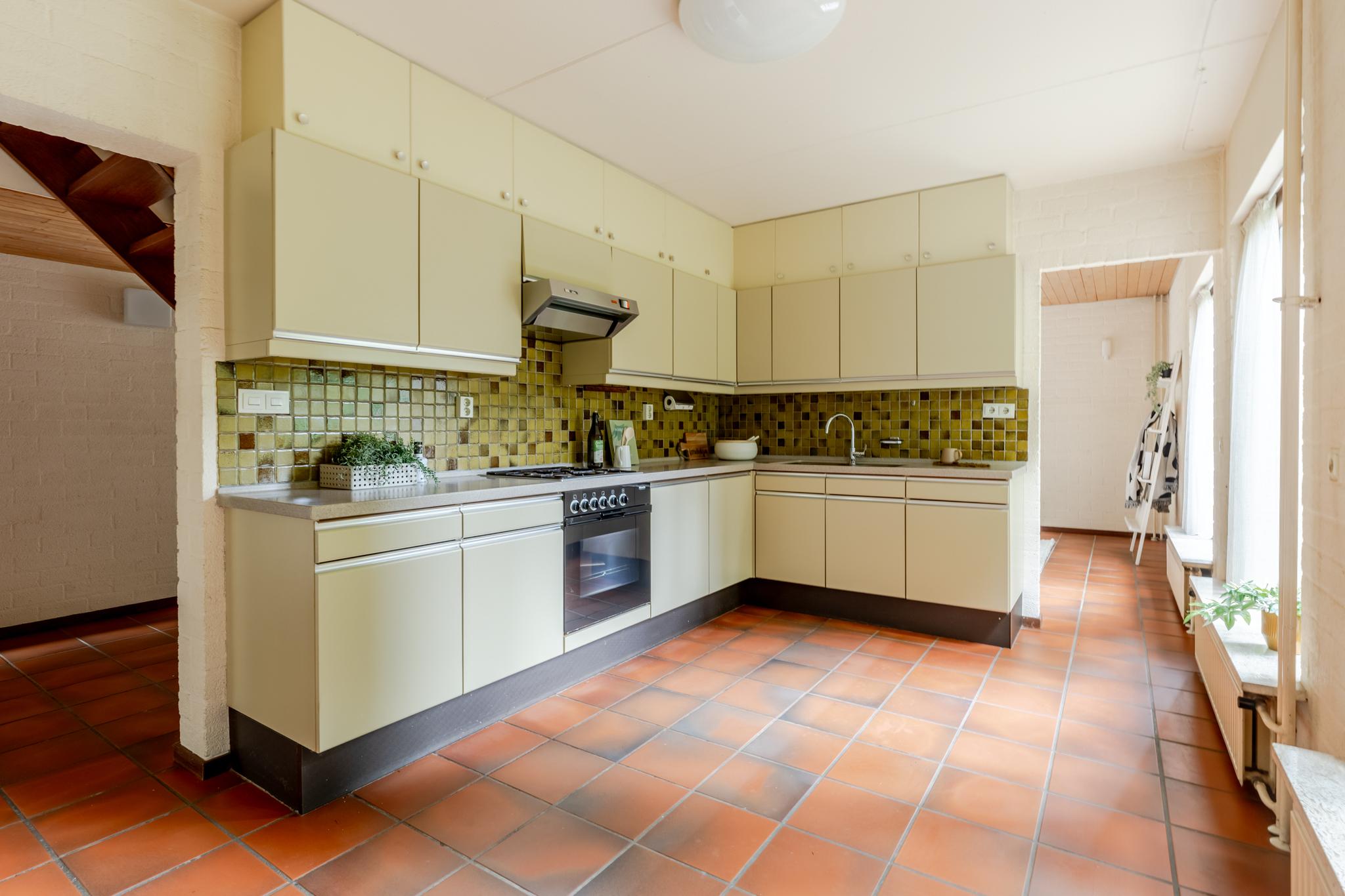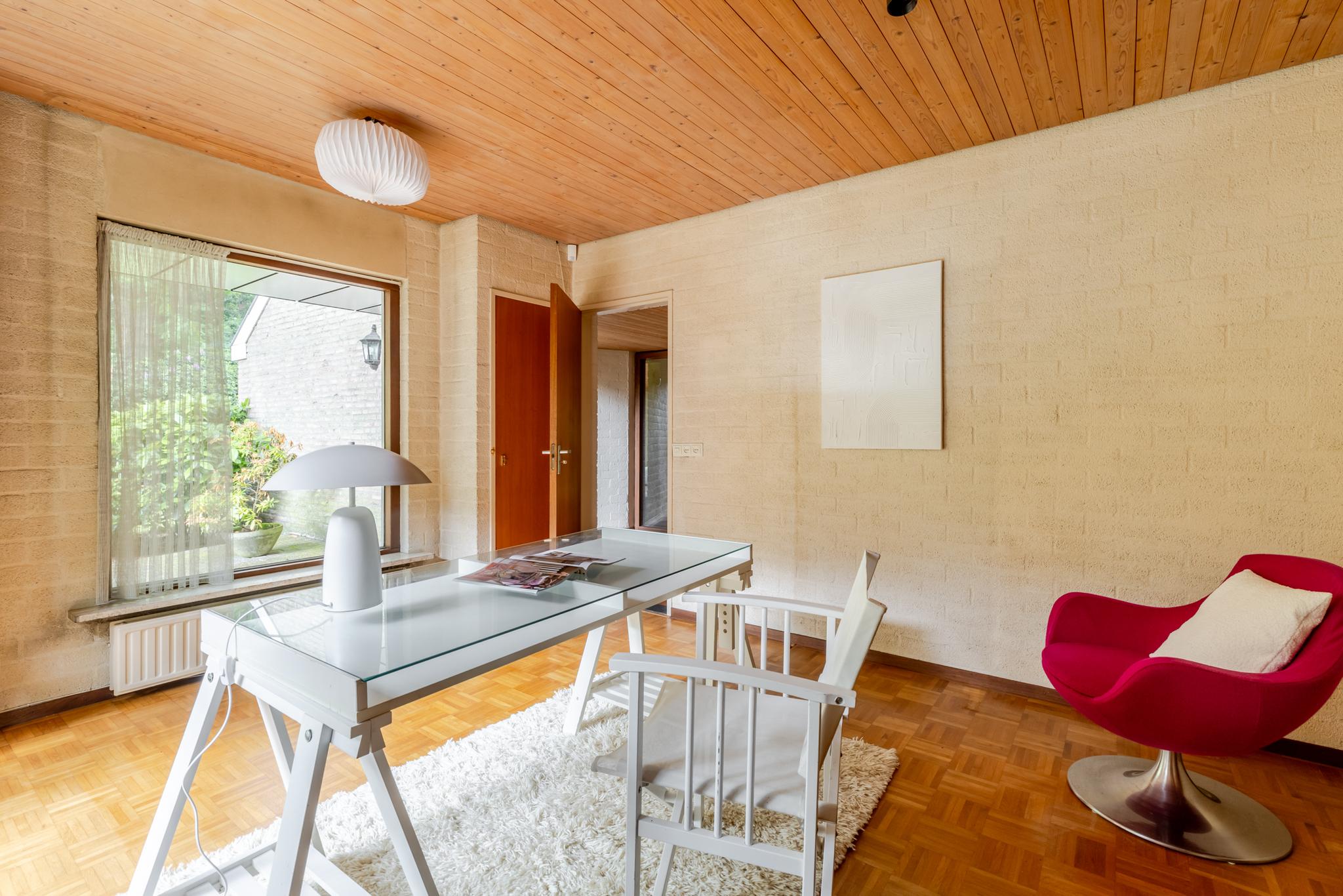 Omringd door het groen ligt deze charmante woning. Via een diepe en brede oprit rijd je het perceel op, hier is meer dan genoeg ruimte voor meerdere auto's. De woning betreed je via de entreehal met tochtportaal, waar je toegang krijgt tot een toilet met fonteintje, een (slaap)kamer en de woonkamer. De extra kamer, die nu dienst doet als werkkamer, kan eenvoudig worden ingericht als slaapkamer, waardoor levensloopbestendig wonen dus ook mogelijk is. In deze kamer vind je ook de meterkast. De woonkamer is royaal en flexibel in te delen met voldoende plek voor een apart zitgedeelte en een eetkamer. Dankzij de grote raampartijen valt het daglicht naar binnen wat de ruimte niet alleen lichter, maar ook warmer en uitnodigender maakt. Het zitgedeelte biedt moeiteloos plek aan een hoekbank, fauteuils en andere meubels. Hier vind je ook nog een sfeervolle haard, ideaal voor de winteravonden en in de eethoek is er meer dan genoeg ruimte voor een royale tafel. Zowel vanuit het zitgedeelte als vanuit de eetkamer loop je via twee schuifpuien zo de tuin in, binnen en buiten lopen hier naadloos in elkaar over. De half open keuken is voorzien van oven, gaskookplaat, koelkast, vriezer en spoelbak. De keuken grenst aan een praktische bijkeuken met aansluiting voor de wasmachine. Vanuit de bijkeuken heb je direct toegang tot de ruime inpandige garage, handig voor je fietsen, auto of als hobbyruimte.