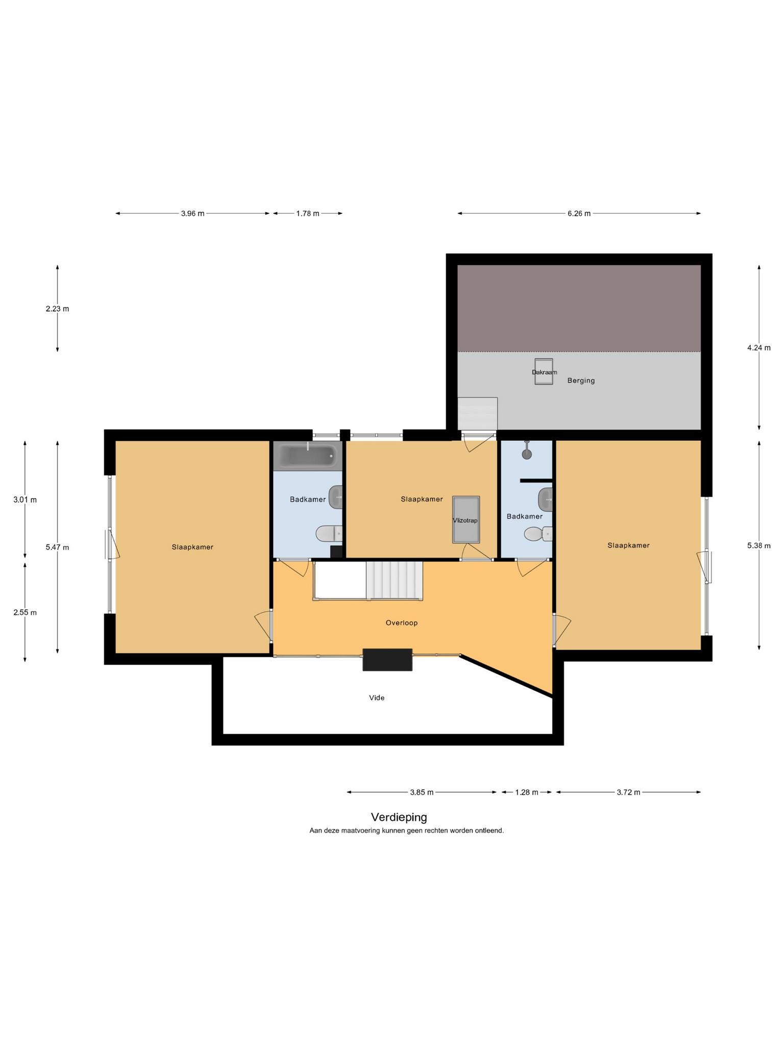 Via de derde slaapkamer bereik je de vliering. Een handige extra ruimte die veel opbergmogelijkheden biedt. Of het nu gaat om koffers, seizoensdecoratie of sportspullen. Hier kun je alles overzichtelijk en uit het zicht kwijt.