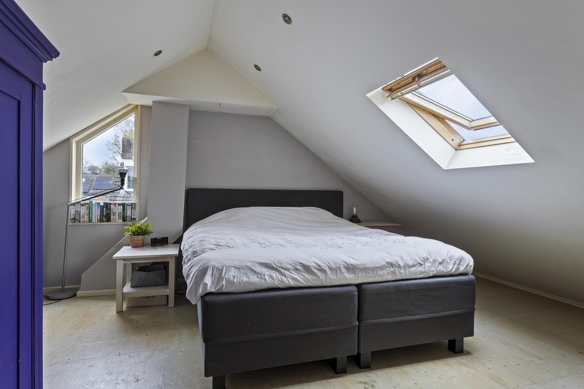 Via de vaste trap te bereiken tweede verdieping. De voorzolder voorziet in opbergruimte en hier is de Intergas CV-opstelling (2022) gesitueerd. Op de zolder is ook een zolderkamer gerealiseerd die in gebruik als ouderslaapkamer.