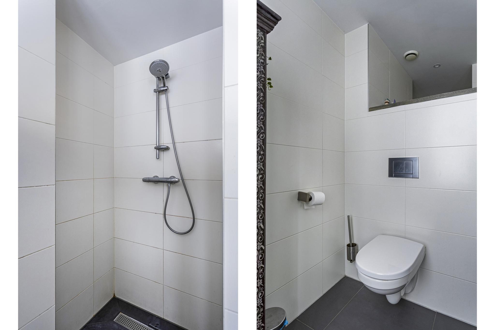 - Toilet, douche en dubbele wastafel
