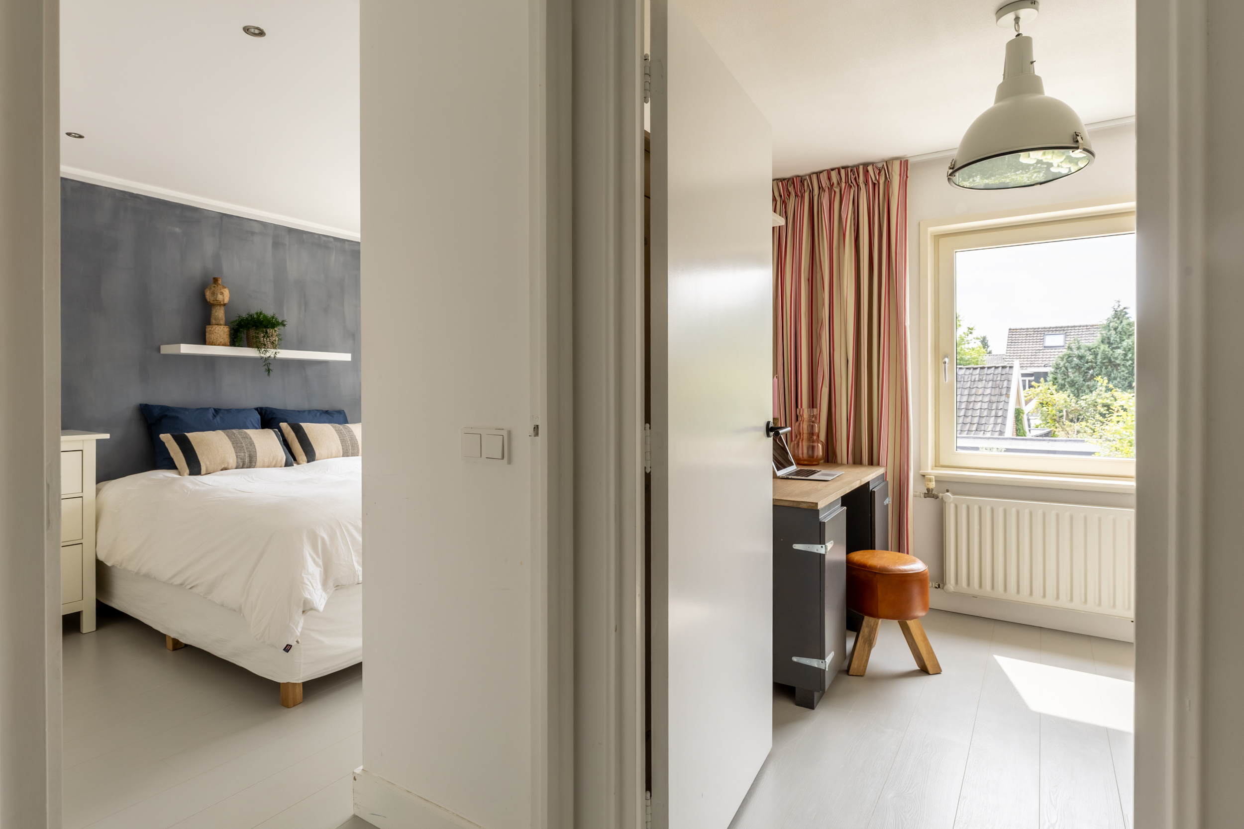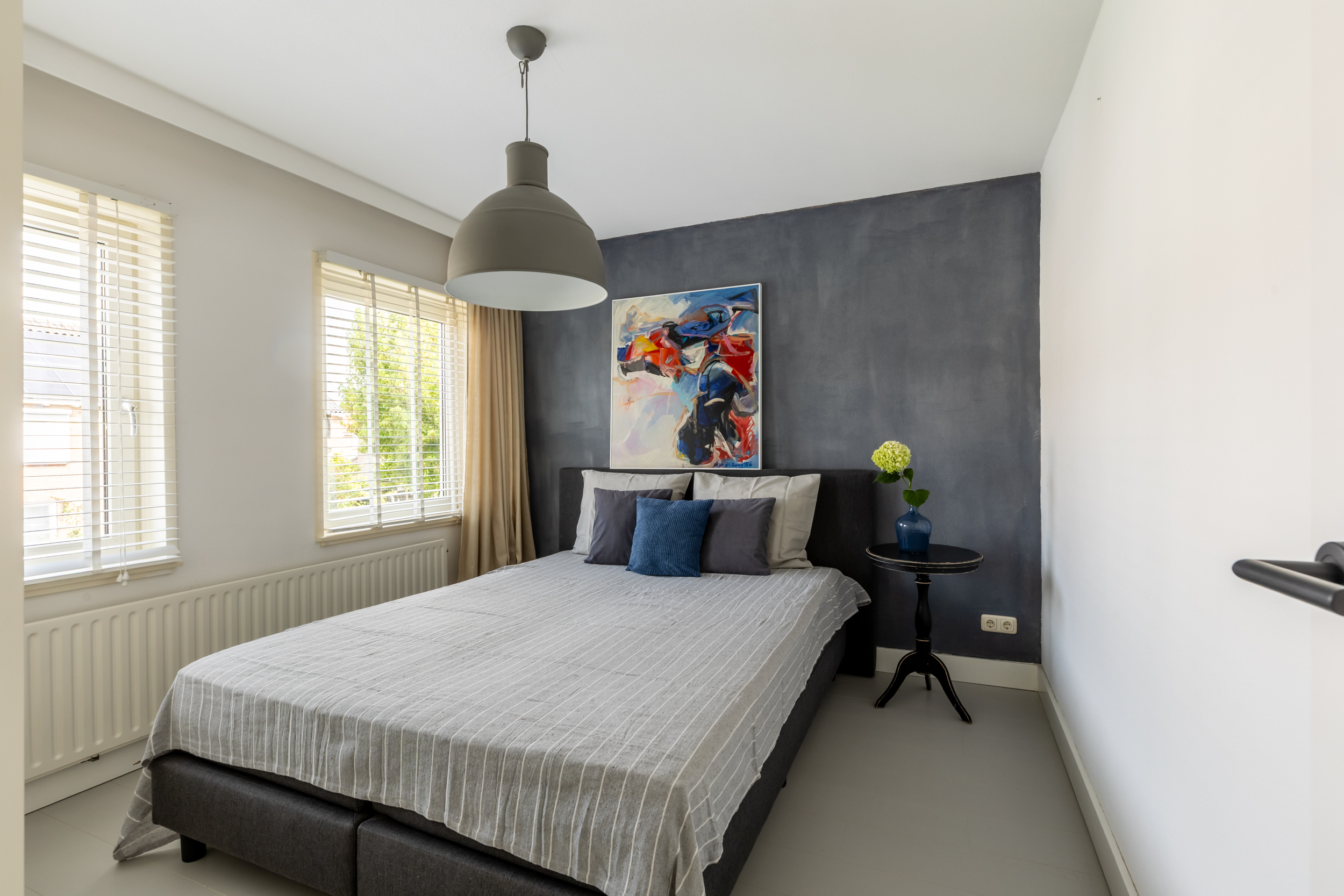 De overloop biedt toegang tot drie keurig afgewerkte slaapkamers en de badkamer. Alle slaapkamers zijn voorzien van een moderne, lichte laminaatvloer en beschikken over grote raampartijen, waarvan één slaapkamer ook nog over rolluiken beschikt.