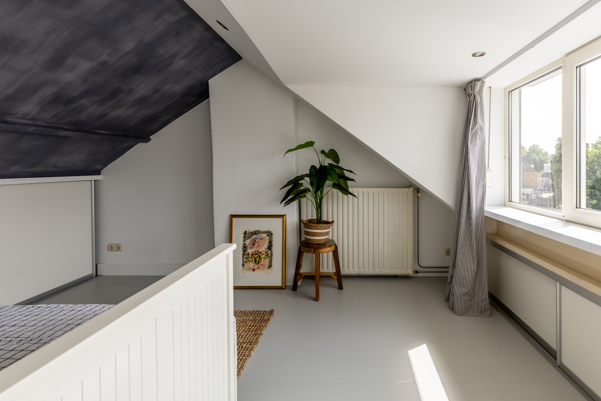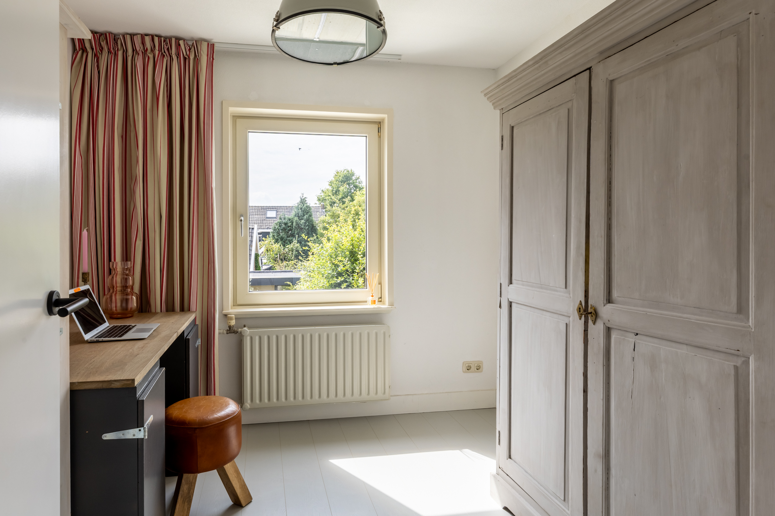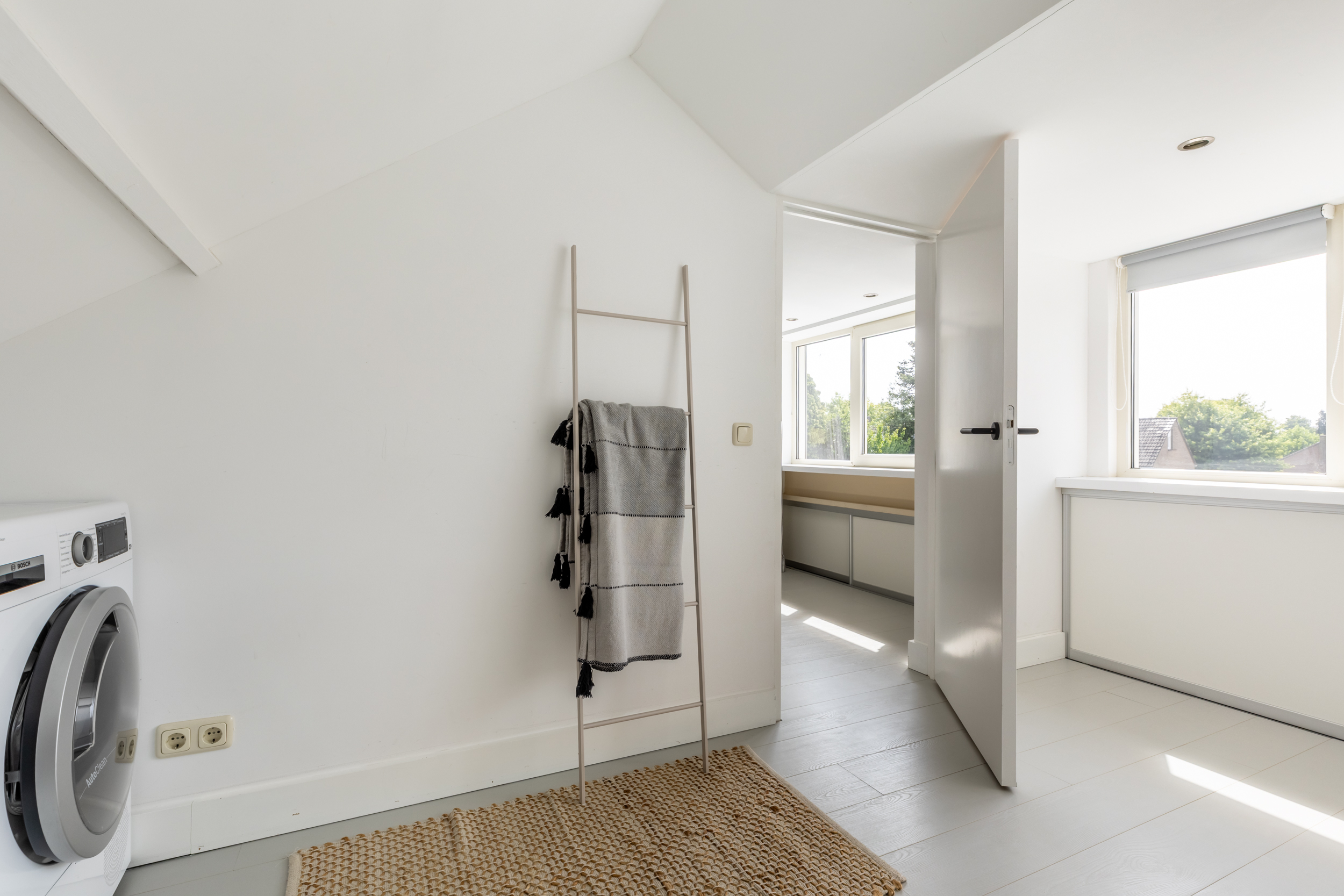 Via een vaste trap bereik je de ruime voorzolder, waar zich de wasmachineaansluiting bevindt. De gehele zolderverdieping is afgewerkt met een lichte laminaatvloer, wat zorgt voor een moderne en uniforme uitstraling. Dankzij het dakkapel over de volledige breedte van de zolder komt er veel natuurlijk licht binnen, waardoor zowel de voorzolder als de vierde slaapkamer aangenaam licht en ruim aanvoelen.
