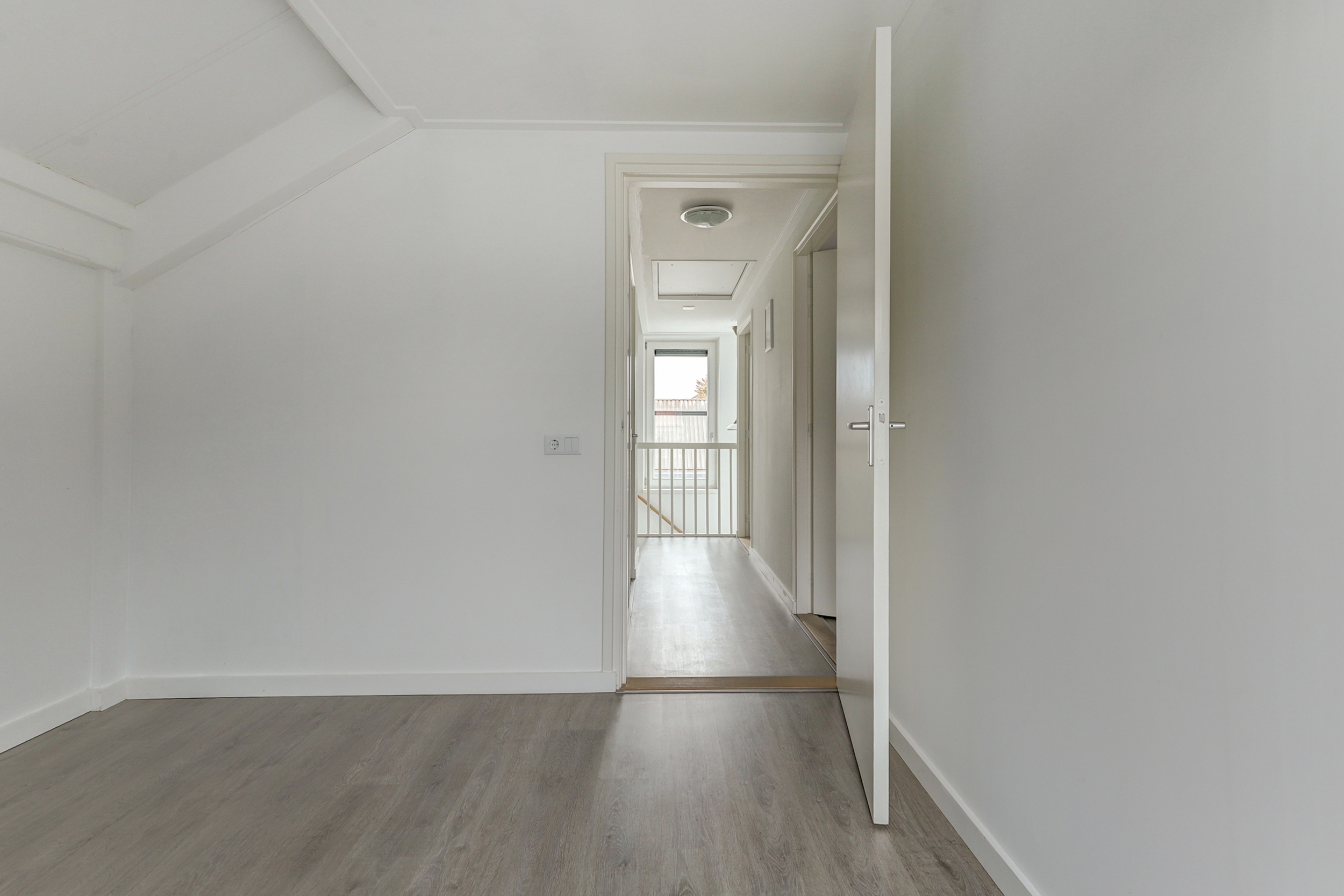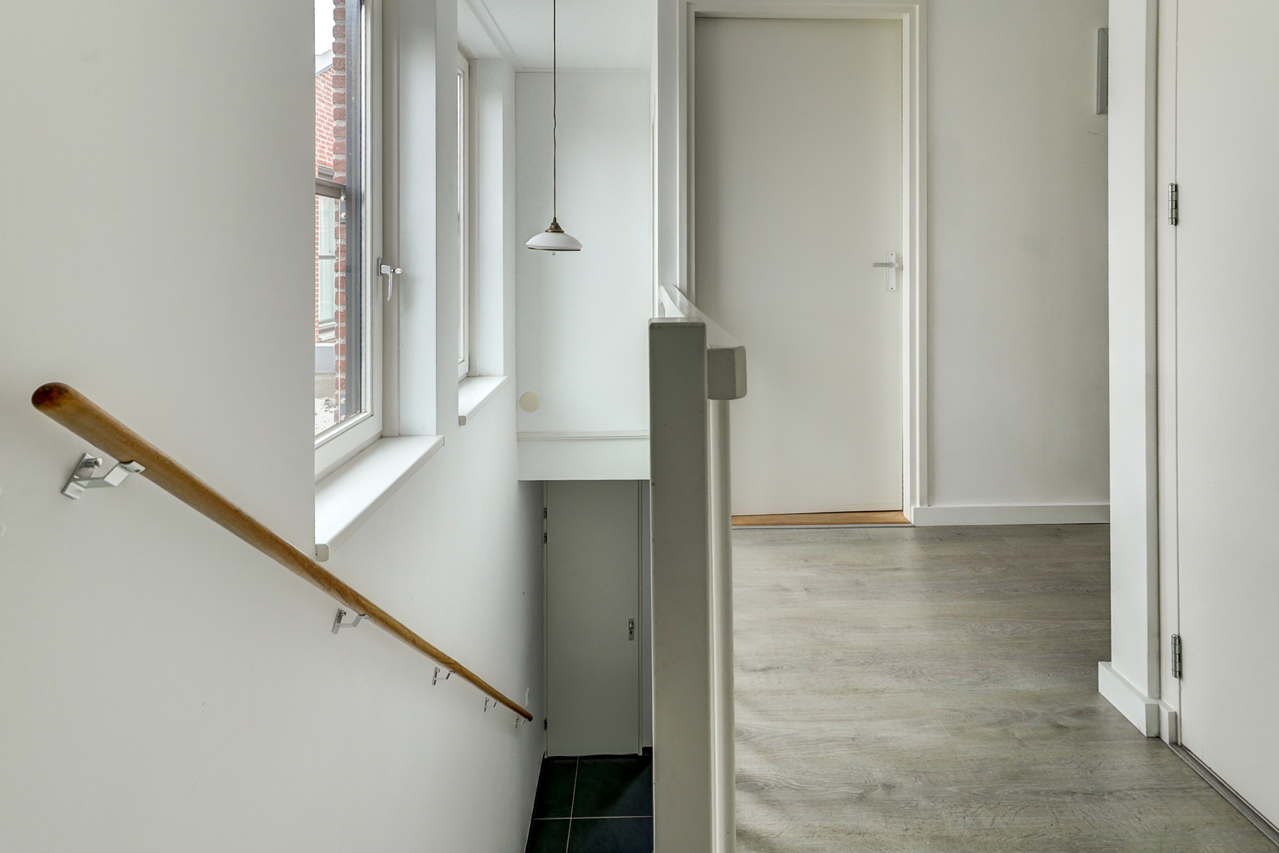 De trap naar de eerste verdieping is fraai verlicht door de grote raampartijen aan de zijkant van de woning, wat zorgt voor een lichte en open overloop. Direct boven vind je de installatieruimte met de cv-ketel (2015).