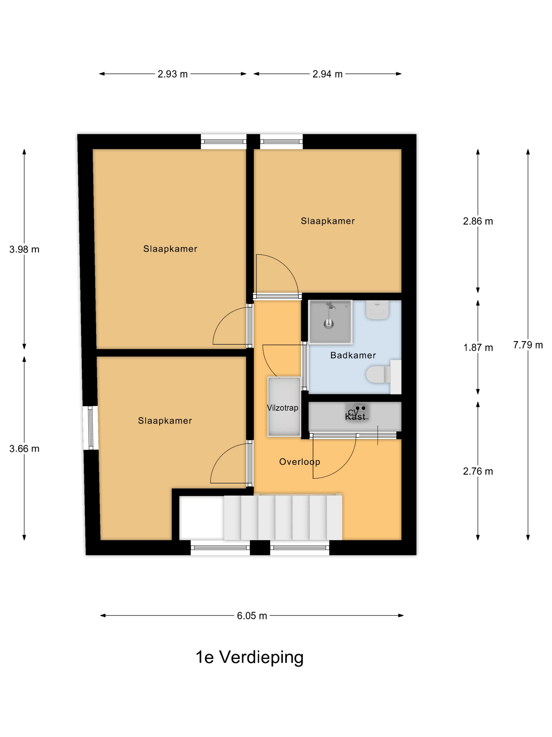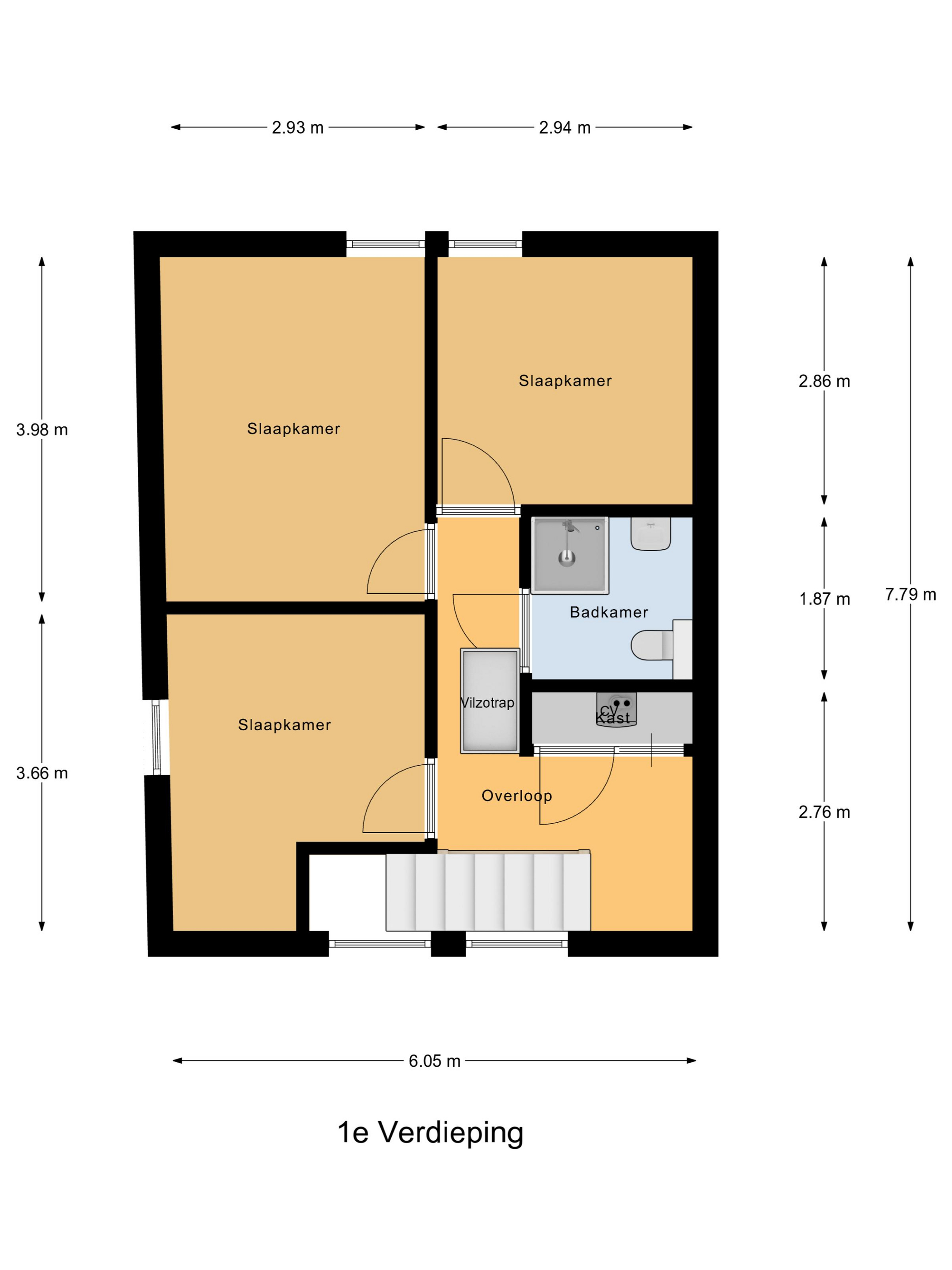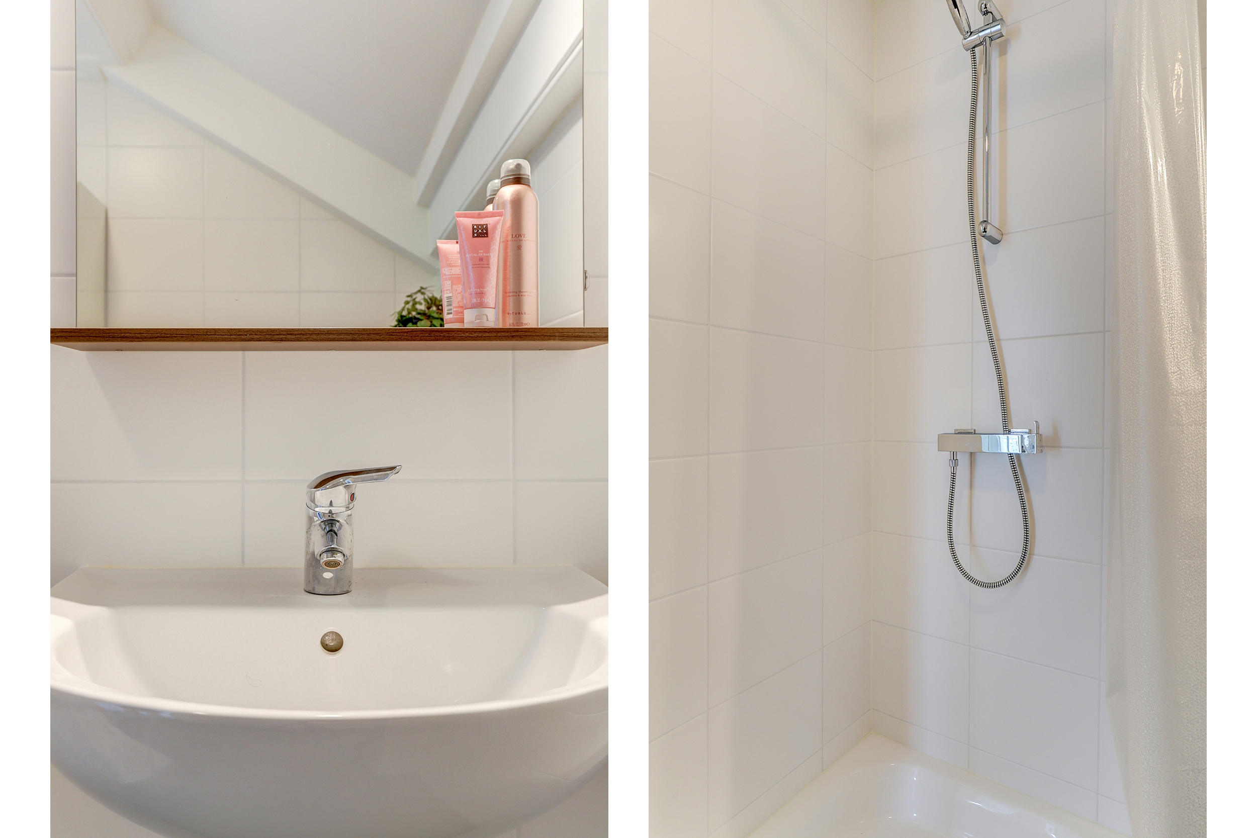 Vanaf de overloop heb je toegang tot drie fijne slaapkamers, die elk voldoende ruimte bieden voor een bed, bureau en kastruimte. Door hun praktische indeling zijn ze uitstekend geschikt als kinderkamer, werkkamer of logeerkamer en daardoor geschikt voor uiteenlopende woonbehoeften. Deze tweede badkamer biedt met douche, toilet en wastafel een comfortabele en praktische oplossing voor gezinnen en logees.
