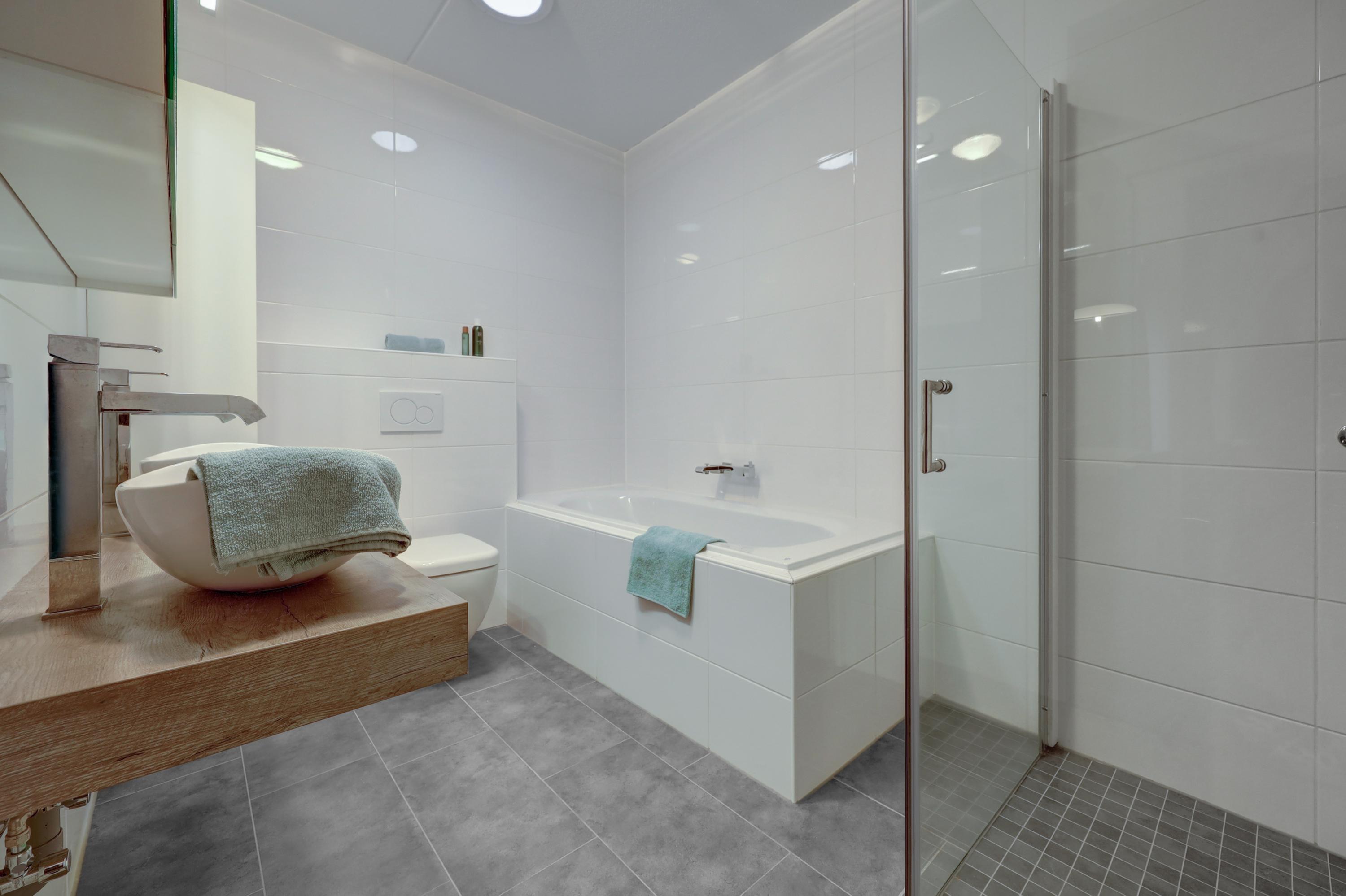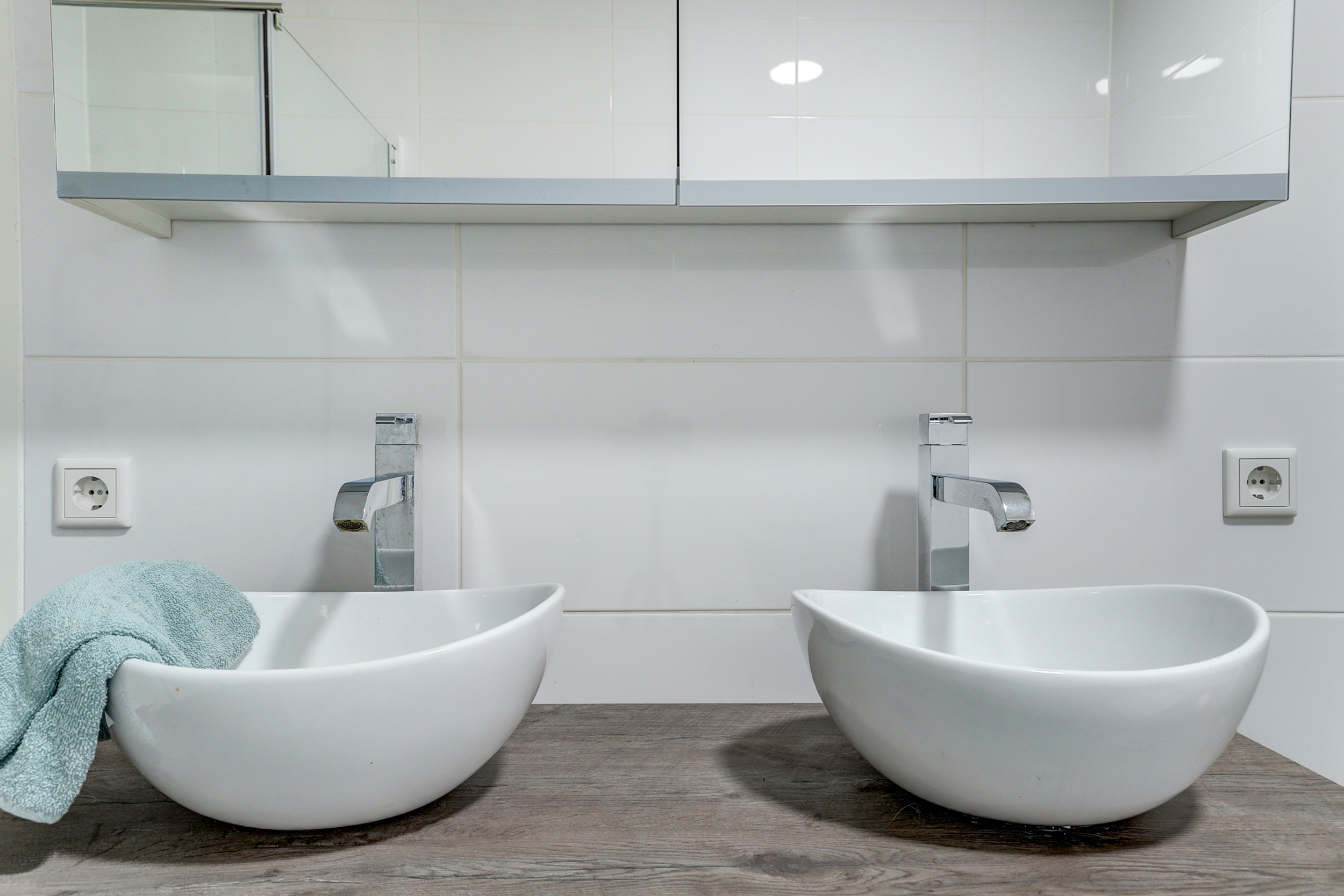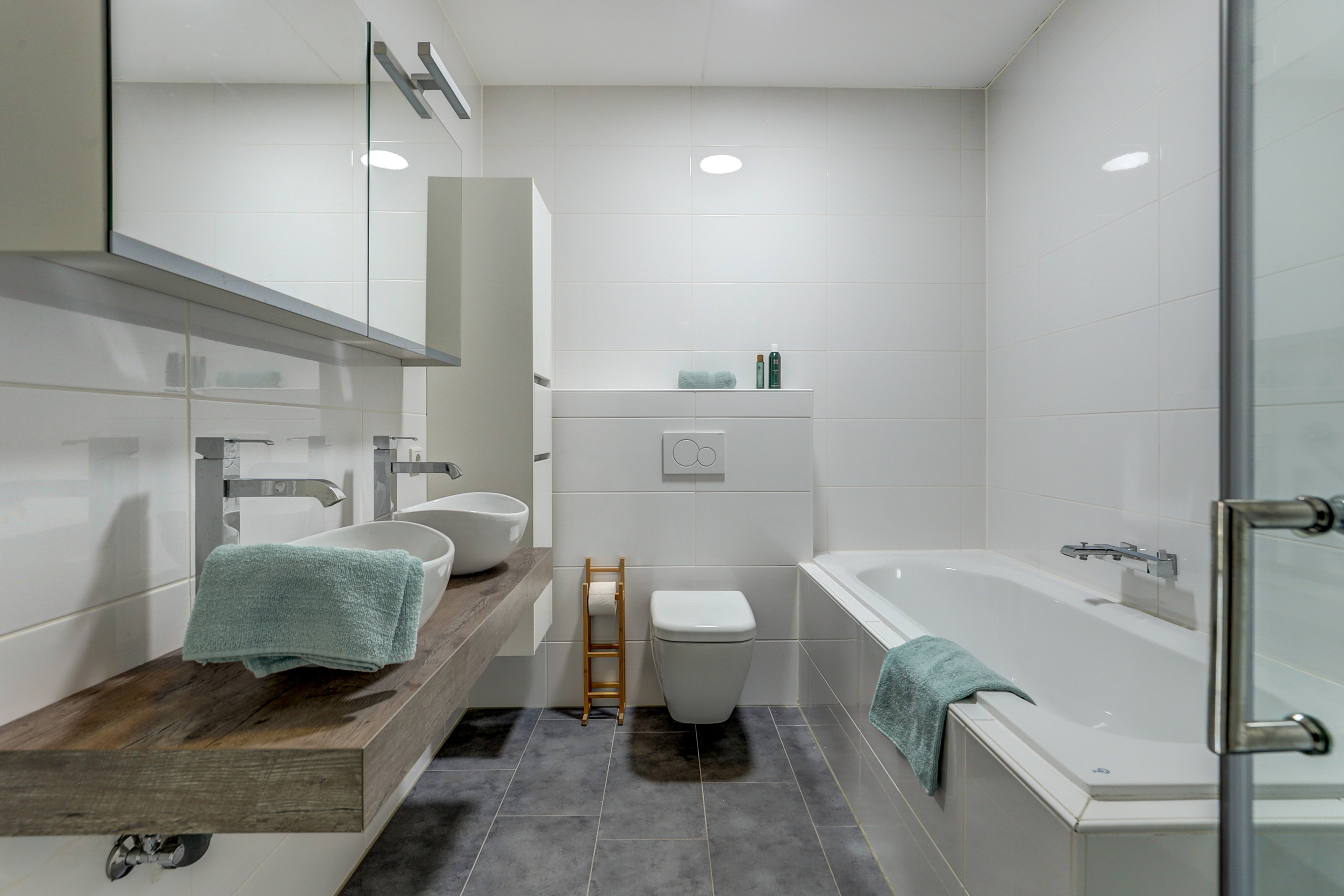 - Toilet, douche, wastafel, ligbad en dubbele wastafel