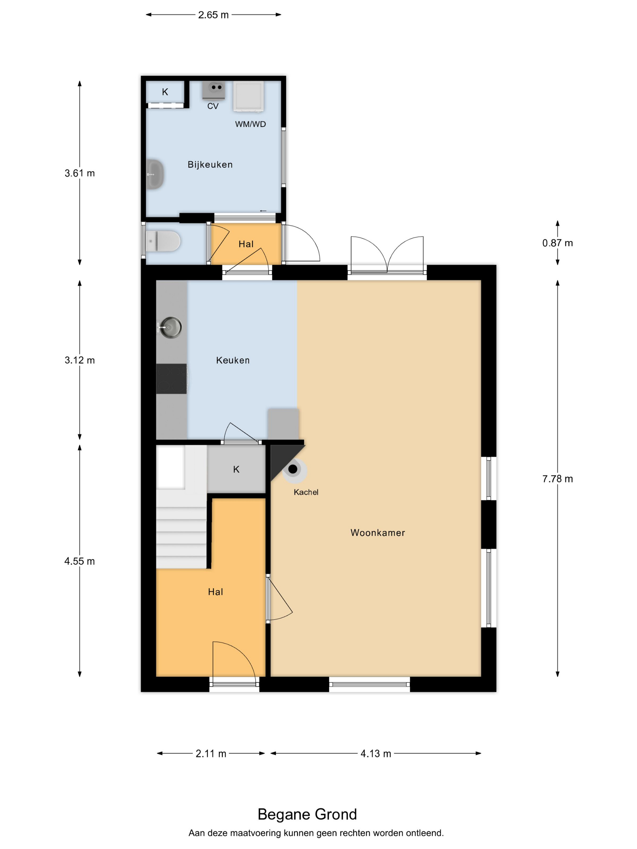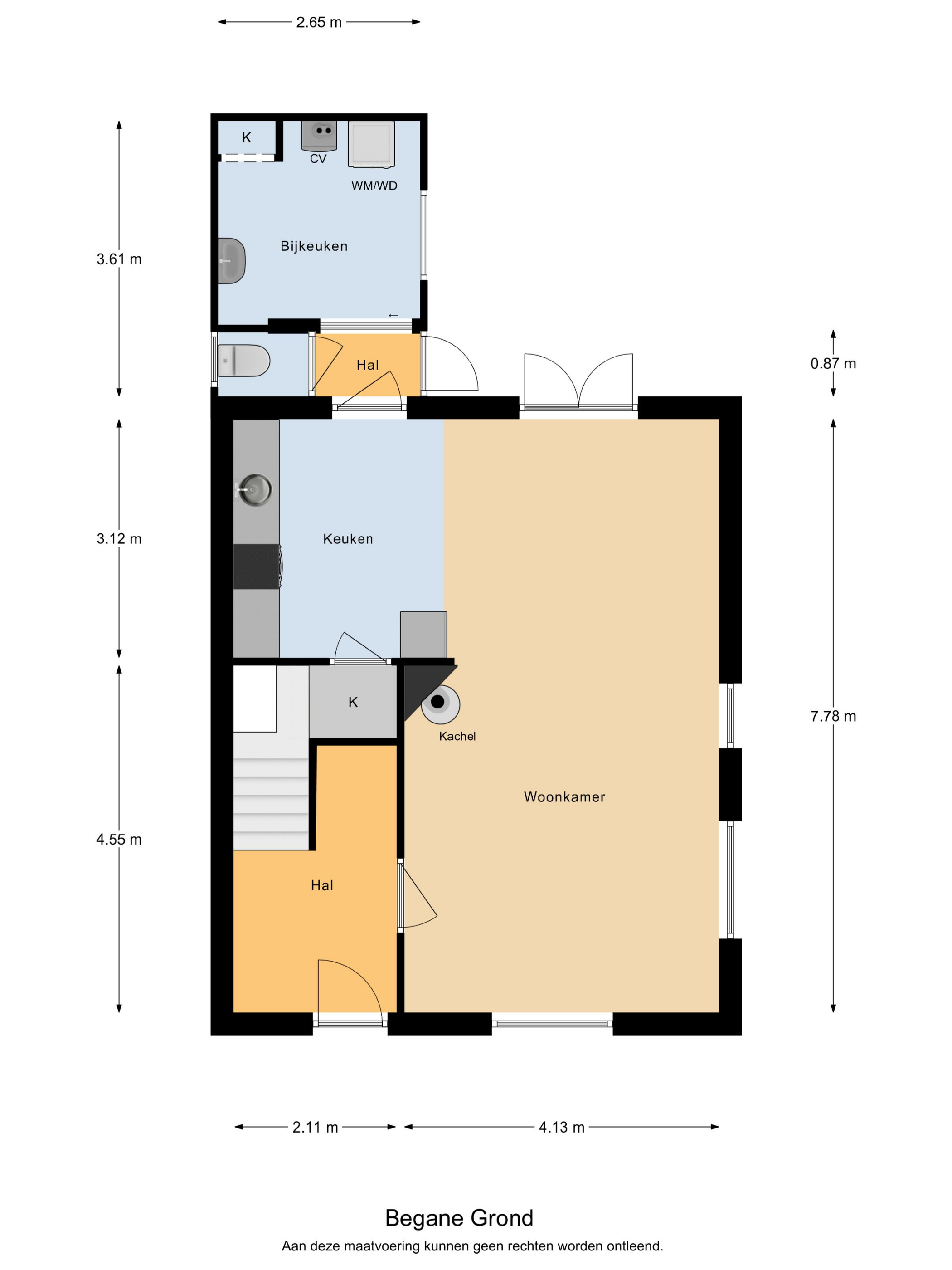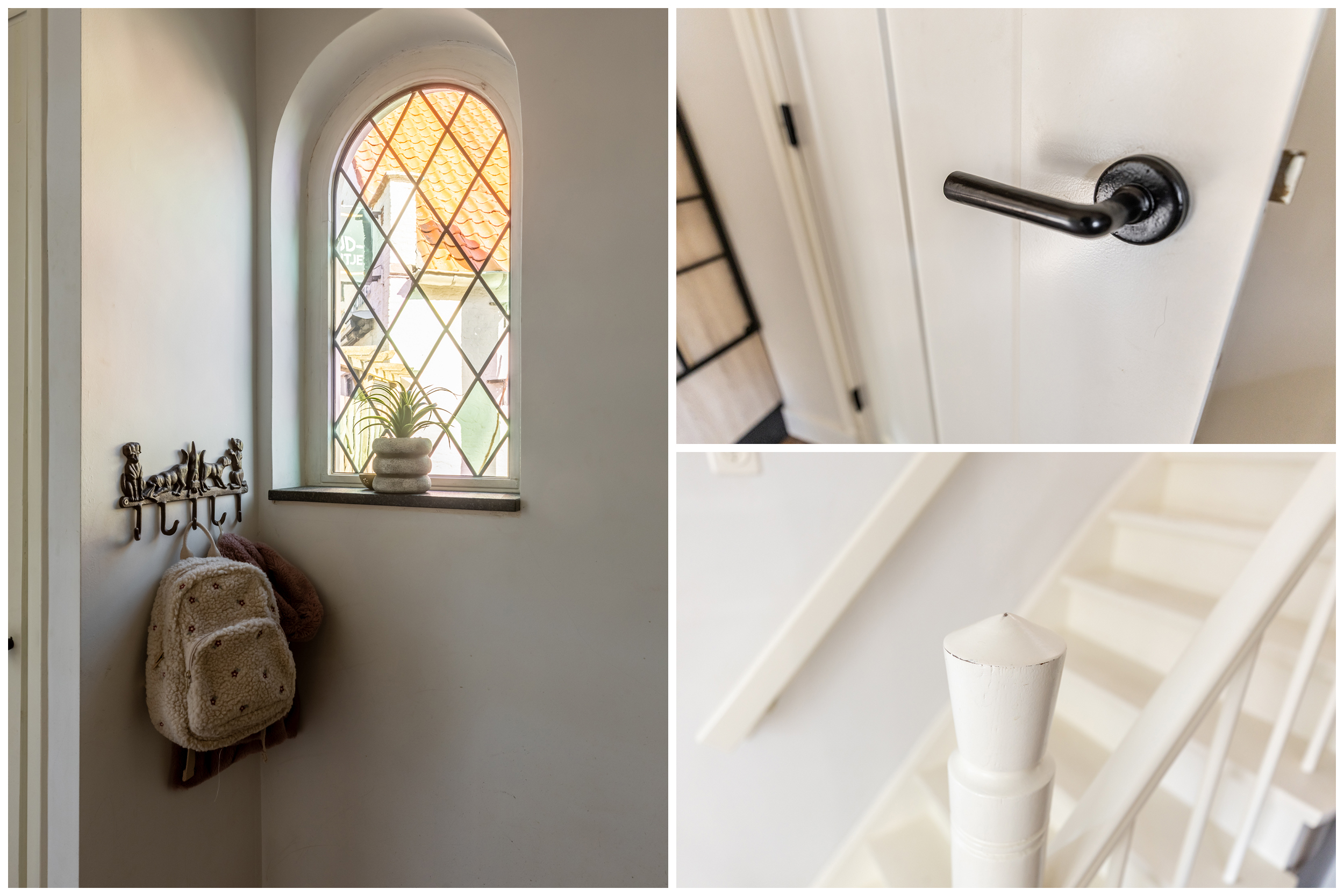 Aansluitend vind je een tweede hal die toegang biedt tot het toilet en de bijkeuken. Hier bevinden zich de cv-installatie (2024), de wasmachine-aansluiting, een praktische wasbak en extra kastruimte.