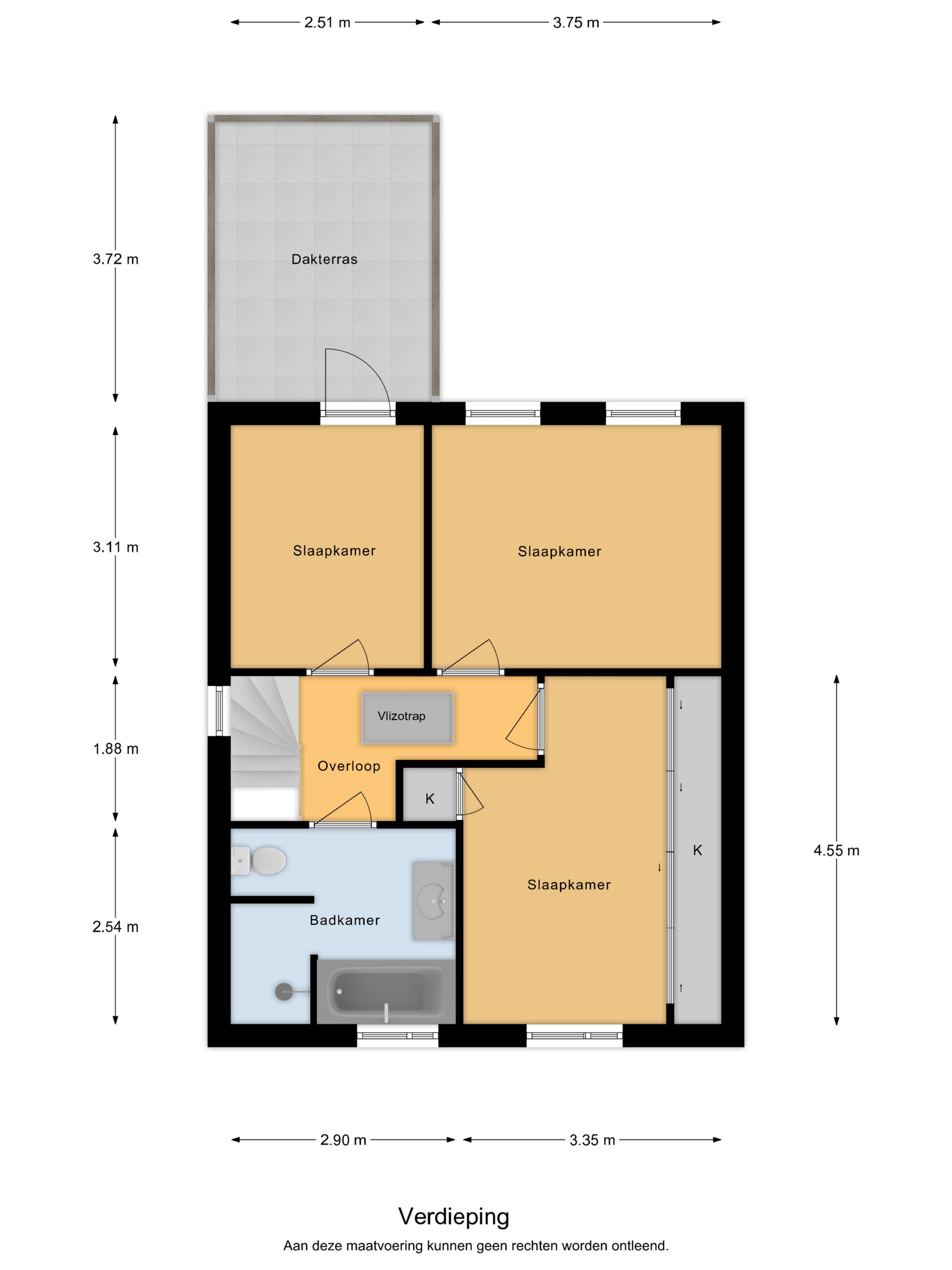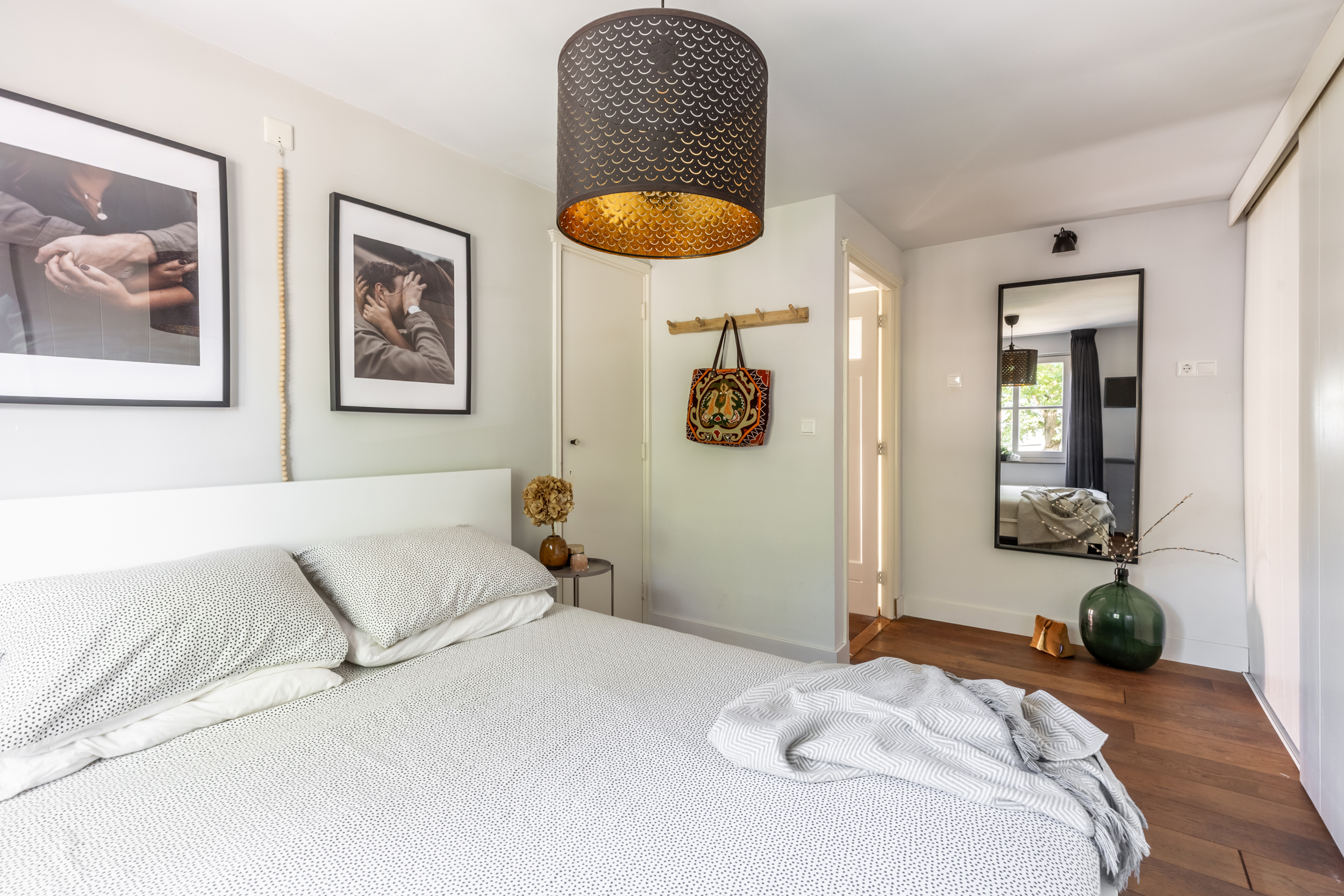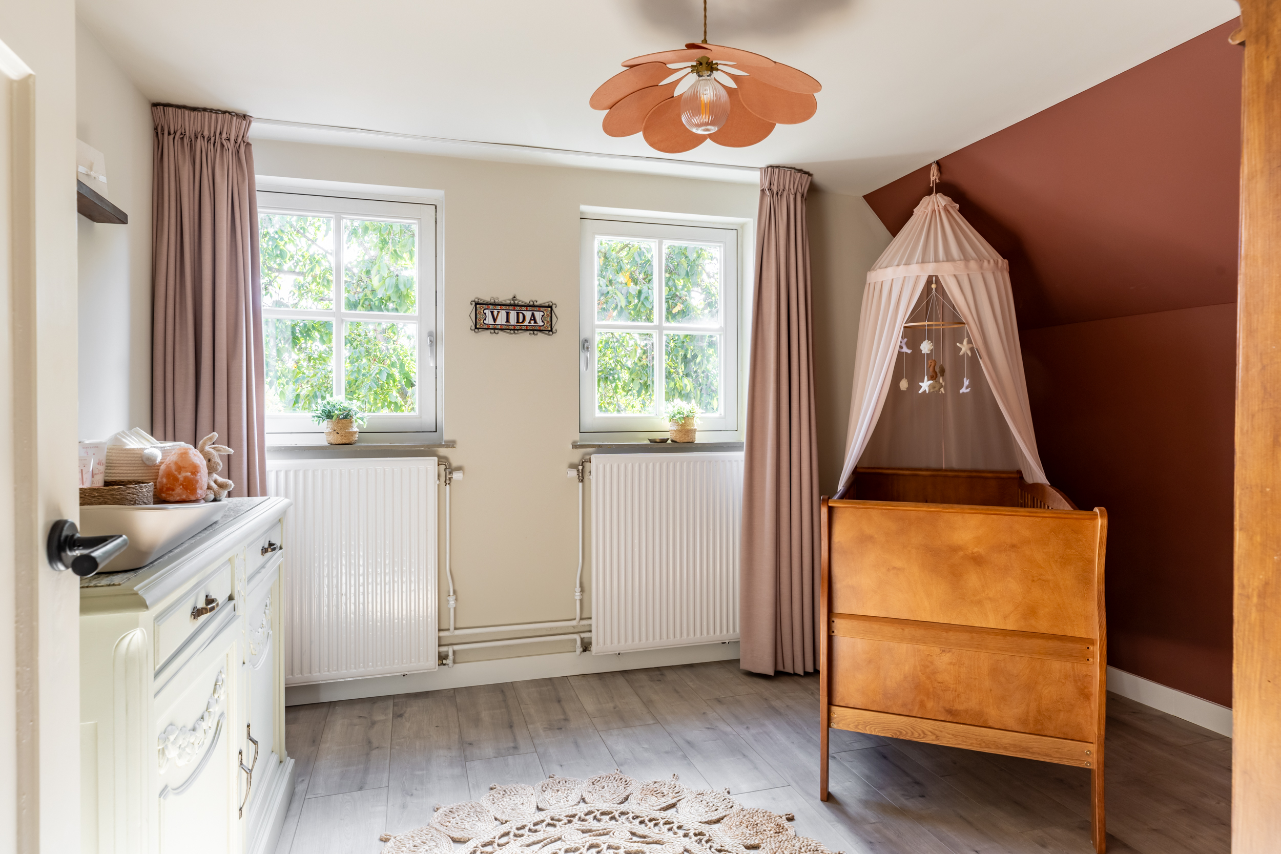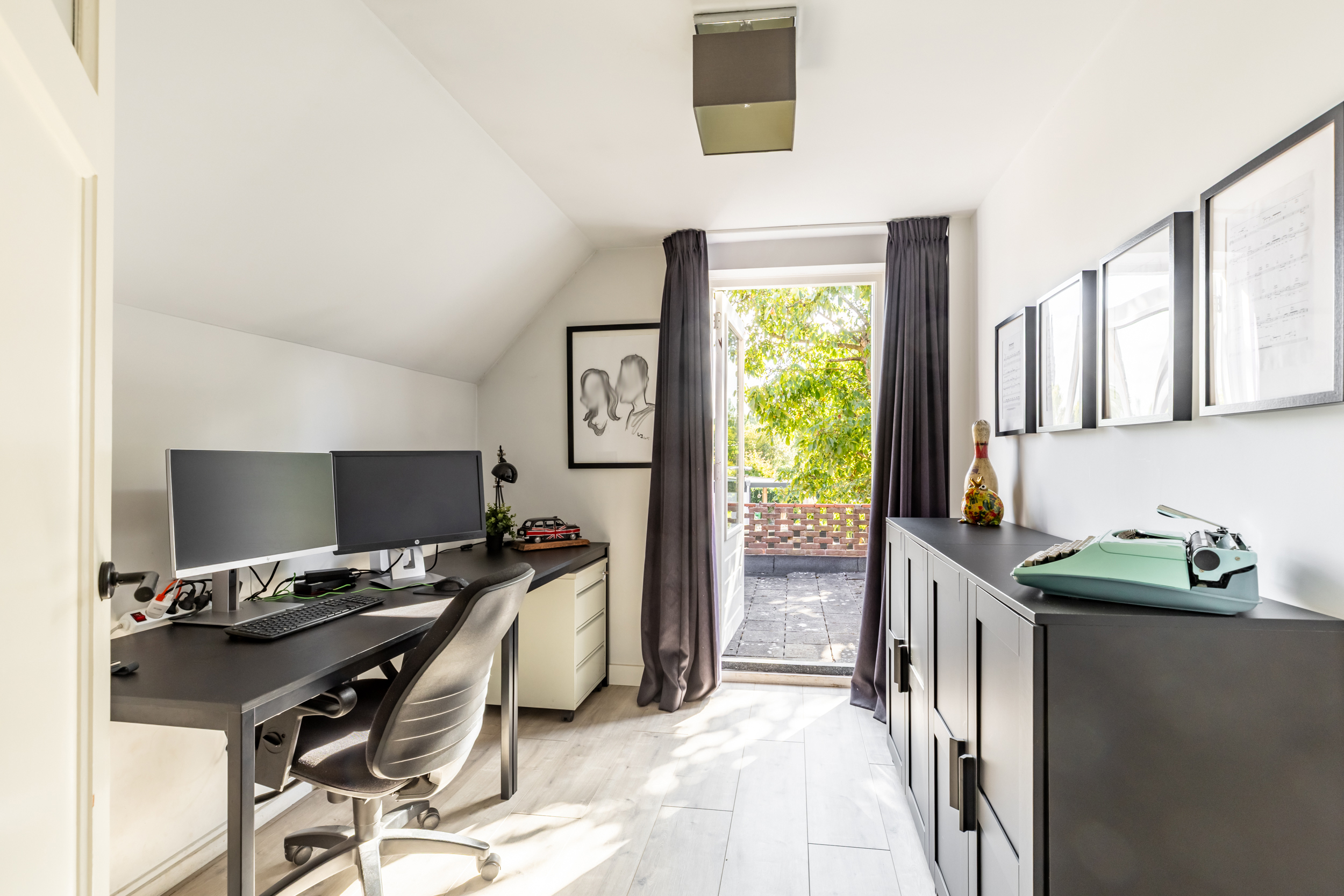 De tweede slaapkamer wordt momenteel gebruikt als kinderkamer en is eveneens ruim, waardoor er voldoende plek is voor speelruimte en een grote kledingkast. De derde kamer doet nu dienst als kantoor, maar is uiteraard ook geschikt als extra (kinder)slaapkamer. Vanuit deze kamer heb je toegang tot een dakterras.