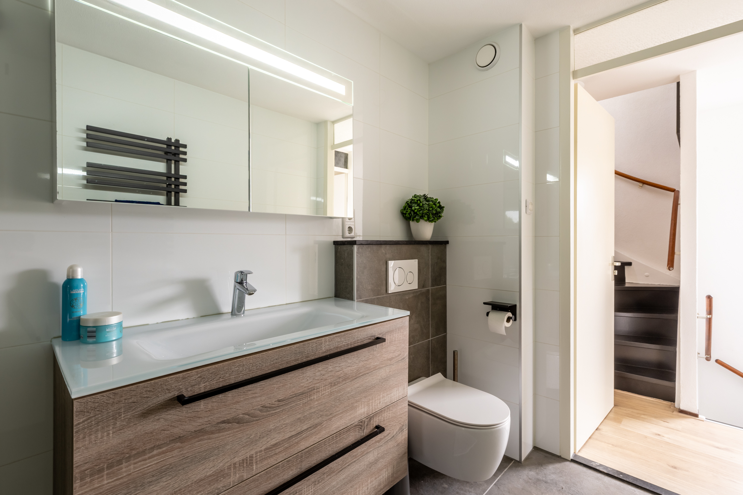 - Toilet, wastafel, wastafelmeubel en inloopdouche