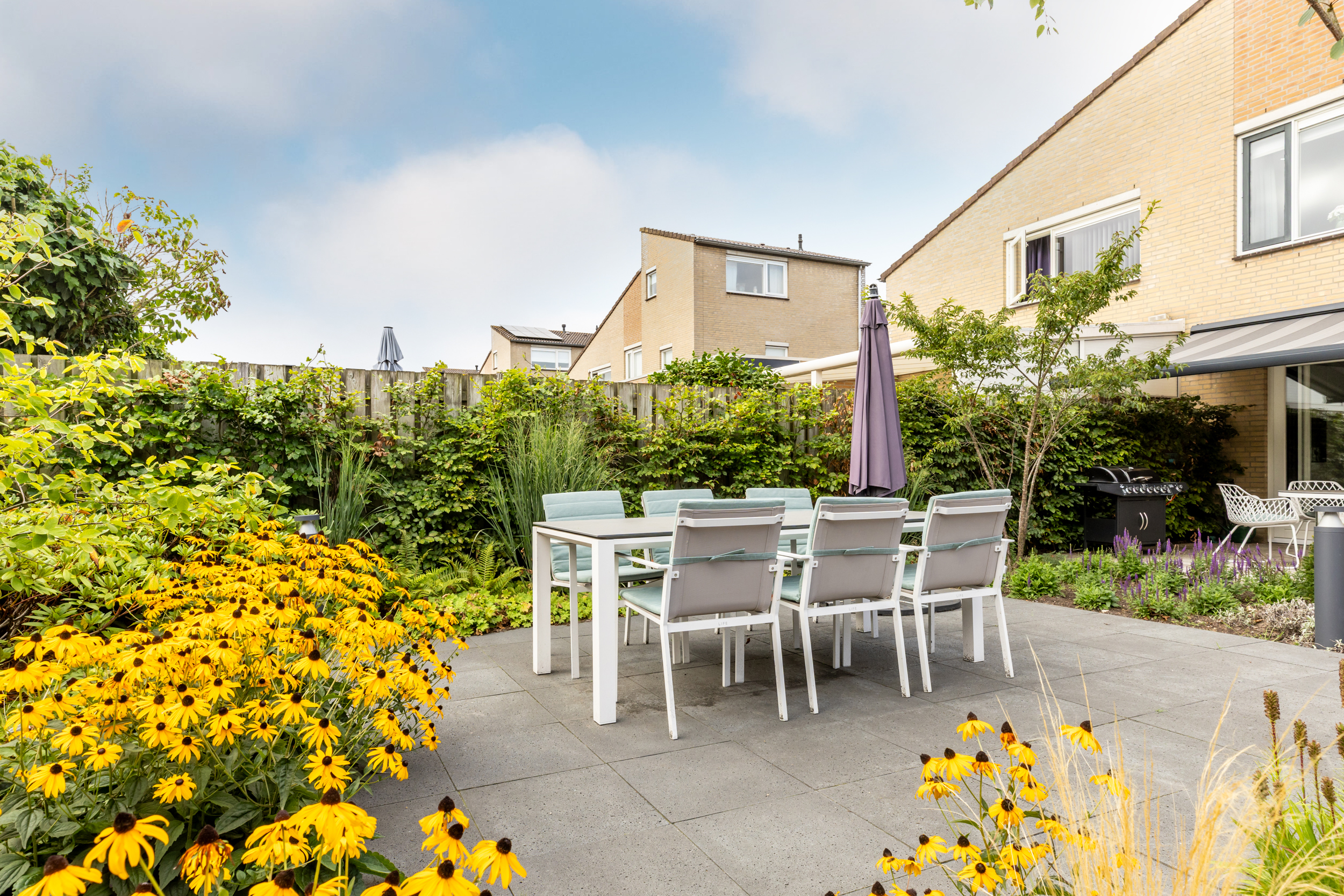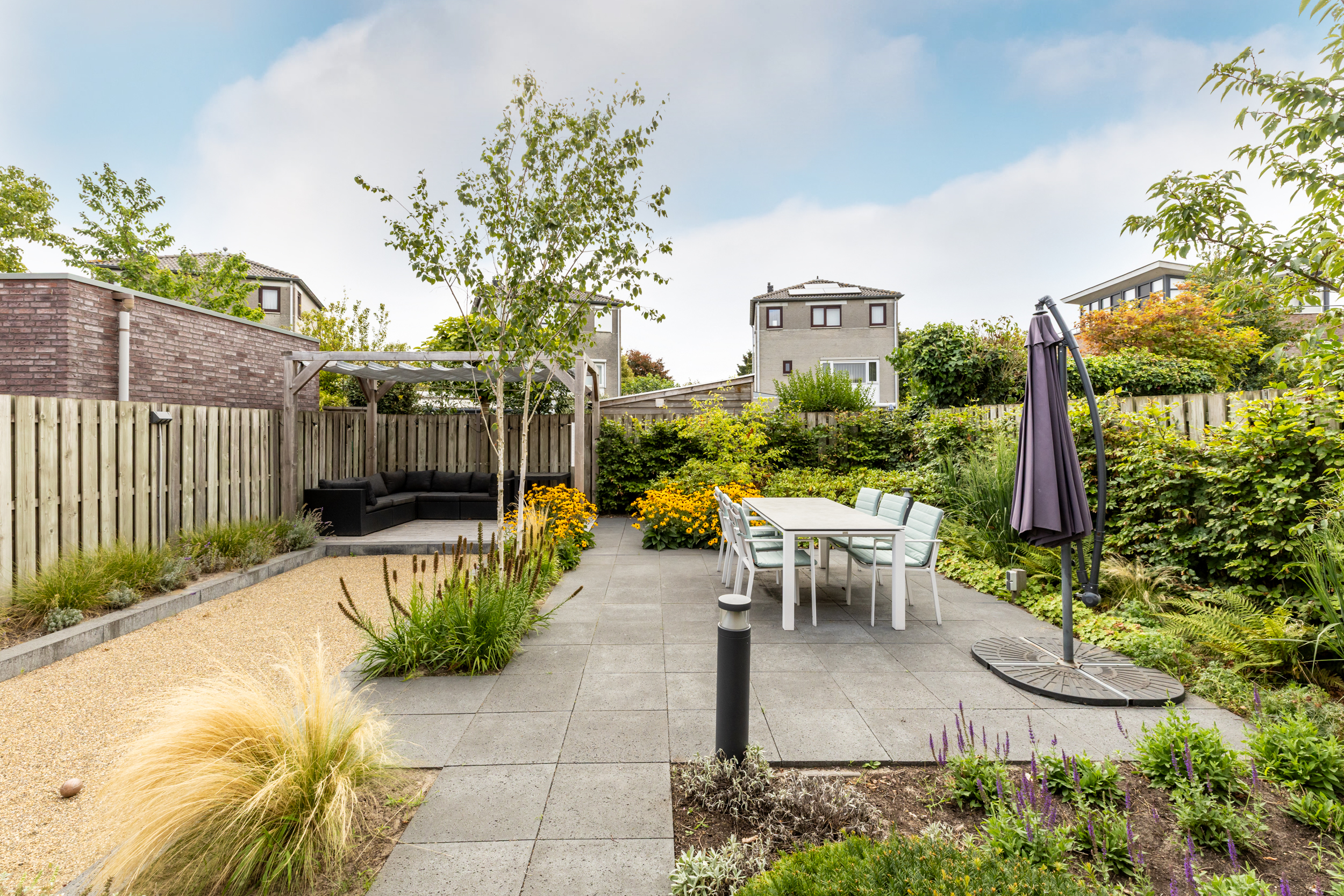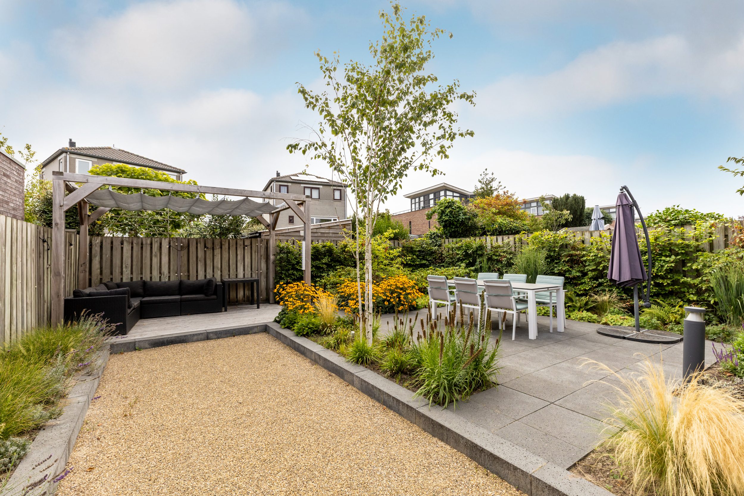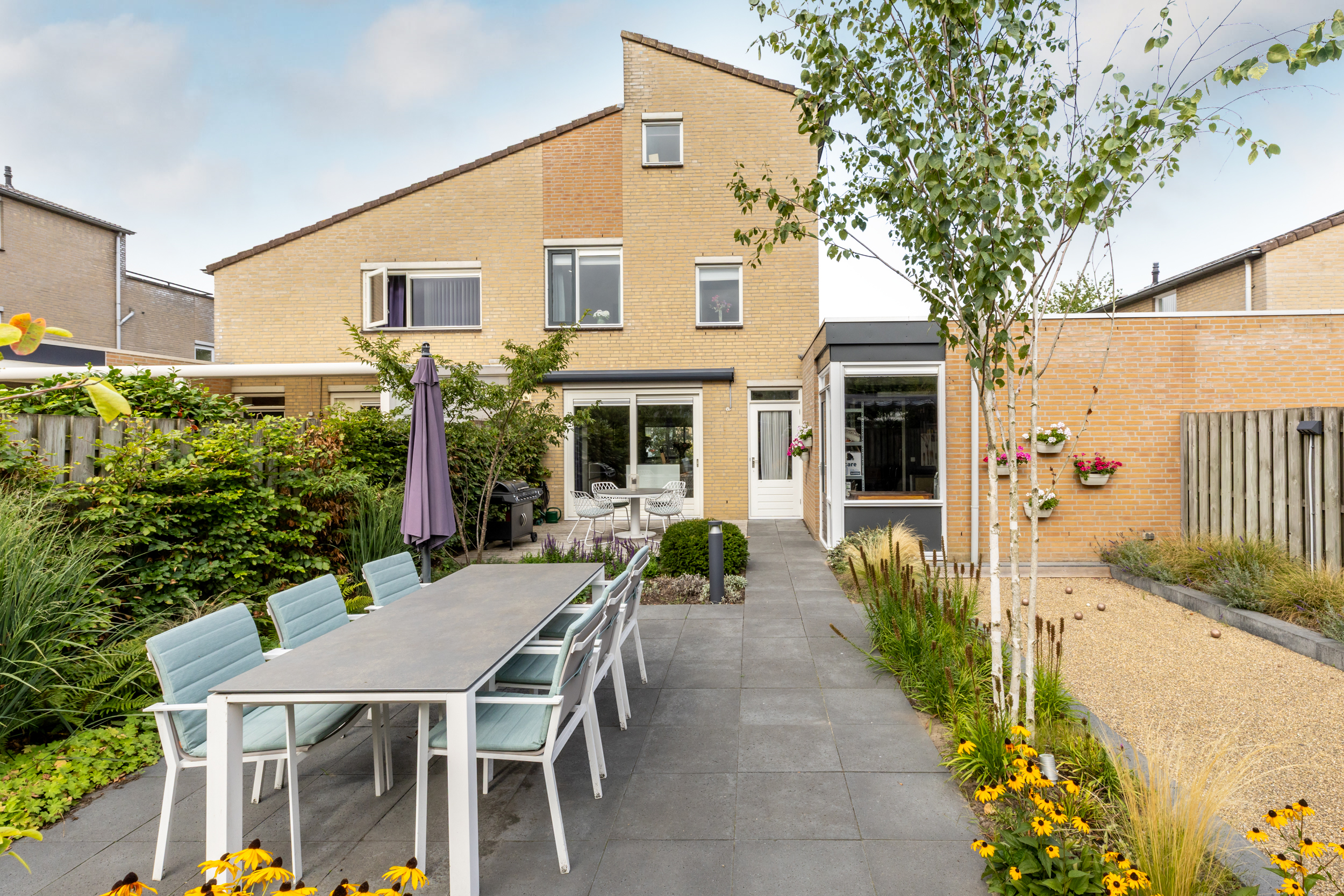 Achter de woning bevindt zich een diepe en brede tuin met een verzorgde uitstraling, dankzij de prettige combinatie van groen en bestrating. Hier is alle ruimte om volop te genieten van het buitenleven.