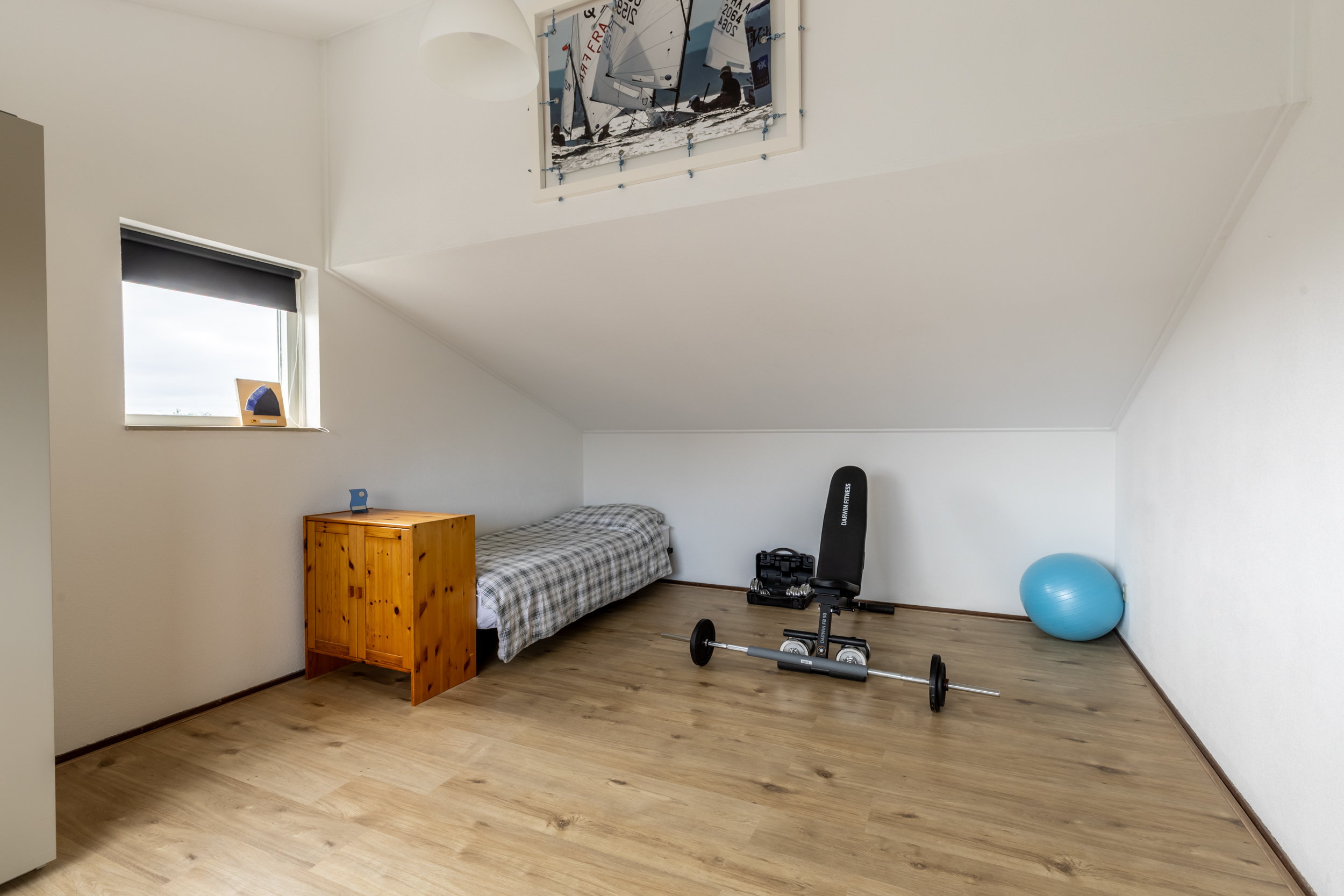 De tweede verdieping is via een vaste trap bereikbaar en biedt verrassend veel ruimte. Hier bevindt zich een royale kamer die uitstekend kan dienen als vierde slaapkamer. Dankzij het ruime formaat is deze verdieping ook ideaal in te richten als hobbykamer, thuiskantoor of ontspanningsruimte voor het hele gezin.