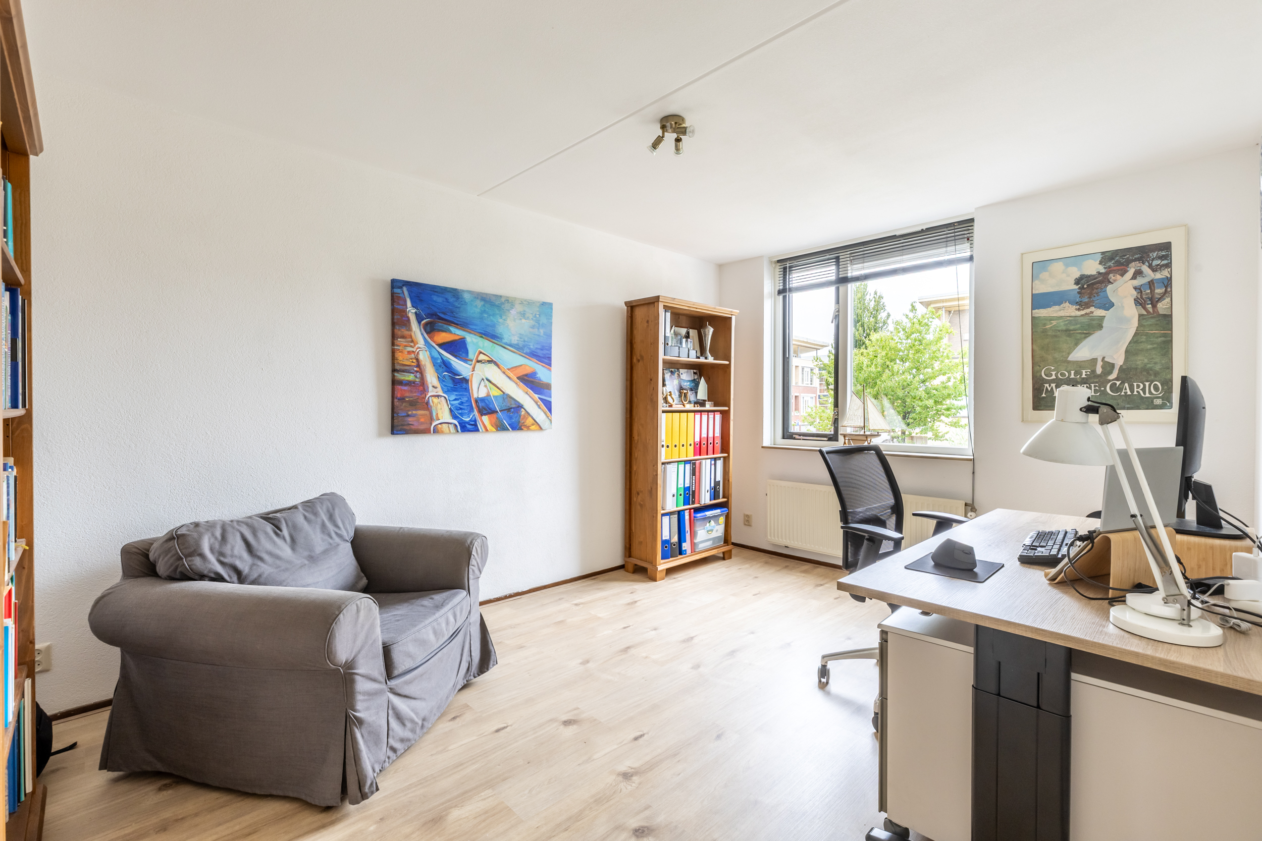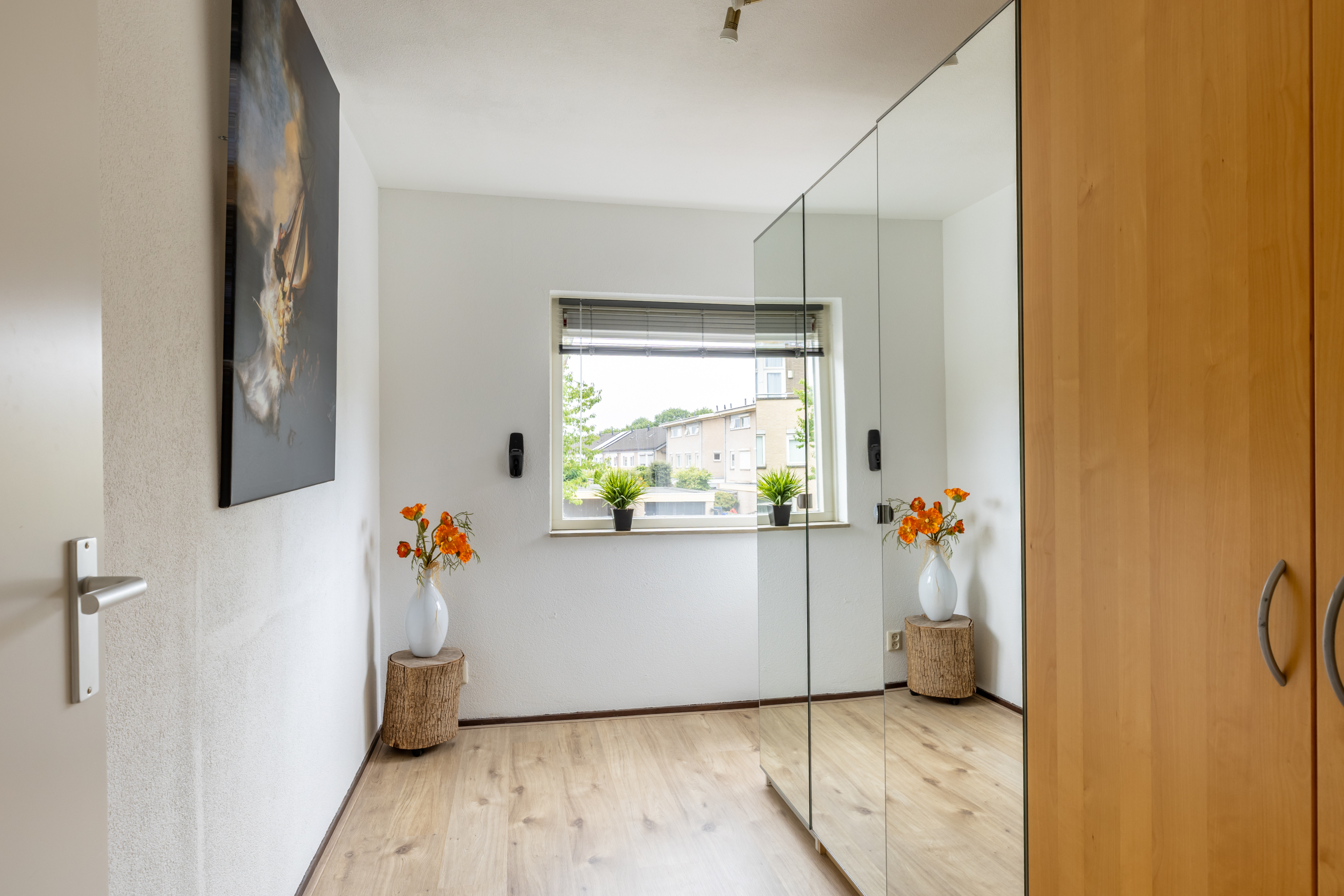 Aan de voorzijde bevindt zich de tweede ruime slaapkamer. Deze kan uitstekend dienen als slaapkamer, maar is ook zeer geschikt als werkkamer of hobbyruimte. De derde kamer is momenteel ingericht als kastenkamer, maar kan eenvoudig worden gebruikt als kinderkamer of werk-/studeerruimte.