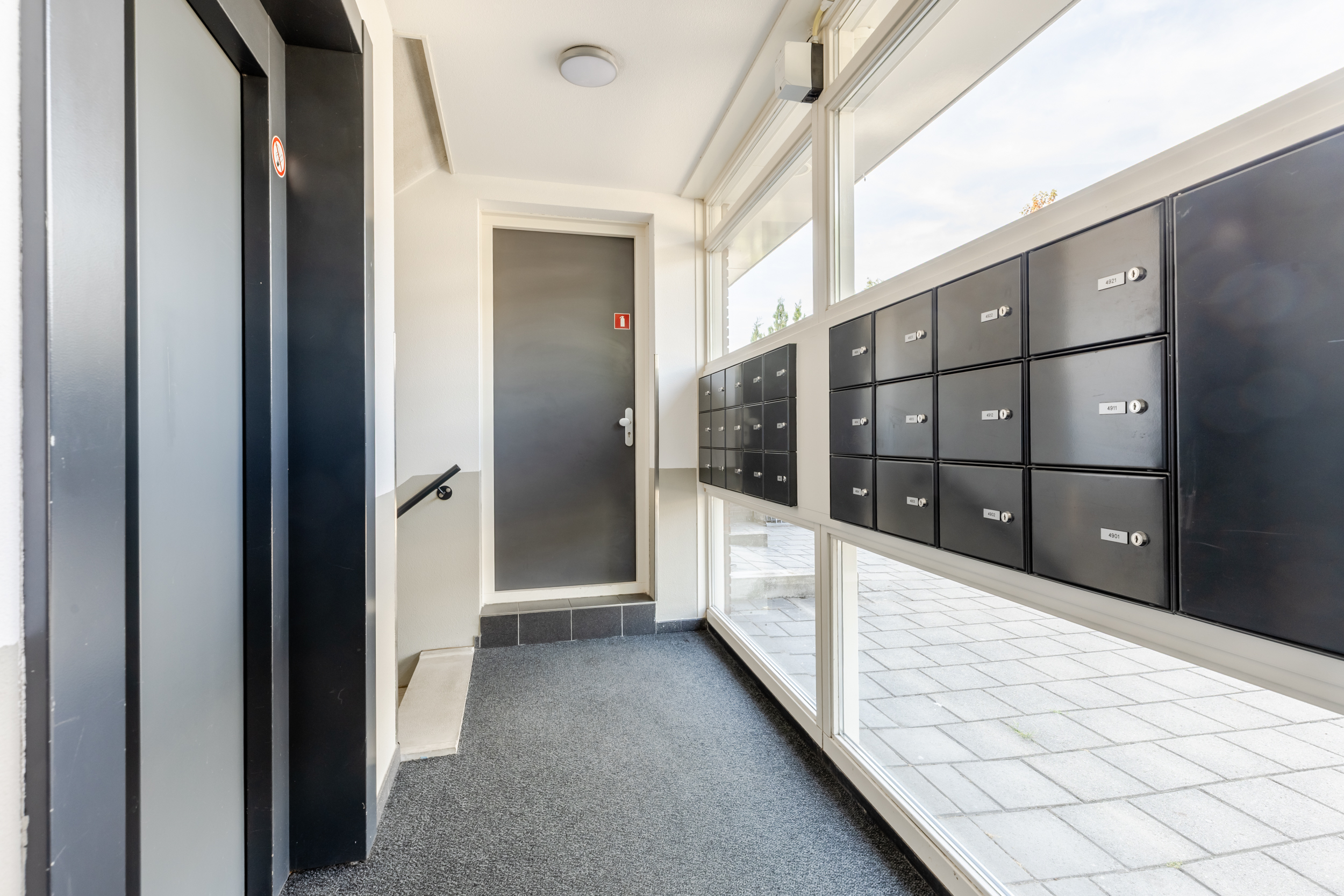 Het appartementencomplex heeft een gezamenlijke entree waar de brievenbus, de trap en lift te vinden zijn. Het appartement is gelegen op de eerste verdieping.