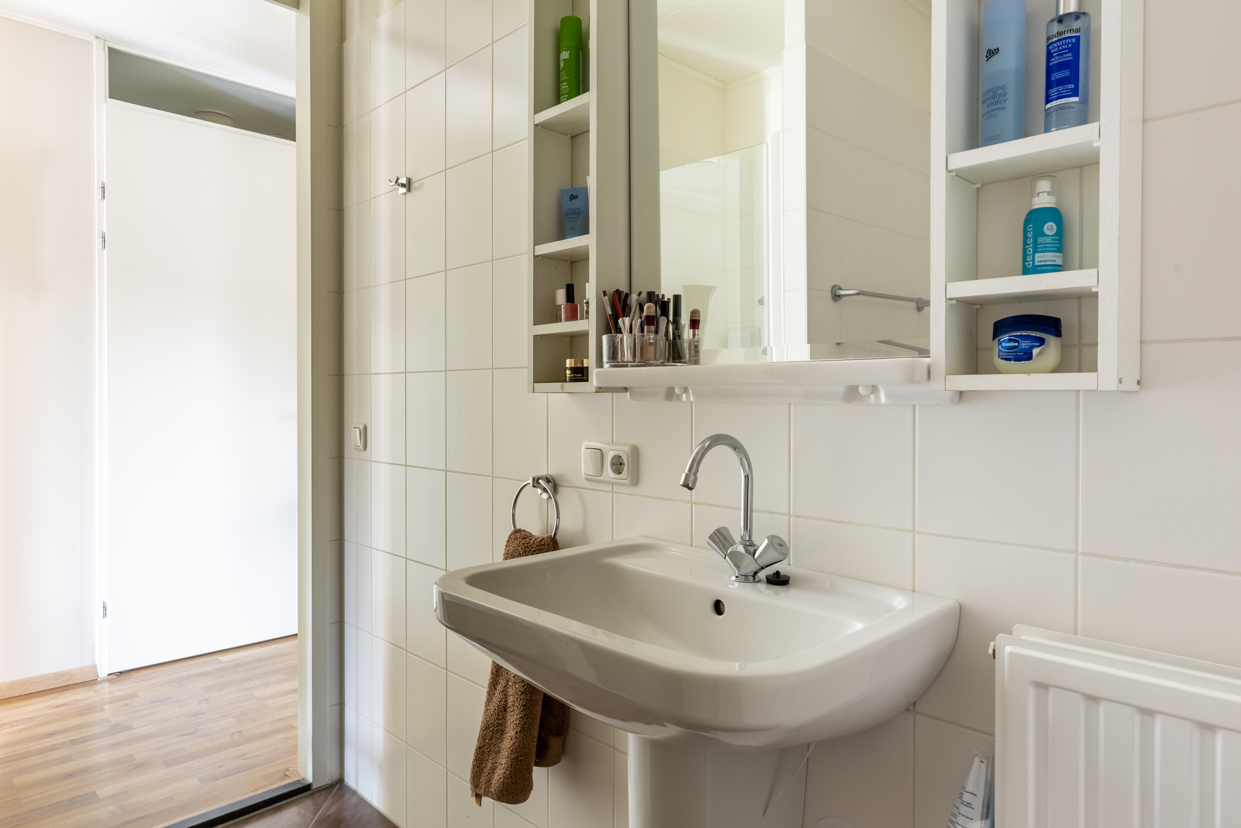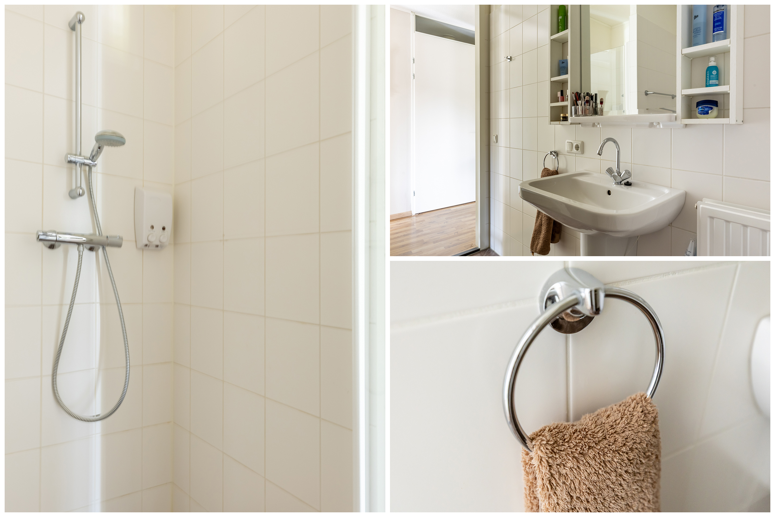 Dan de badkamer. Deze is net als de rest van het appartement keurig onderhouden. De ruimte is ingedeeld met een douche, wastafel en tweede toilet.
