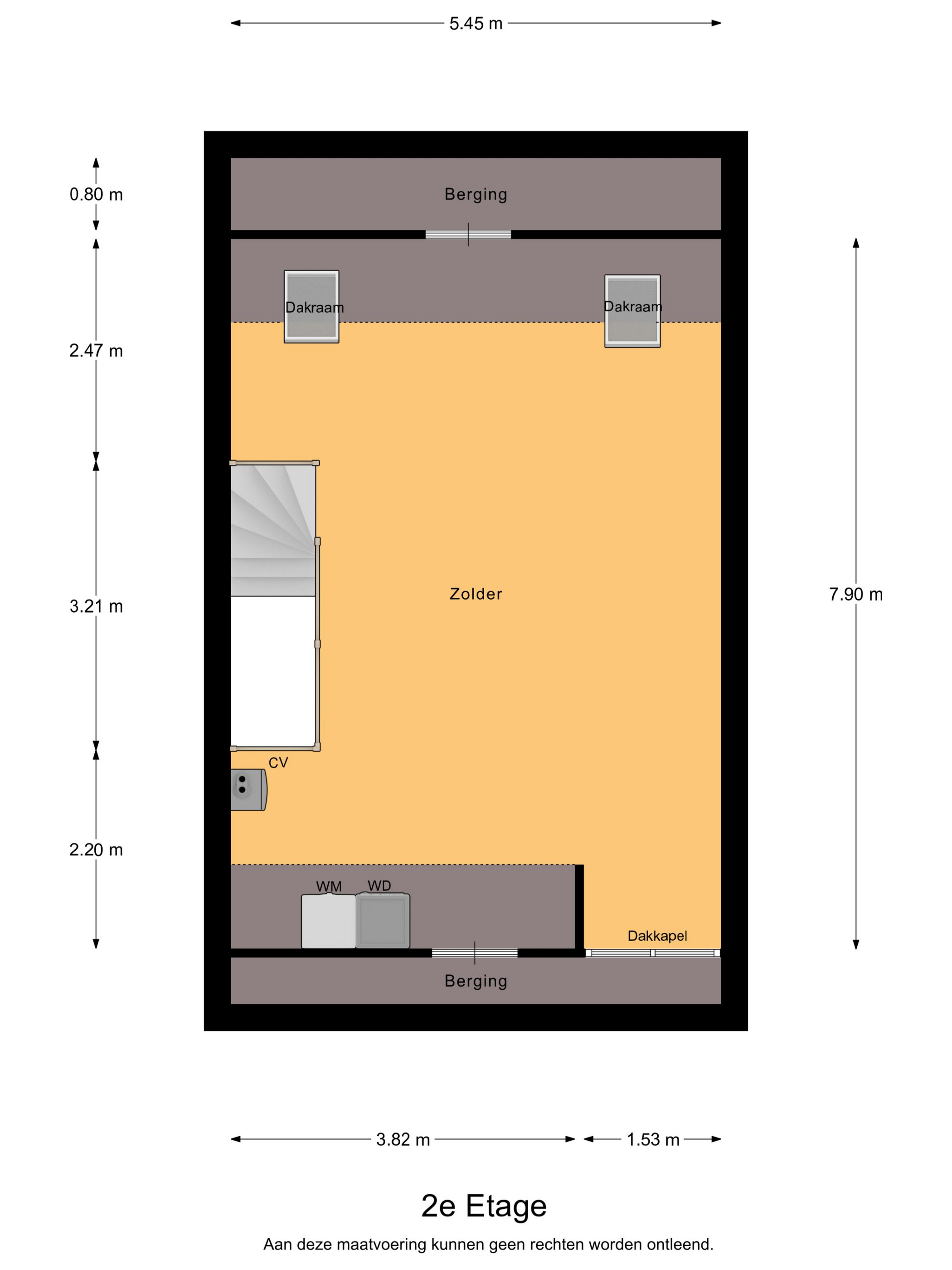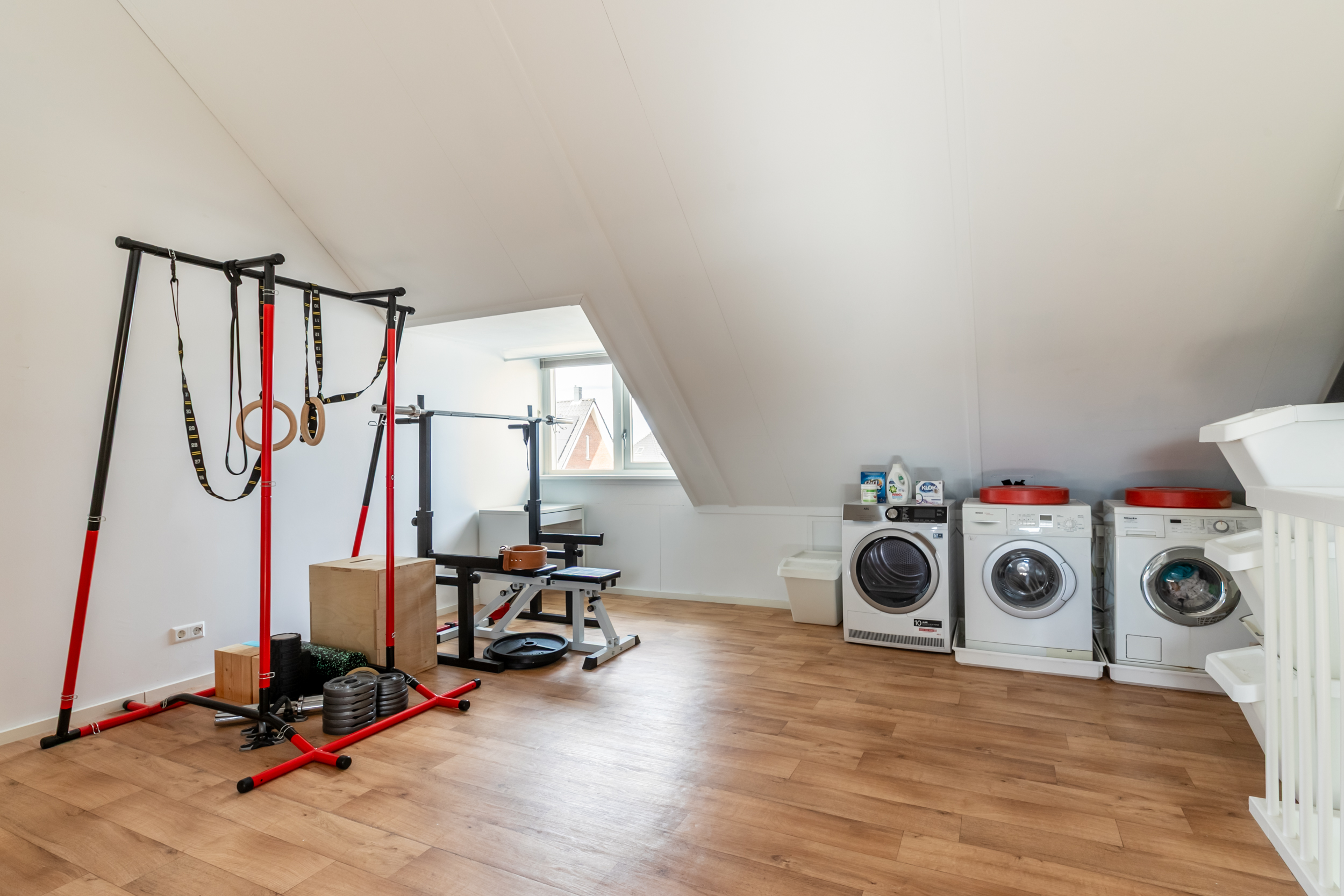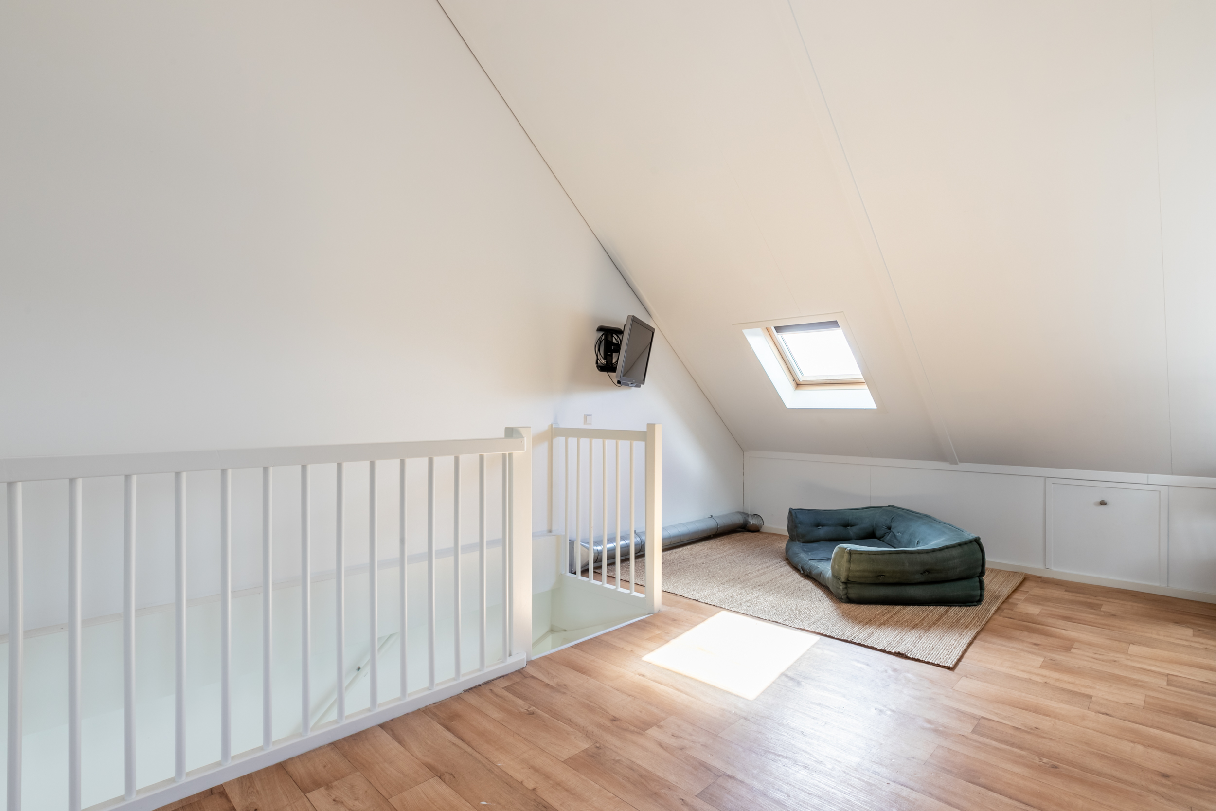 Via een vaste trap bereik je de tweede verdieping. Deze royale zolderruimte biedt volop mogelijkheden en is geheel naar eigen wens in te richten. Zo kun je hier eenvoudig een extra slaapkamer (of twee), een kantoor aan huis of een speelzolder creëren. Dankzij de dakkapel en de twee dakramen valt er volop daglicht binnen, waardoor de ruimte licht en aangenaam aanvoelt. Daarnaast zijn hier de aansluitingen voor de wasmachine en droger te vinden, evenals de opstelplaats van de cv-ketel.