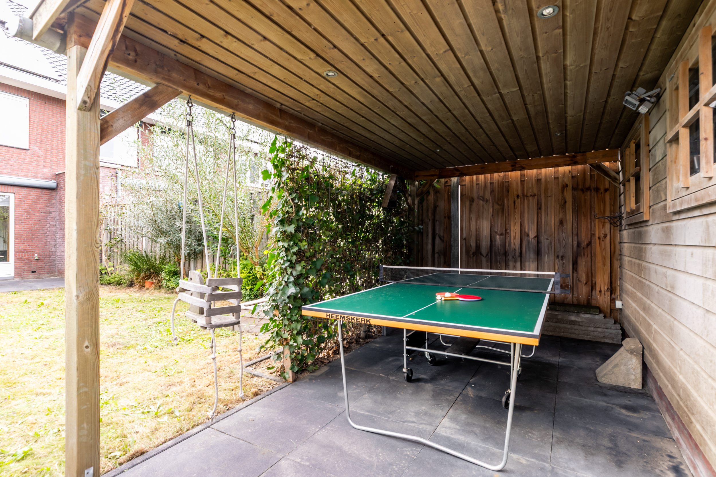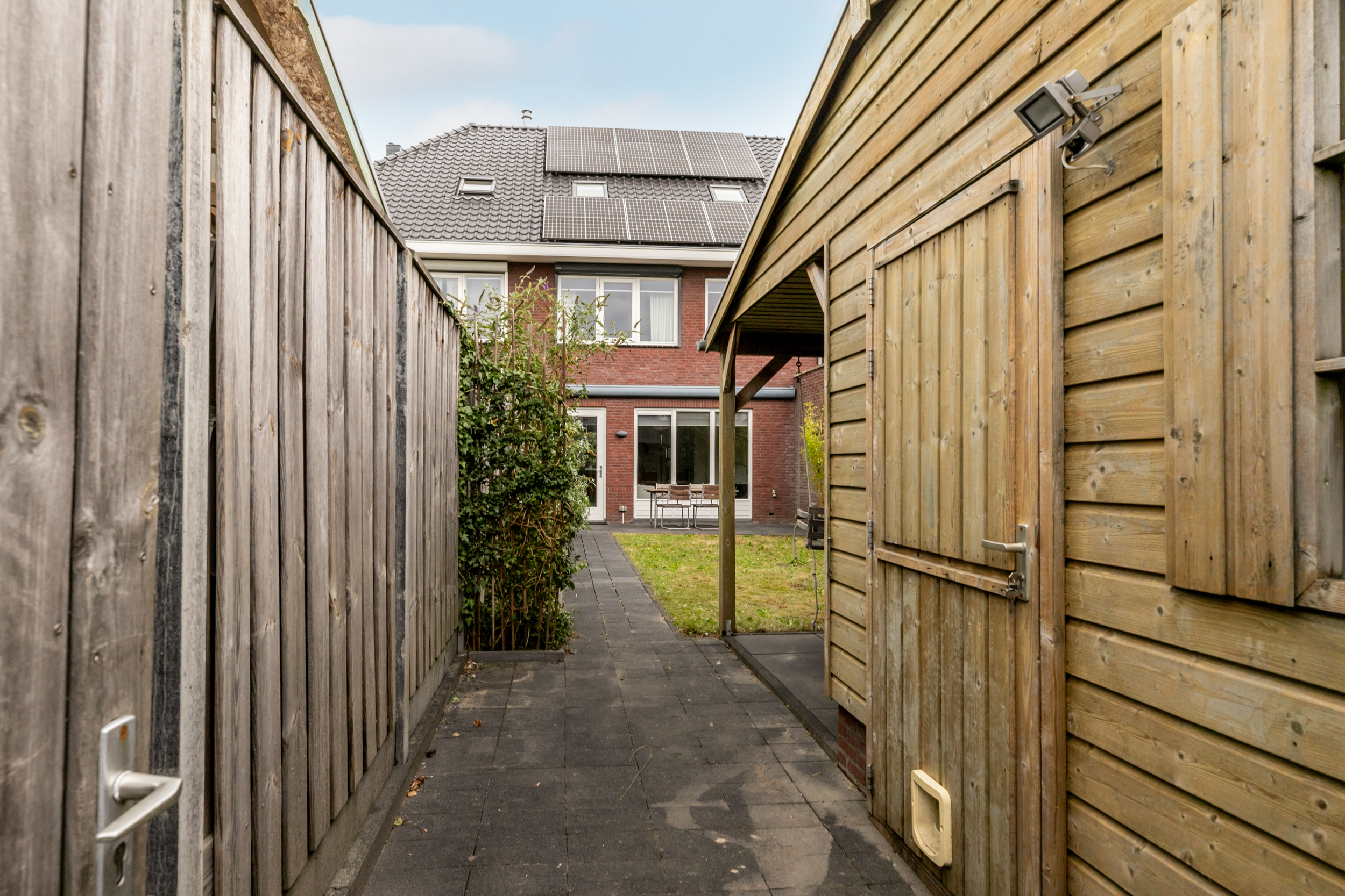 Een van de absolute pluspunten van deze woning is de heerlijke achtertuin. Met een diepte van ruim 18 meter en de gunstige ligging op het zuiden geniet je hier de hele dag van de zon. De tuin biedt volop ruimte om naar eigen wens in te richten: creëer meerdere gezellige zithoeken, laat de kinderen vrij spelen of richt een stukje in als bloementuin. Achterin bevindt zich een praktische berging met een sfeervolle overkapping, ideaal voor het stallen van fietsen, het opbergen van tuingereedschap of gewoon als beschutte zitplek. Dankzij de achterom is de tuin bovendien gemakkelijk bereikbaar.