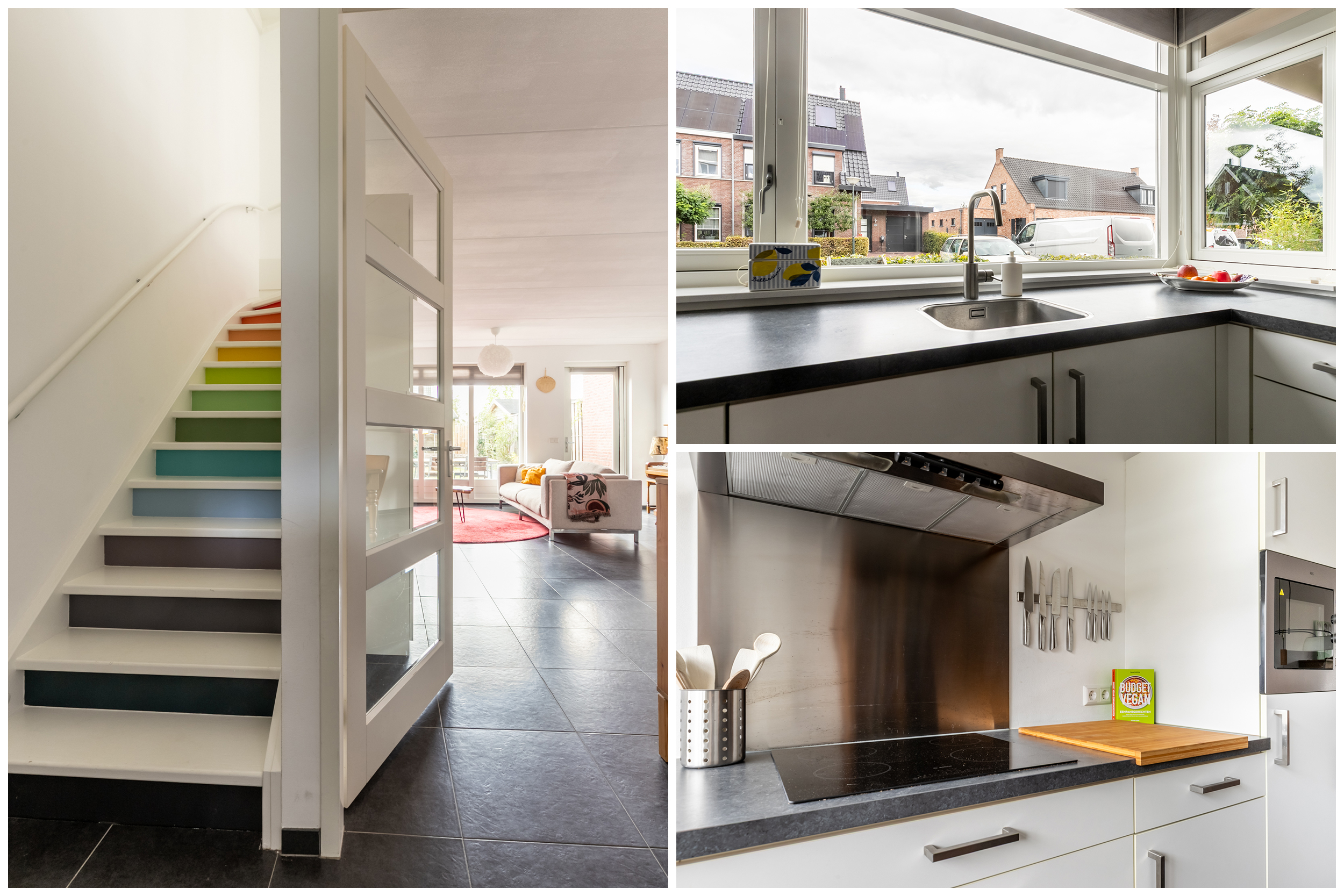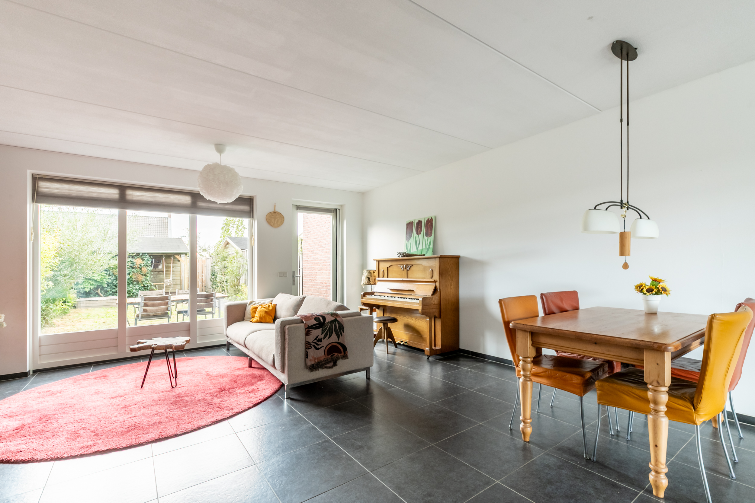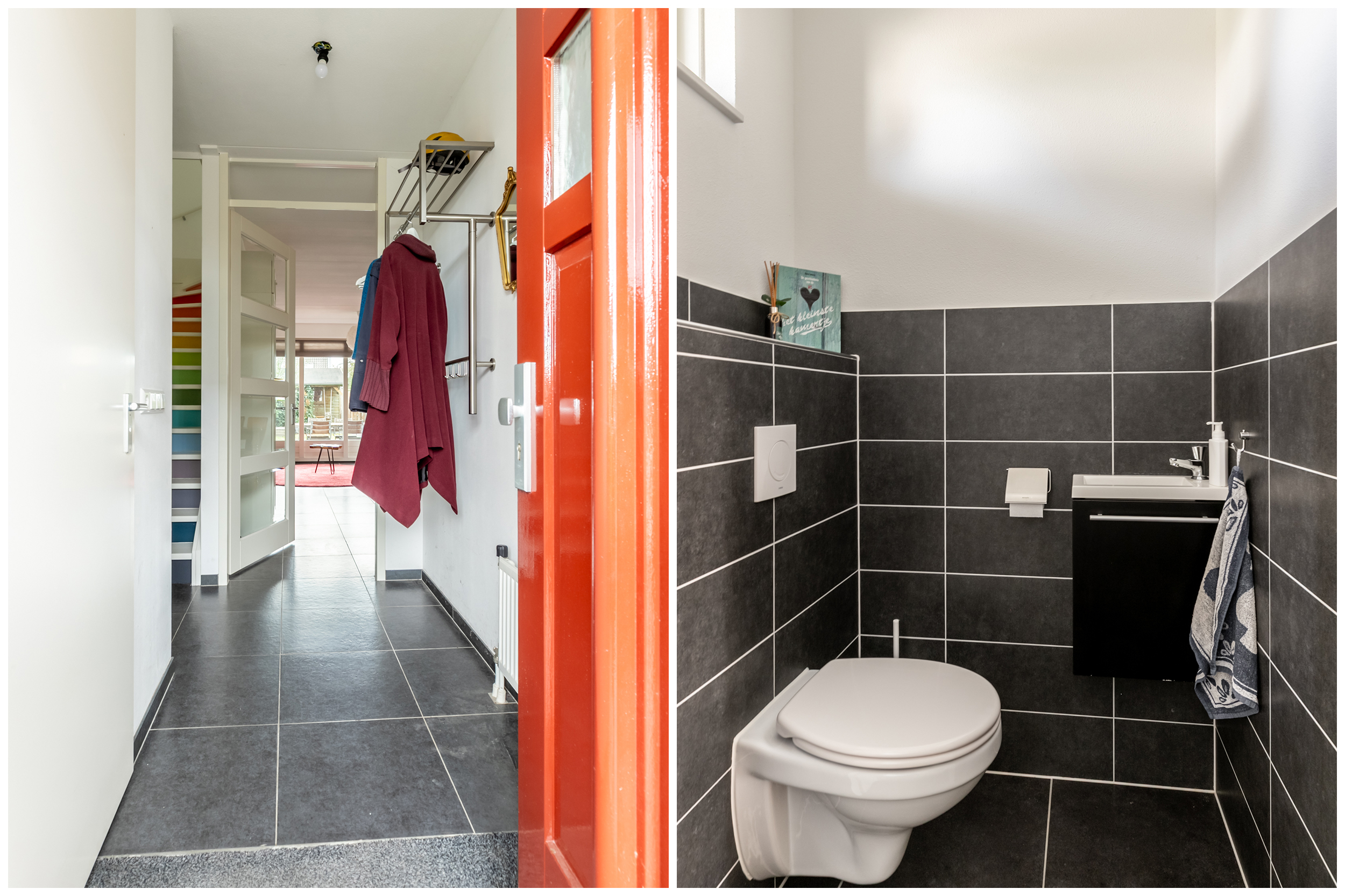 Via de entree/hal kom je de woning binnen. Vanuit hier heb je toegang tot het toilet, de meterkast, de trap naar de eerste verdieping en de woonkamer. De woonkamer is heerlijk ruim en biedt volop mogelijkheden voor een comfortabele zithoek en een royale eettafel. Aansluitend vind je de open keuken, die is uitgerust met diverse inbouwapparatuur zoals een koelkast, vaatwasser, combi-oven en vriezer. De moderne tegelvloer met vloerverwarming zorgt voor een luxe en aangename uitstraling. Daarnaast is de woonkamer voorzien van een praktische trapkast, ideaal voor het opbergen van huishoudelijke spullen. Vanuit de woonkamer stap je rechtstreeks de diepe achtertuin in, waar je volop van de zon kunt genieten.