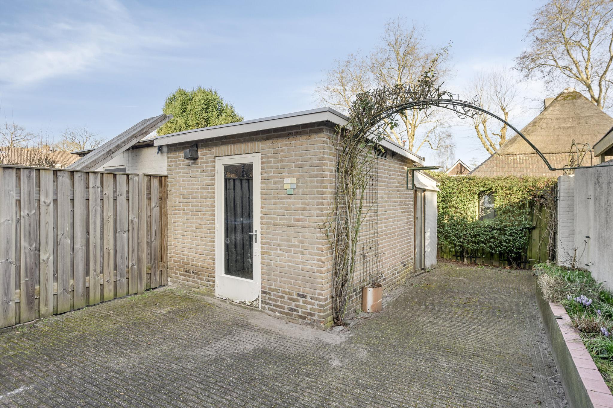 De ruime tuin is gelegen op het noordoosten en biedt volop mogelijkheden. De tuin beschikt over een vrijstaande stenen schuur, ideaal voor opslag of andere doeleinden. Er is achter het schuurtje een kleine kas gecreerd. Er is ook een achterom.