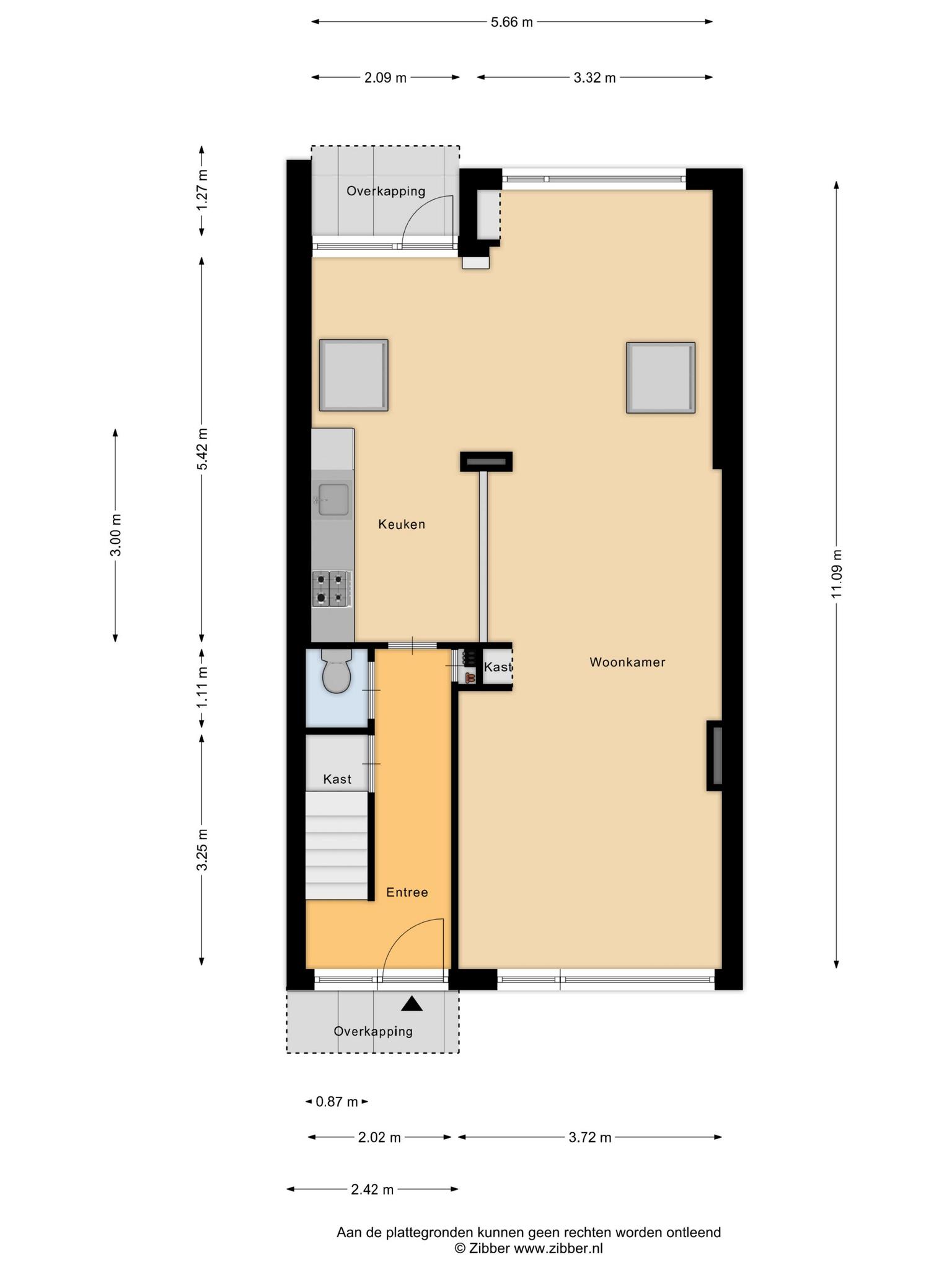 - 36 m² gelegen op het noordwesten met achterom