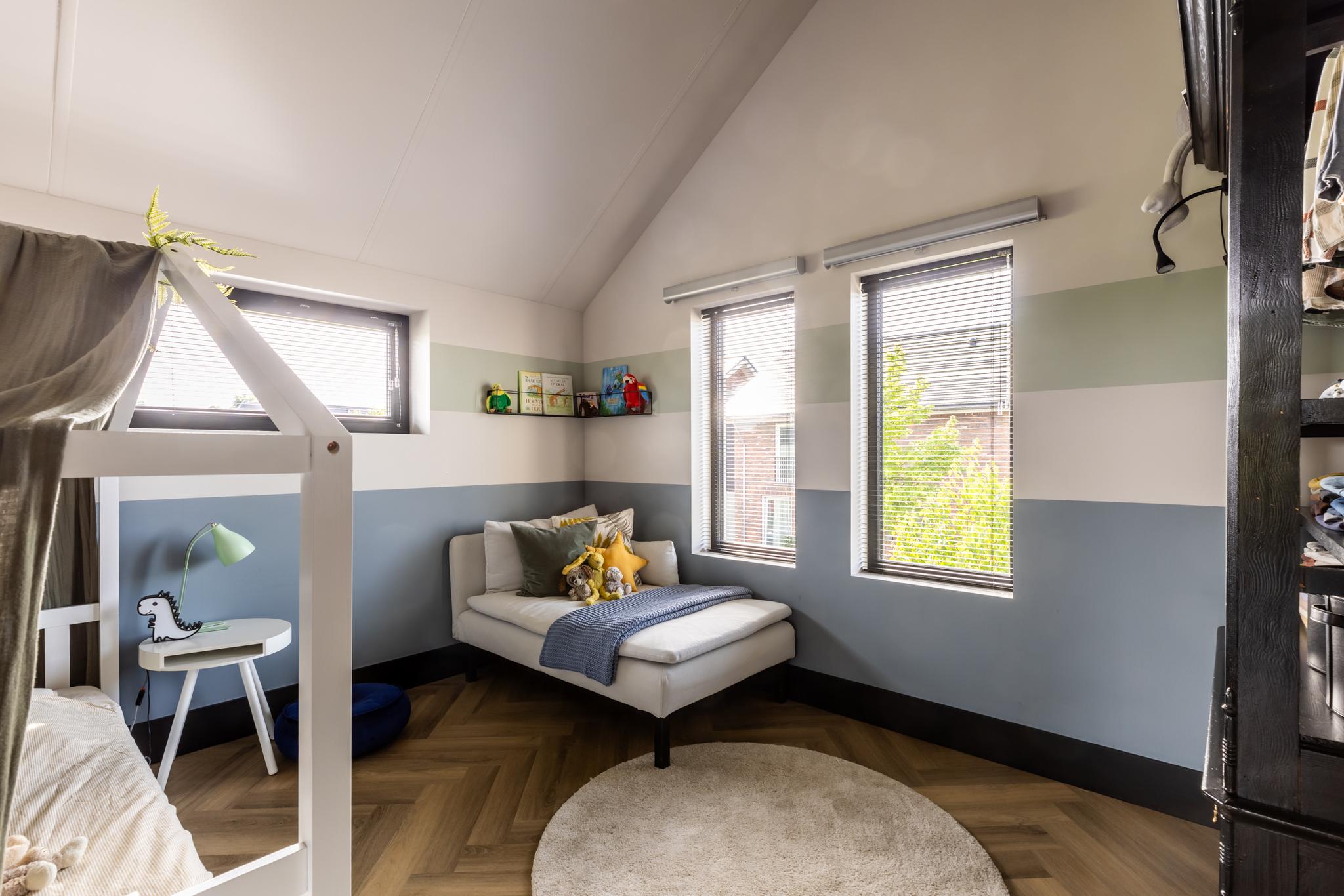 Via de trap in de hal bereik je de eerste verdieping waar je uitkomt op een ruime overloop. Vanaf hier heb je toegang tot drie slaapkamers (vier mogelijk) en de moderne badkamer. De hoofdslaapkamer is ruim, licht en heeft een prachtig uitzicht over de achtertuin. De kamer beschikt over een royale inloopkast. Boven de inloopkast bevindt zich een handige vliering voor extra opbergruimte. De andere twee slaapkamers zijn ook royaal van formaat. Er past met gemak een tweepersoonsbed en er blijft voldoende ruimte over voor een bureau of kledingkast. De tweede slaapkamer is daarnaast uitgerust met praktische inbouwkast.