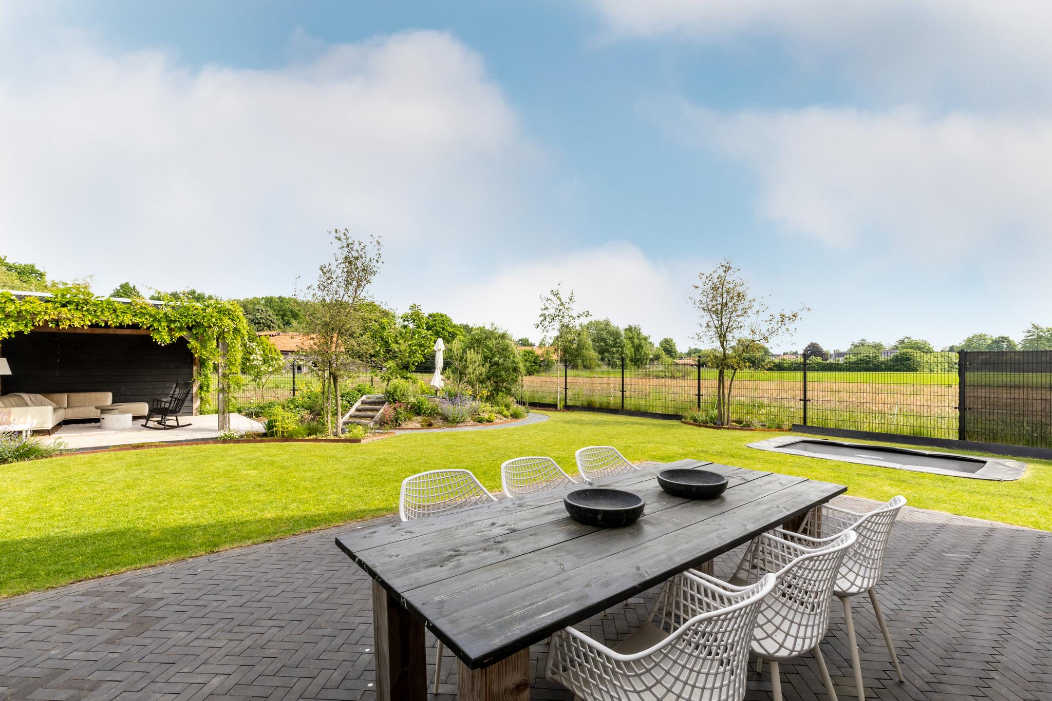 Rondom de woning ligt een prachtige aangelegde kindvriendelijke tuin die ruimte en rust ademt. De achtertuin is keurig verzorgd en biedt een vrij uitzicht over het omliggende groen. Dankzij de vrije ligging geniet je van de ochtend,- middag- en avondzon. Er zijn meerdere zitplekken gecreëerd zodat je op elk moment van de dag kunt kiezen voor zon of schaduw.