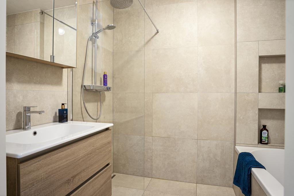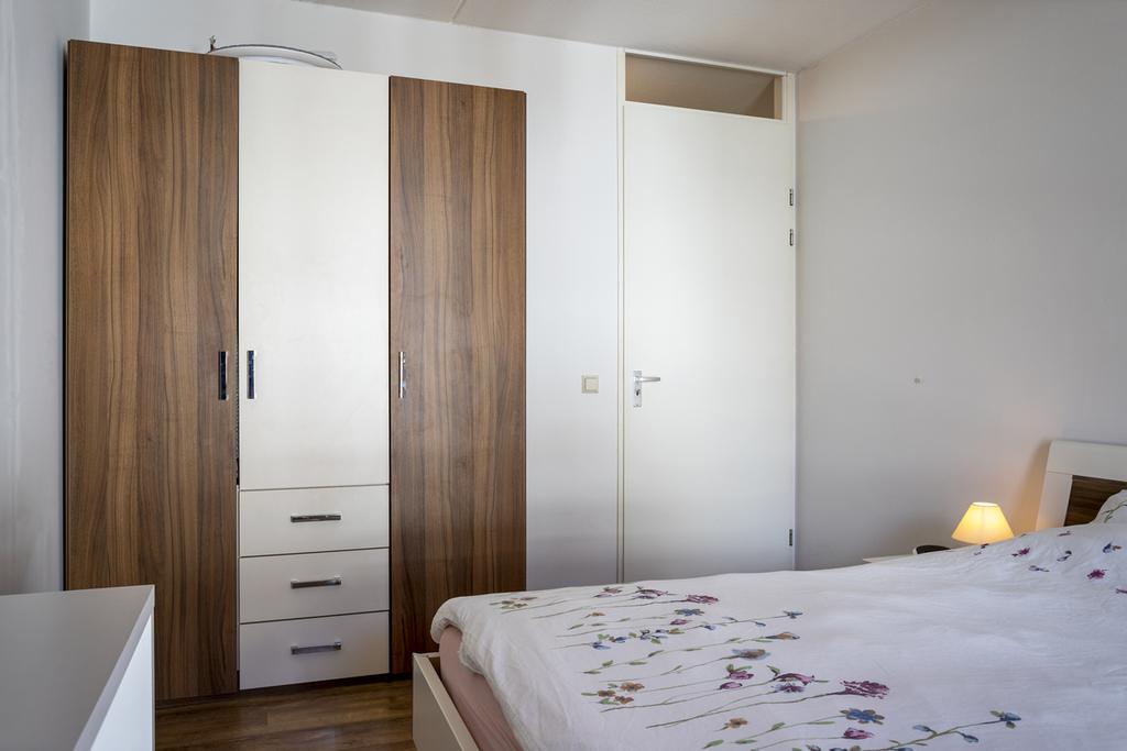 Het appartement is voorzien van twee ruime slaapkamers (15 m2 en 12 m2), beide voorzien van een laminaatvloer. De moderne badkamer uit 2018 is volledig betegeld met een luxe tegel en beschikt over een ruime inloopdouche, ligbad, breed wastafelmeubel en een designradiator. De separate toiletruimte is eveneens vernieuwd en voorzien van een zwevend closet met fonteintje. Royale berging met aansluiting ten behoeve van de wasapparatuur, opstelling ketel en unit mechanische ventilatie.