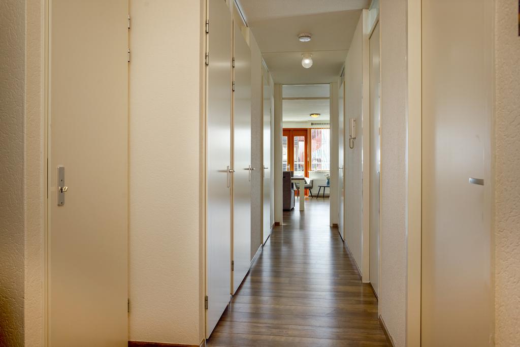 De hal/entree biedt toegang tot de slaapkamers, woonkamer, badkamer, toiletruimte, bergkast en een technische ruimte en de compleet uitgeruste meterkast. Het gehele appartement is voorzien van een mooie laminaatvloer.