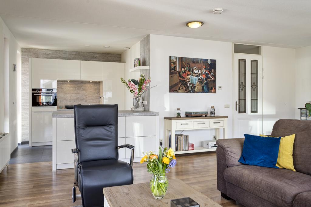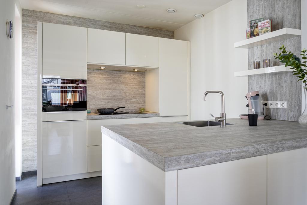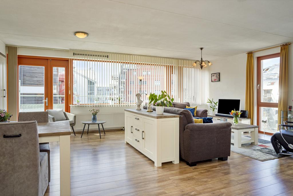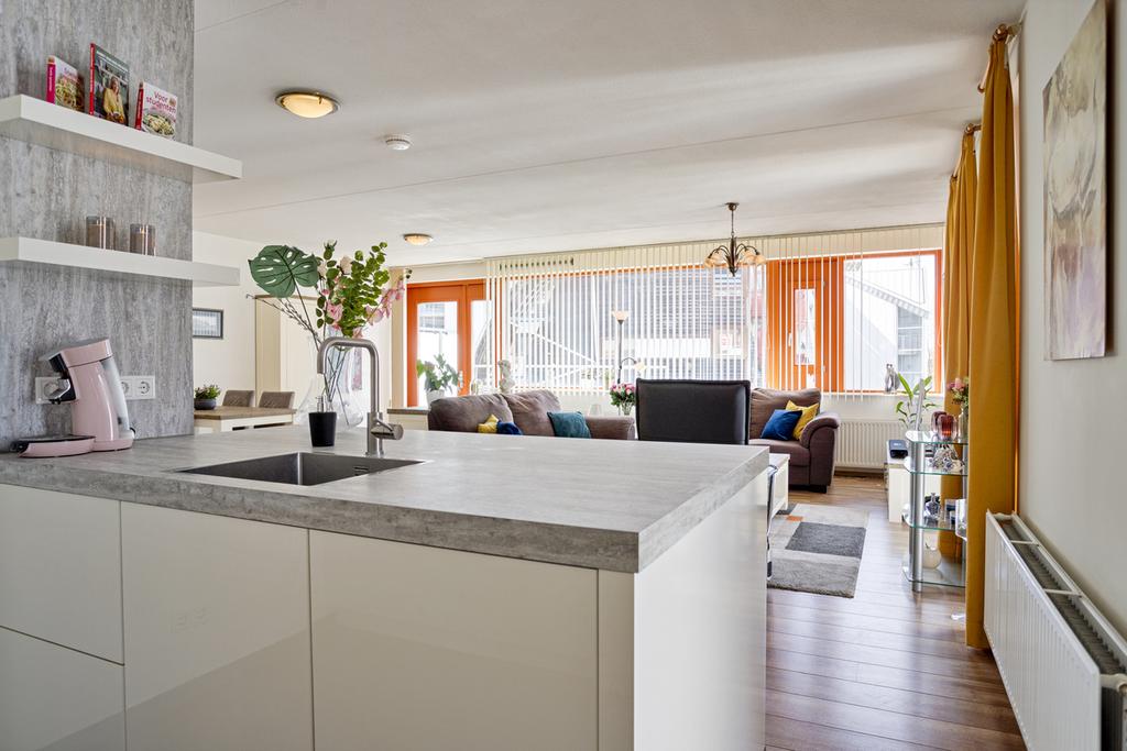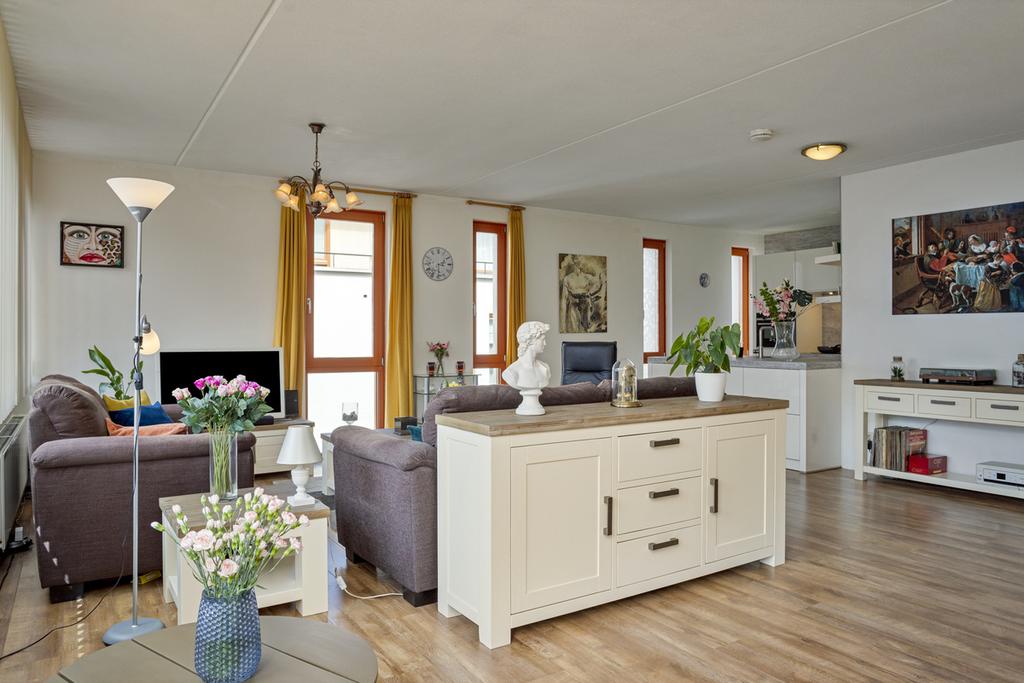 De ruime, lichte woonkamer met toegang tot het zonnige balkon (7 m2) gelegen op het zuiden heeft door de grote raampartijen en de gunstige ligging op de hoek van het complex een zeer prettige lichtinval en een aangenaam uitzicht over de Bordeslaan. Vanaf het zonnige balkon kijkt u naar het prachtige schouwspel van de Armada’s, een groenrijke omgeving, en de waterpartij van het Paleiskwartier. De woonkamer is voorzien van een luxe open keuken ( ca. 2017) welke is voorzien van diverse hoogwaardige inbouwapparatuur zoals een combi-magnetron, vaatwasser, inductiekookplaat met ingebouwde afzuiging, koel-/ vriescombinatie en een spoelbak.