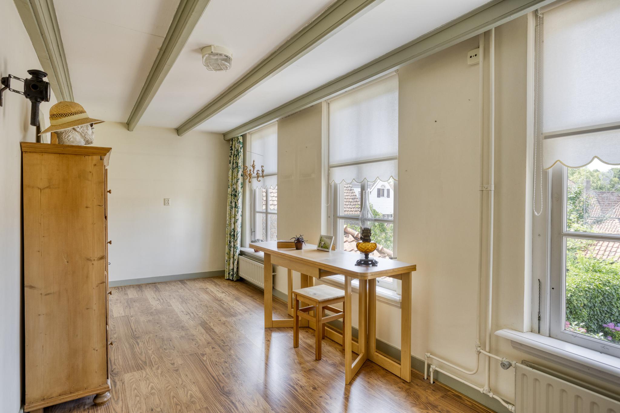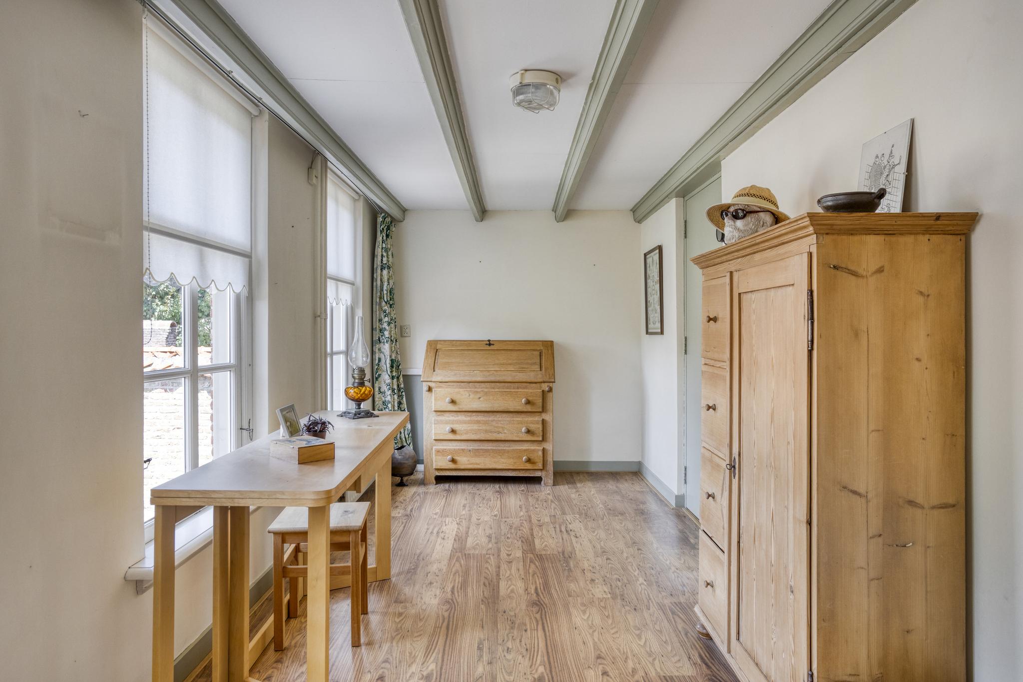 - De woning is voorzien van hoge plafonds met een karakteristieke balkenstructuur;