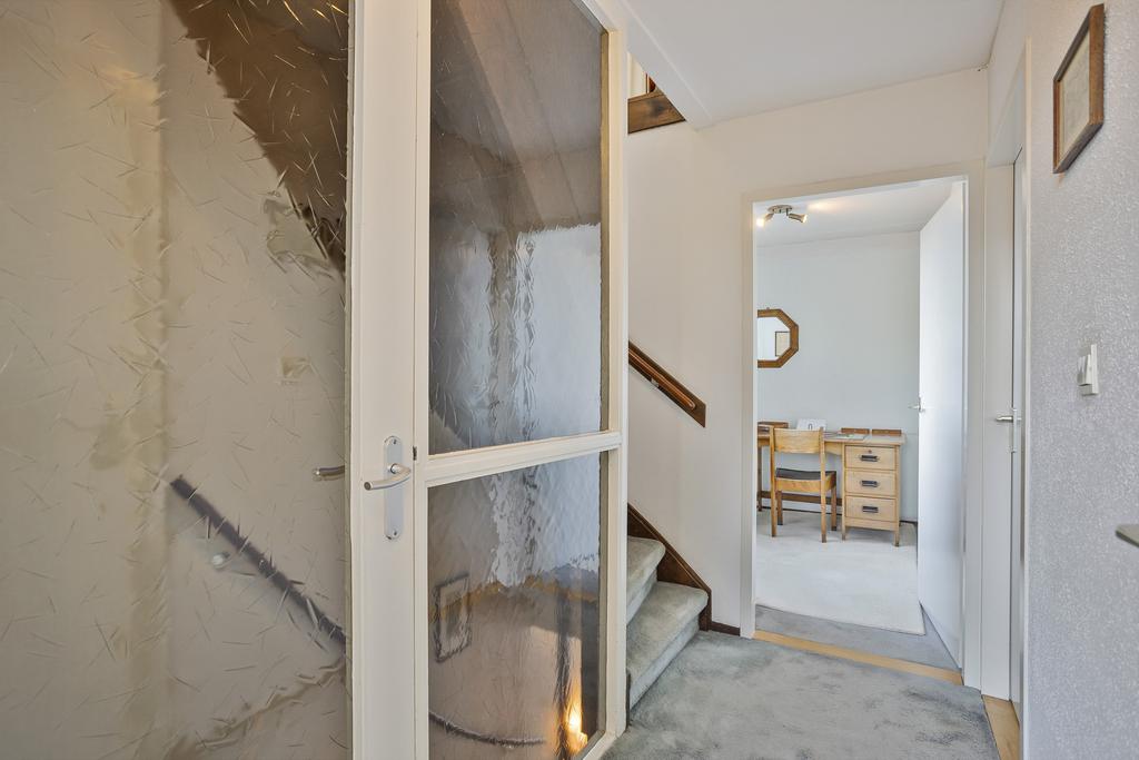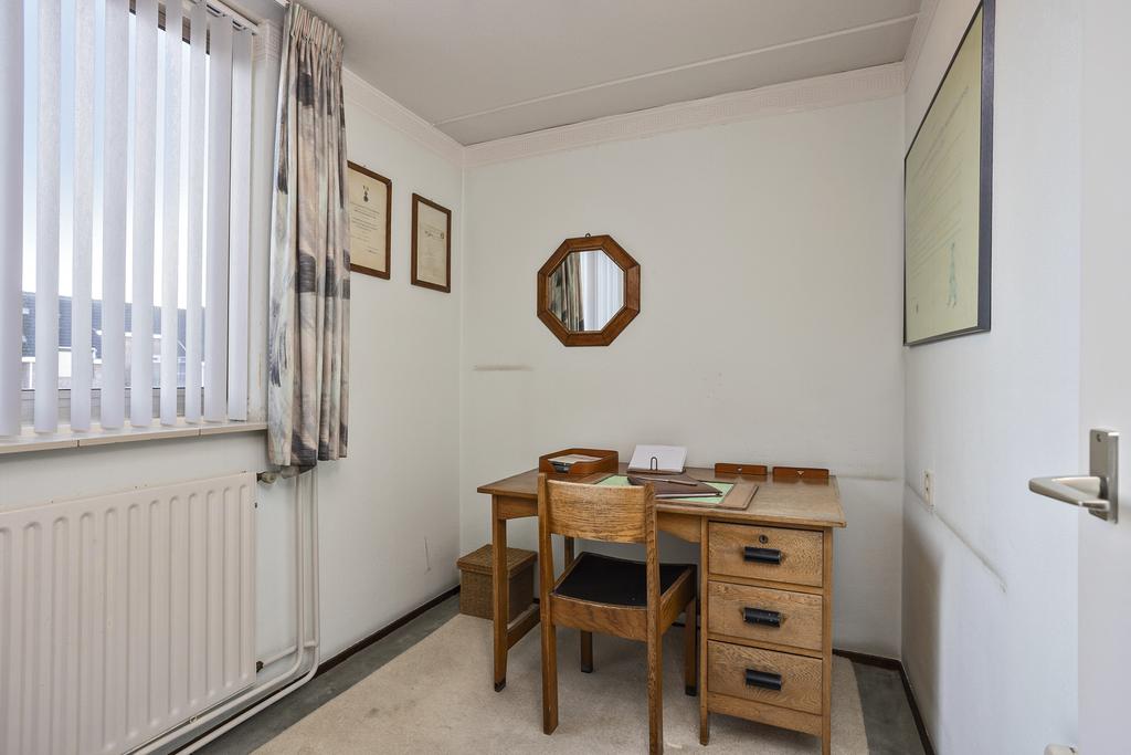 De 1e verdieping biedt goede ruimtes en wederom een praktische indeling. Slaapkamer 1 heeft voldoende ruimte voor onder andere een tweepersoonsbed en kastenwand en er is toegang tot het balkon aan de voorzijde van de woning. De badkamer is vergroot en van alle gemakken voorzien: een ligbad, separate doucheruimte, wastafelmeubel en toilet. Slaapkamer 2 is tevens een ruime kamer. Slaapkamer 3 is in gebruik als kantoor. De gehele verdieping is voorzien van vloerbedekking.