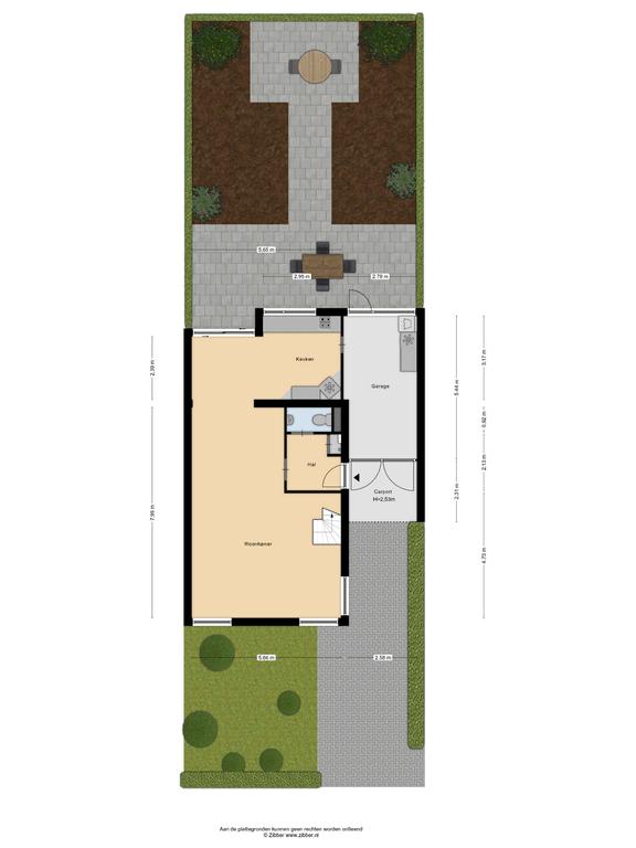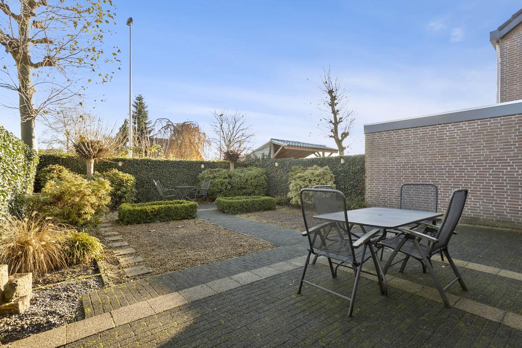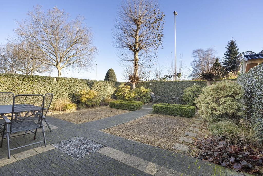 De tuin is onderhoudsvriendelijk aangelegd met borders, terrassen en grind. U heeft de een mogelijkheid om op diverse plaatsen een zitje te plaatsen. Aangezien de tuin op het oosten is gesitueerd, is er altijd wel een plekje met zon of schaduw te vinden. Het aanwezige zonnescherm maakt het plaatje compleet.