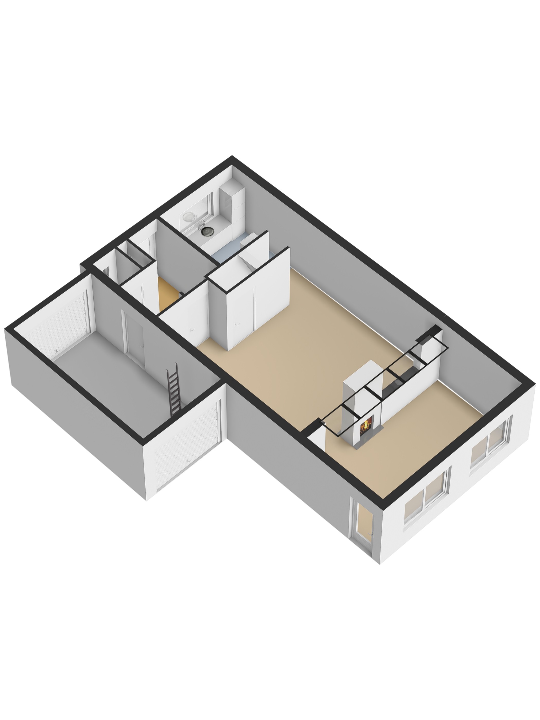De woning beschikt tevens over een aangebouwde garage. De garage is voorzien van krachtstroom, water en een tweede aansluiting voor een wasmachine.