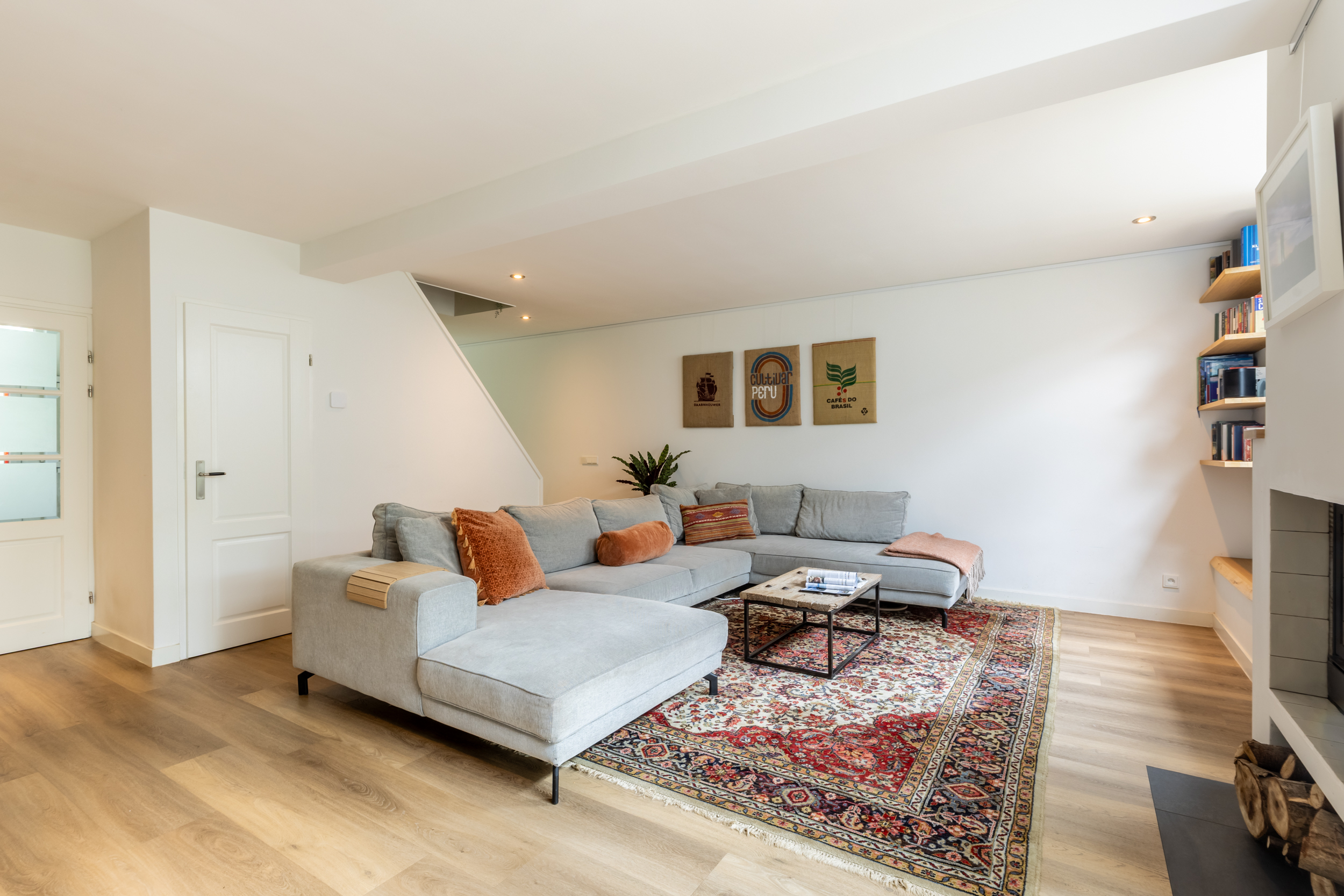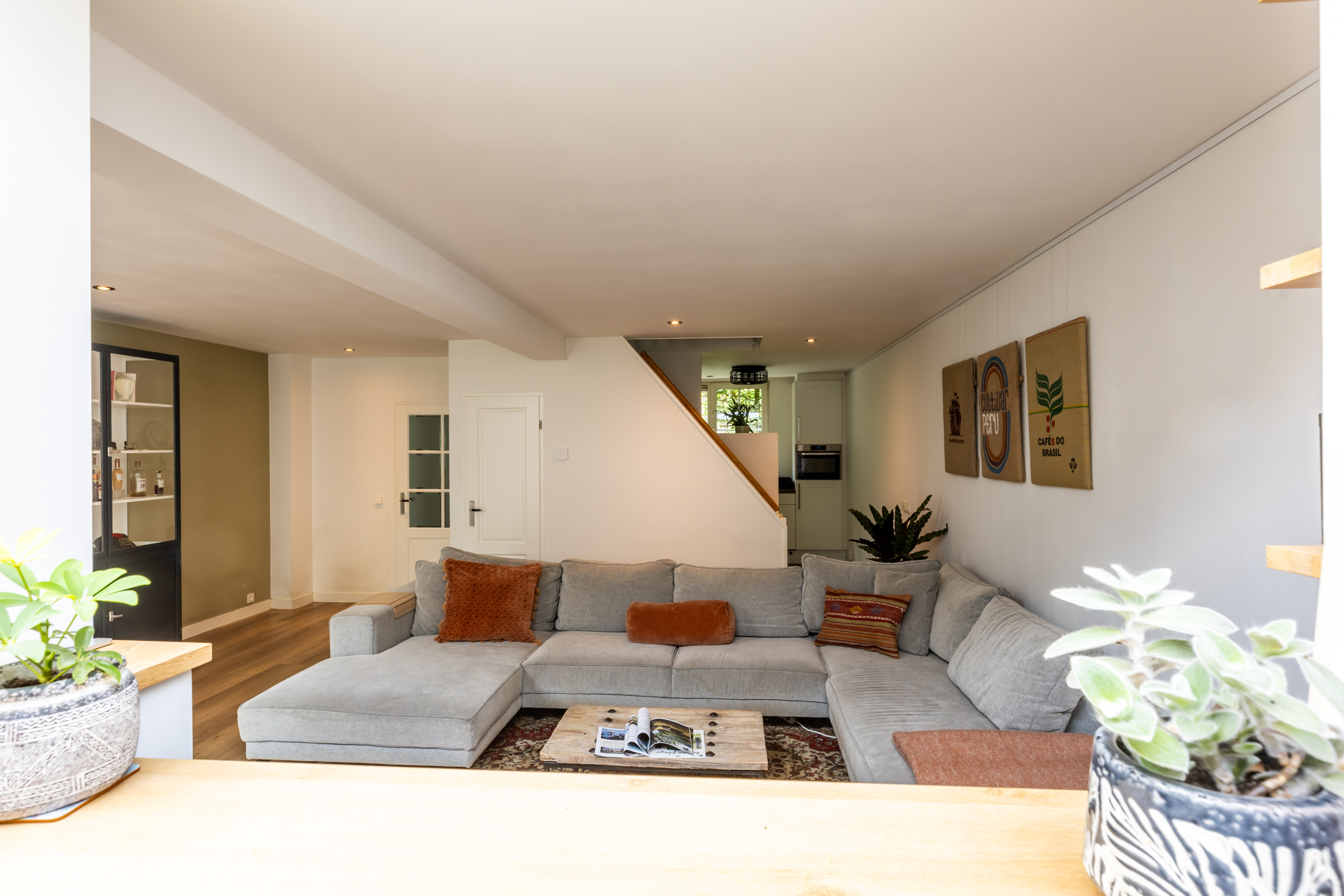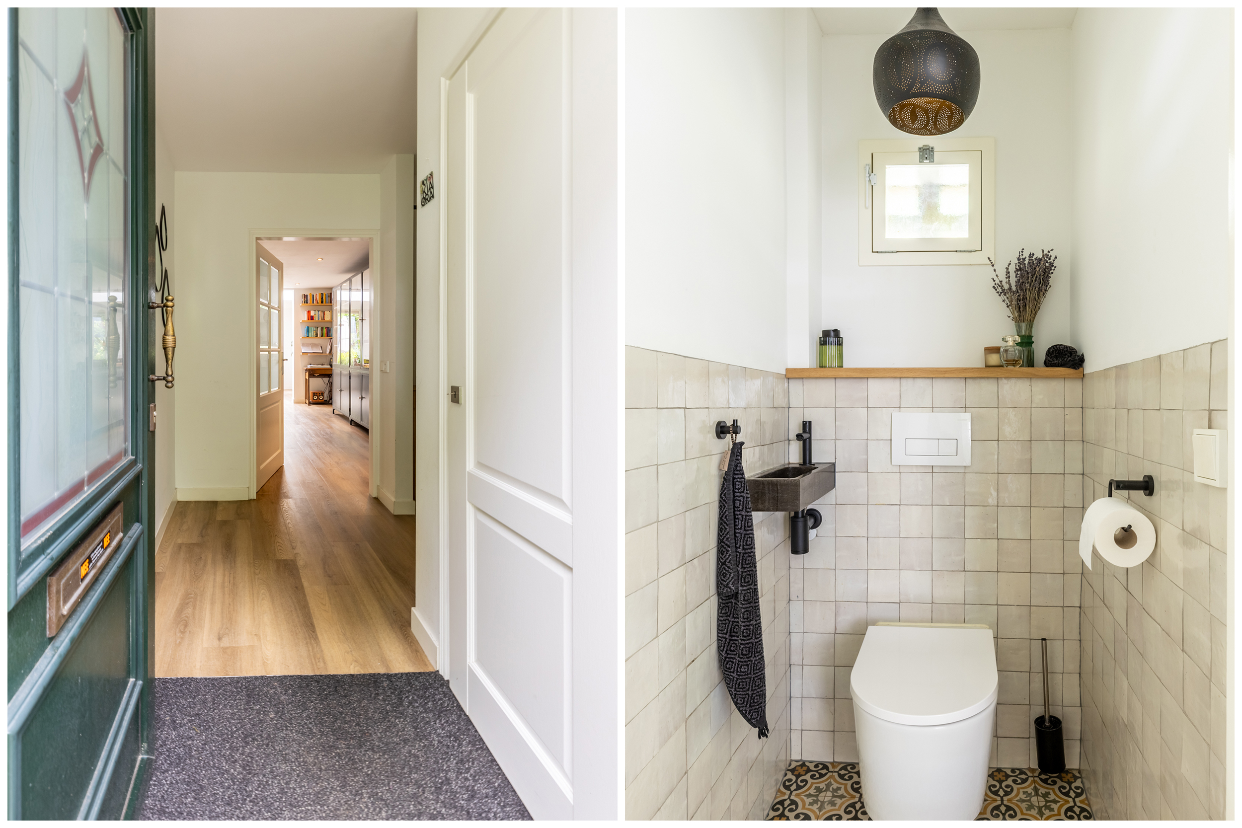 Zodra je de auto op de oprit parkeert, voel je het al: dit is thuiskomen. Via de nette entreehal – waar je ook het moderne toilet bevindt – stap je door naar de ruime woonkamer, waar ook de trap naar de eerste verdieping te vinden is. De fraaie houtenlook pvc-vloer, het overvloedige daglicht dat door de grote raampartijen naar binnen stroomt en het zicht op het groen creëren een rustige, huiselijke ambiance.
