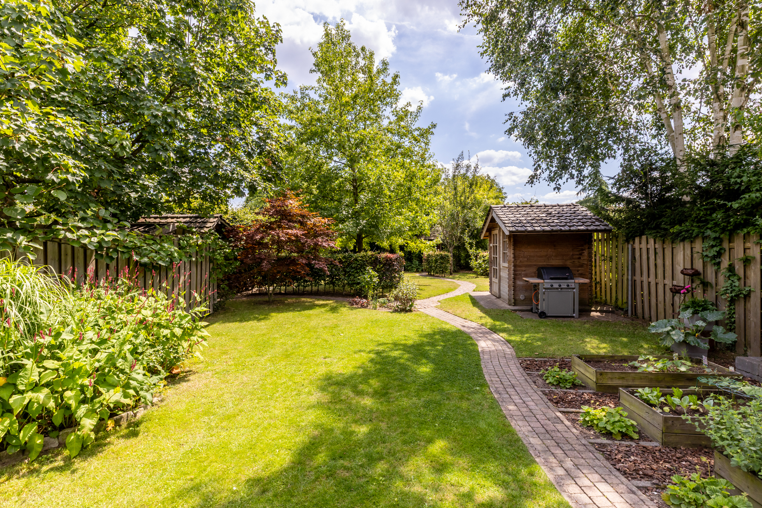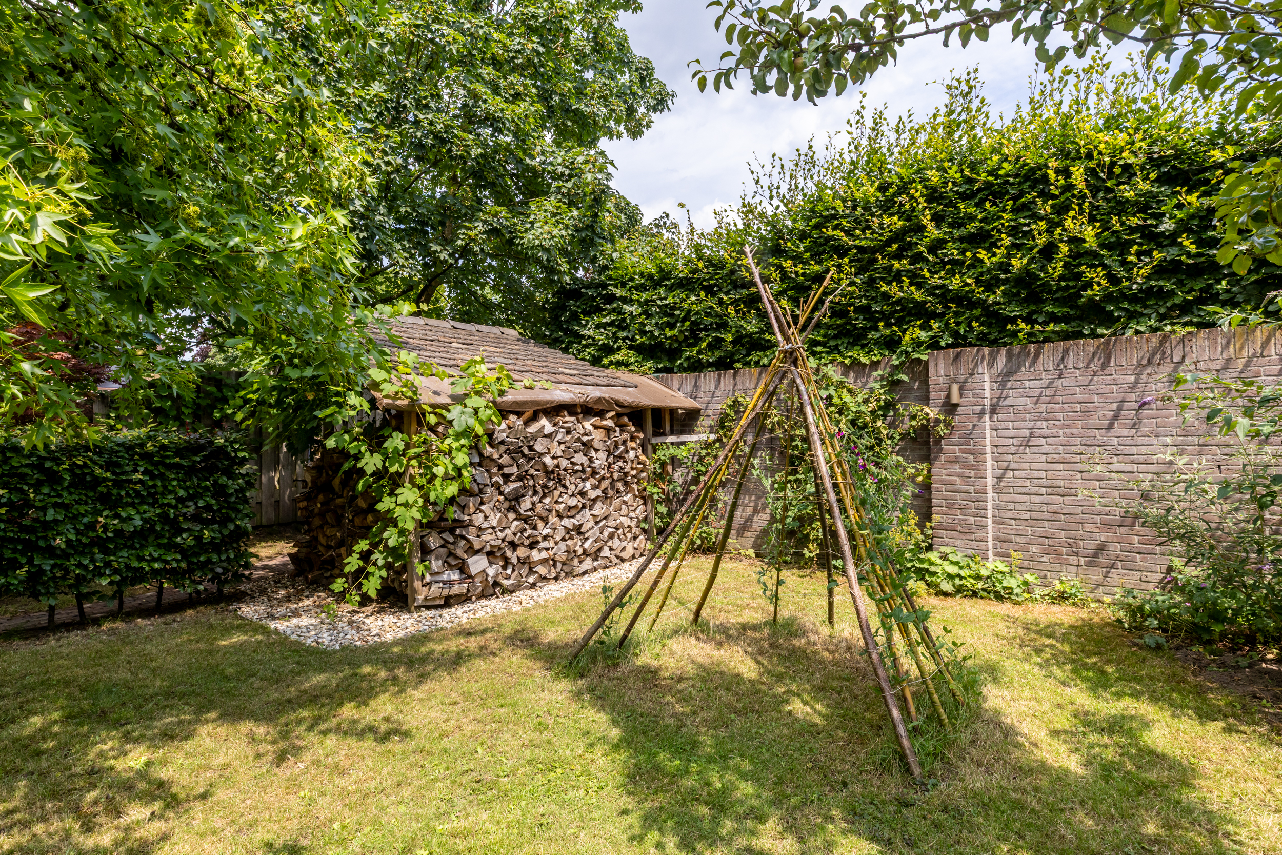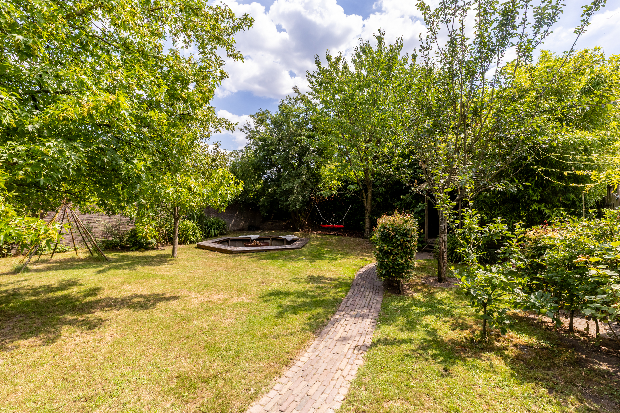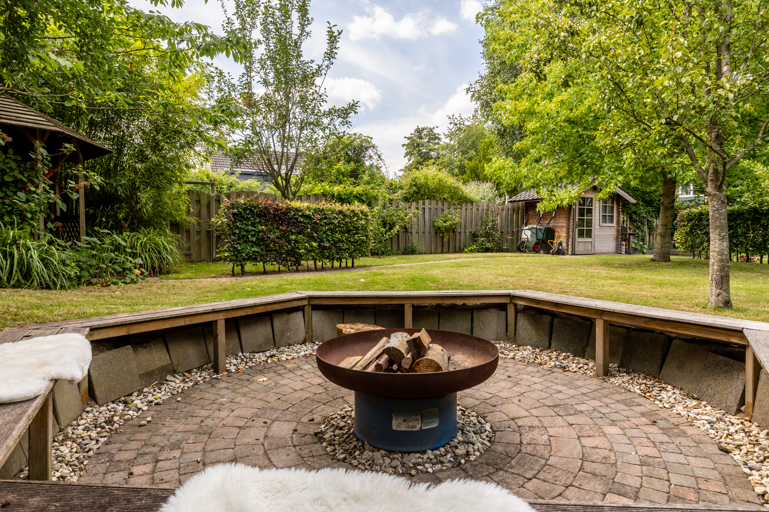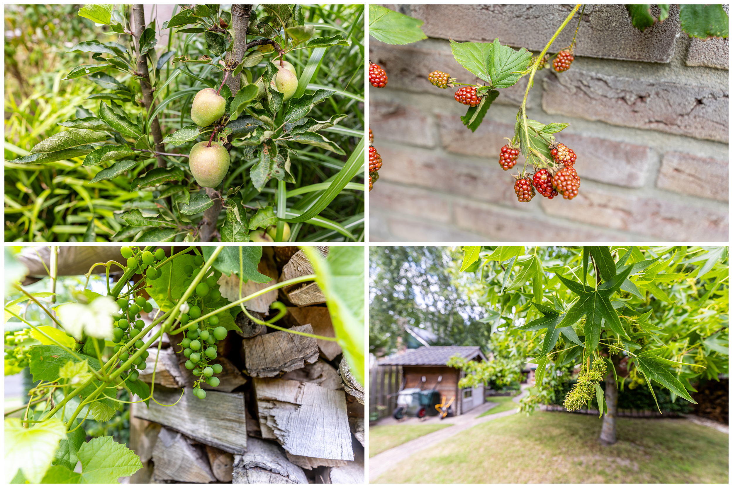 En dan de tuin – een echt plaatje! De diepe, zonnige achtertuin ligt op het zuidoosten en is een heerlijke plek voor jong en oud. Er is een gezellige zithoek met kampvuurplaats, een prieel met hangmat, een moestuintje en volop groen om van te genieten. Achterin de tuin vind je een praktische berging voor hout en fietsen, en een achterom die zorgt voor extra gemak. De tuin is met liefde onderhouden en biedt een overvloed aan natuur – je plukt er zelfs eigen appels, bramen, druiven en nog veel meer!