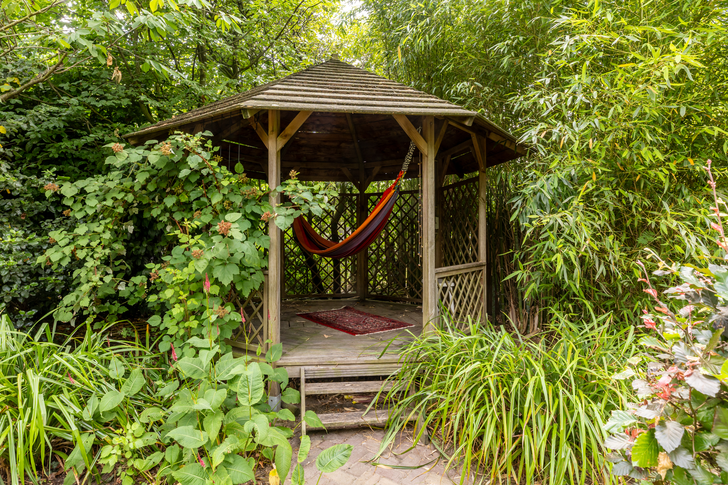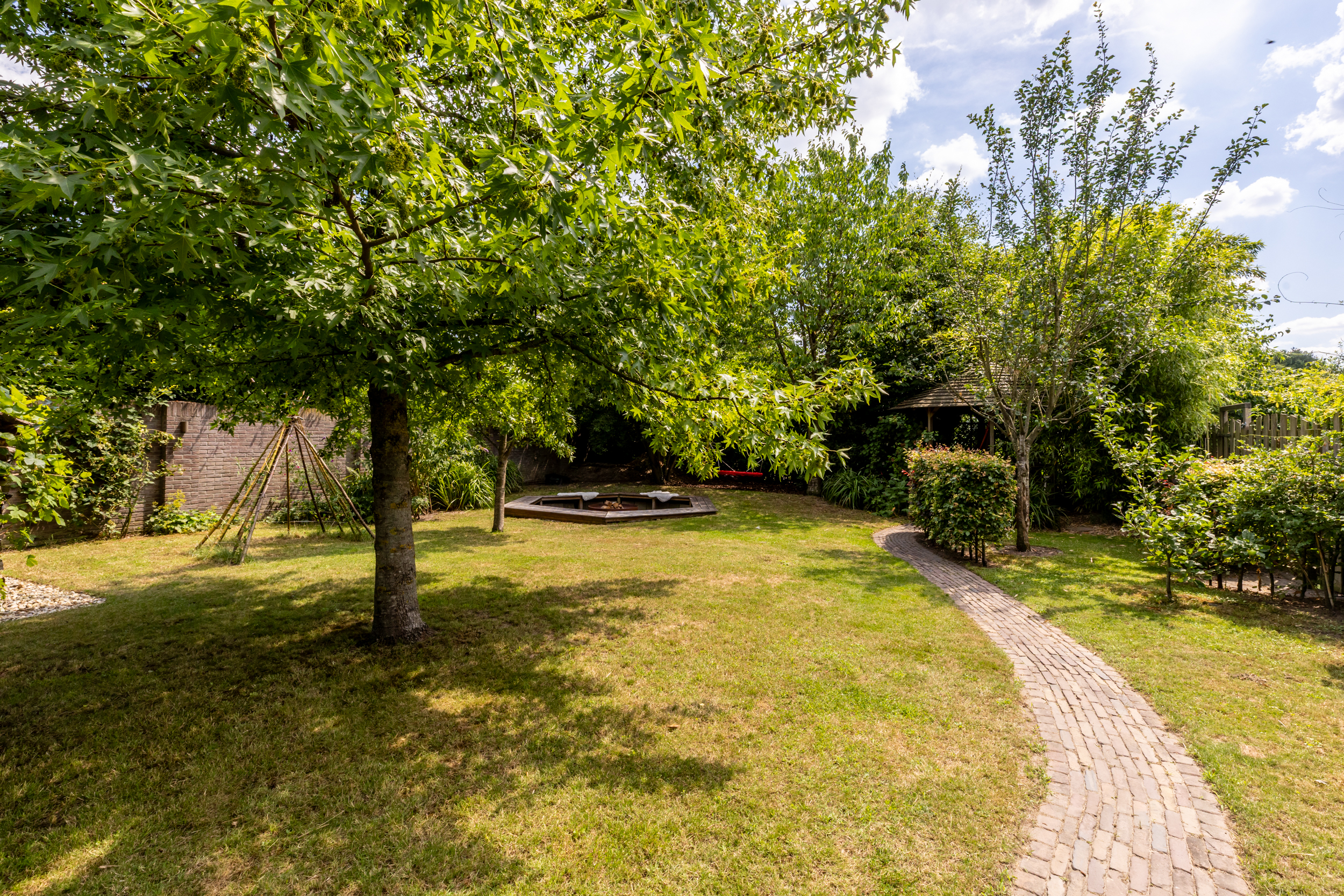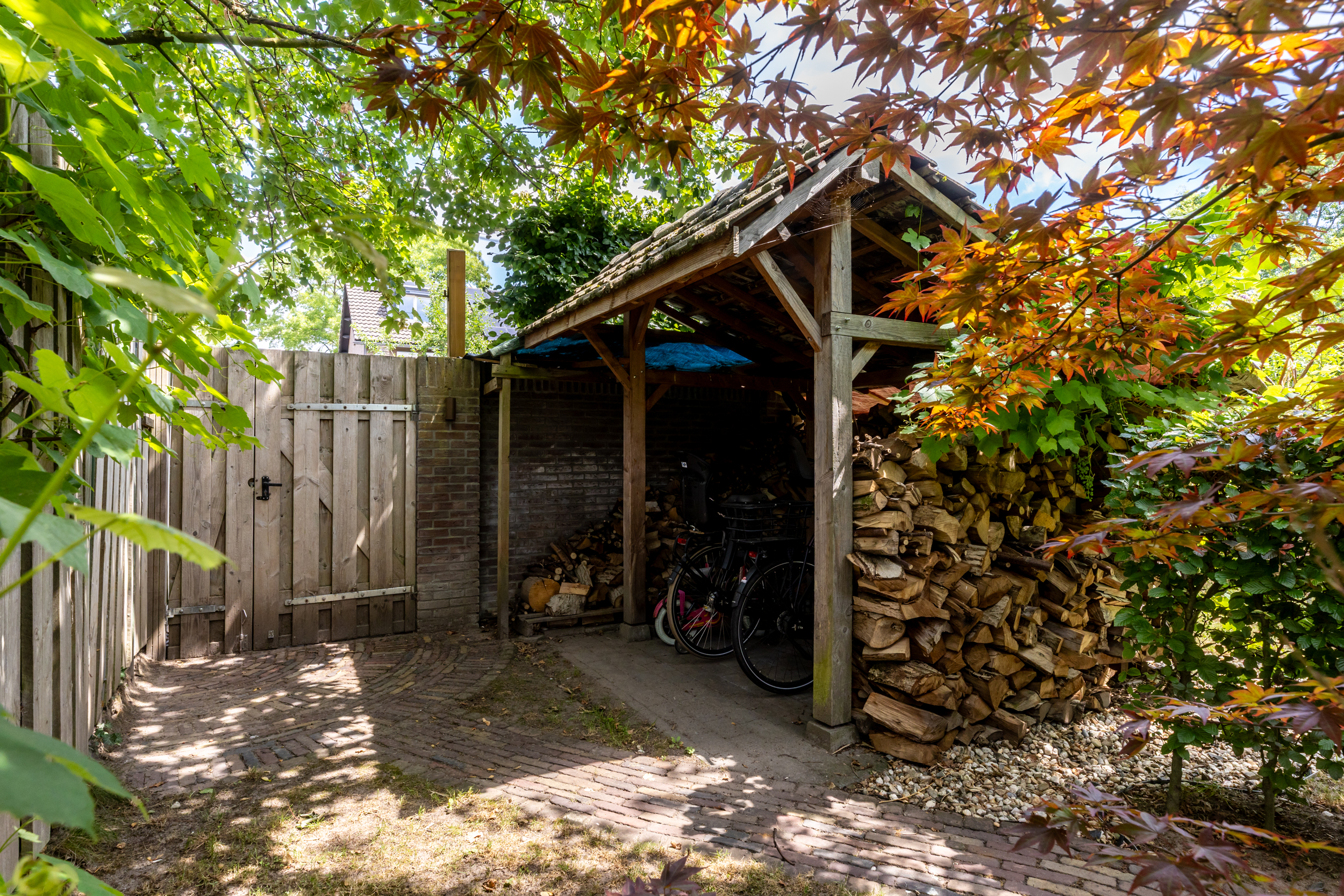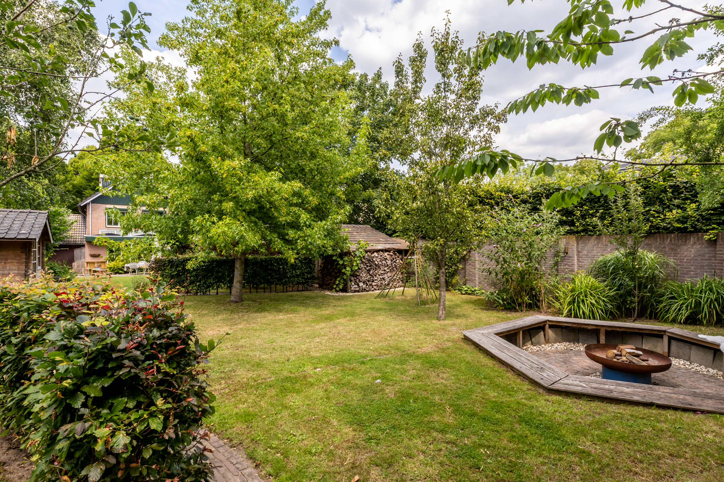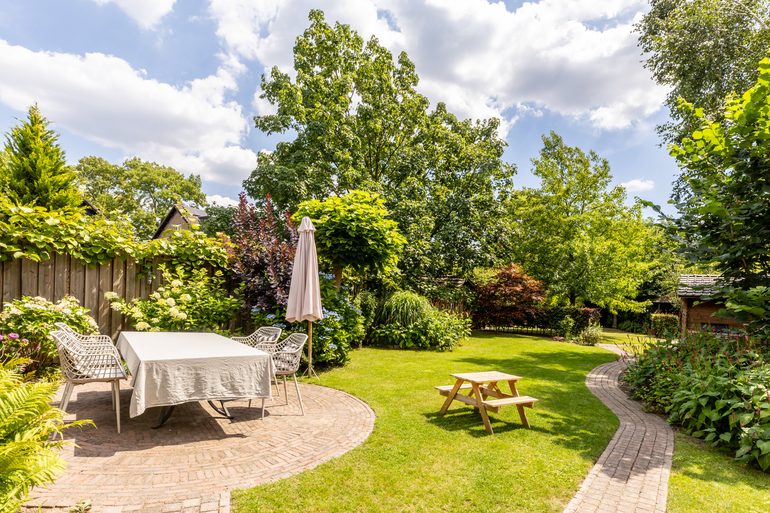 En dan de tuin – een echt plaatje! De diepe, zonnige achtertuin ligt op het zuidoosten en is een heerlijke plek voor jong en oud. Er is een gezellige zithoek met kampvuurplaats, een prieel met hangmat, een moestuintje en volop groen om van te genieten. Achterin de tuin vind je een praktische berging voor hout en fietsen, en een achterom die zorgt voor extra gemak. De tuin is met liefde onderhouden en biedt een overvloed aan natuur – je plukt er zelfs eigen appels, bramen, druiven en nog veel meer!