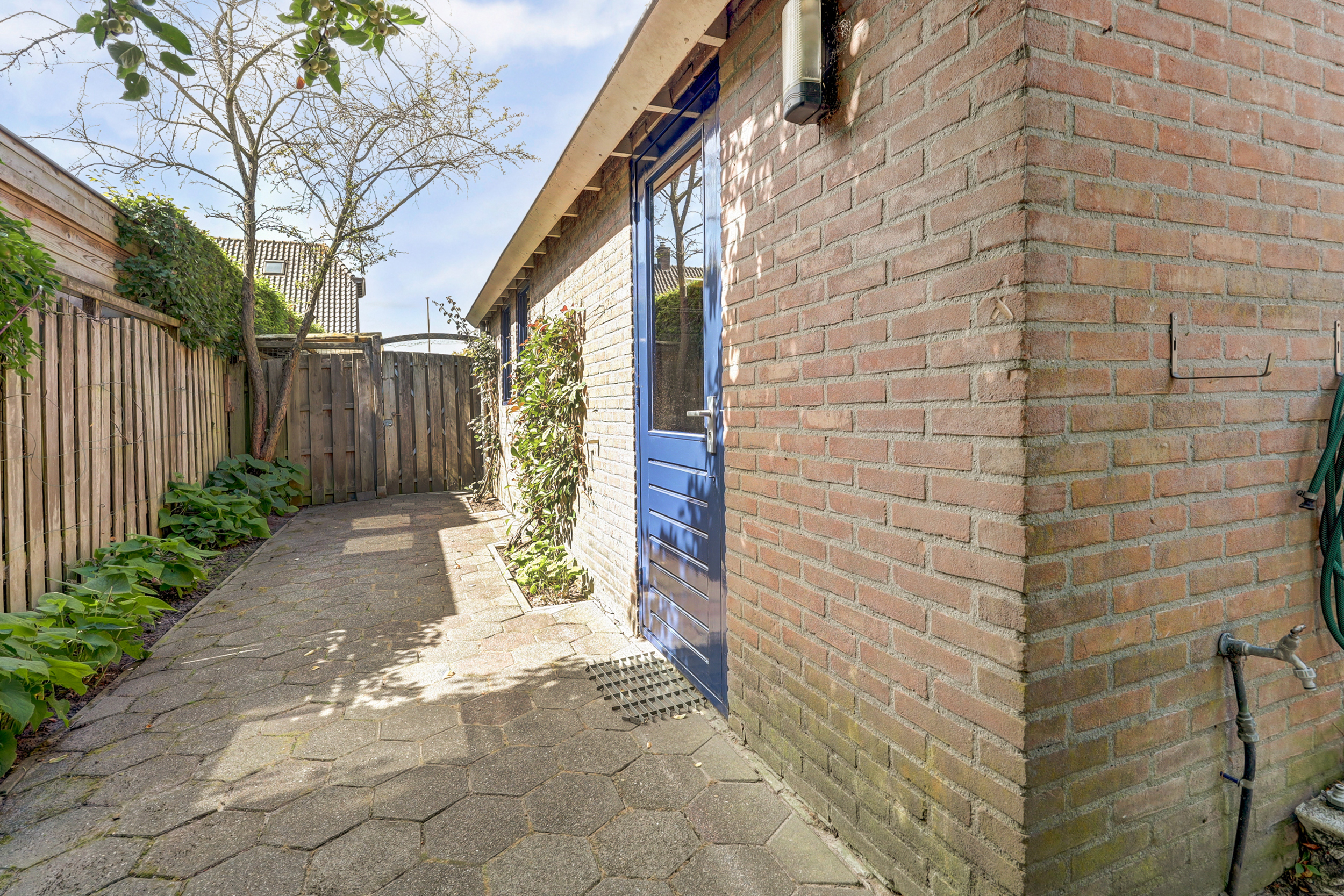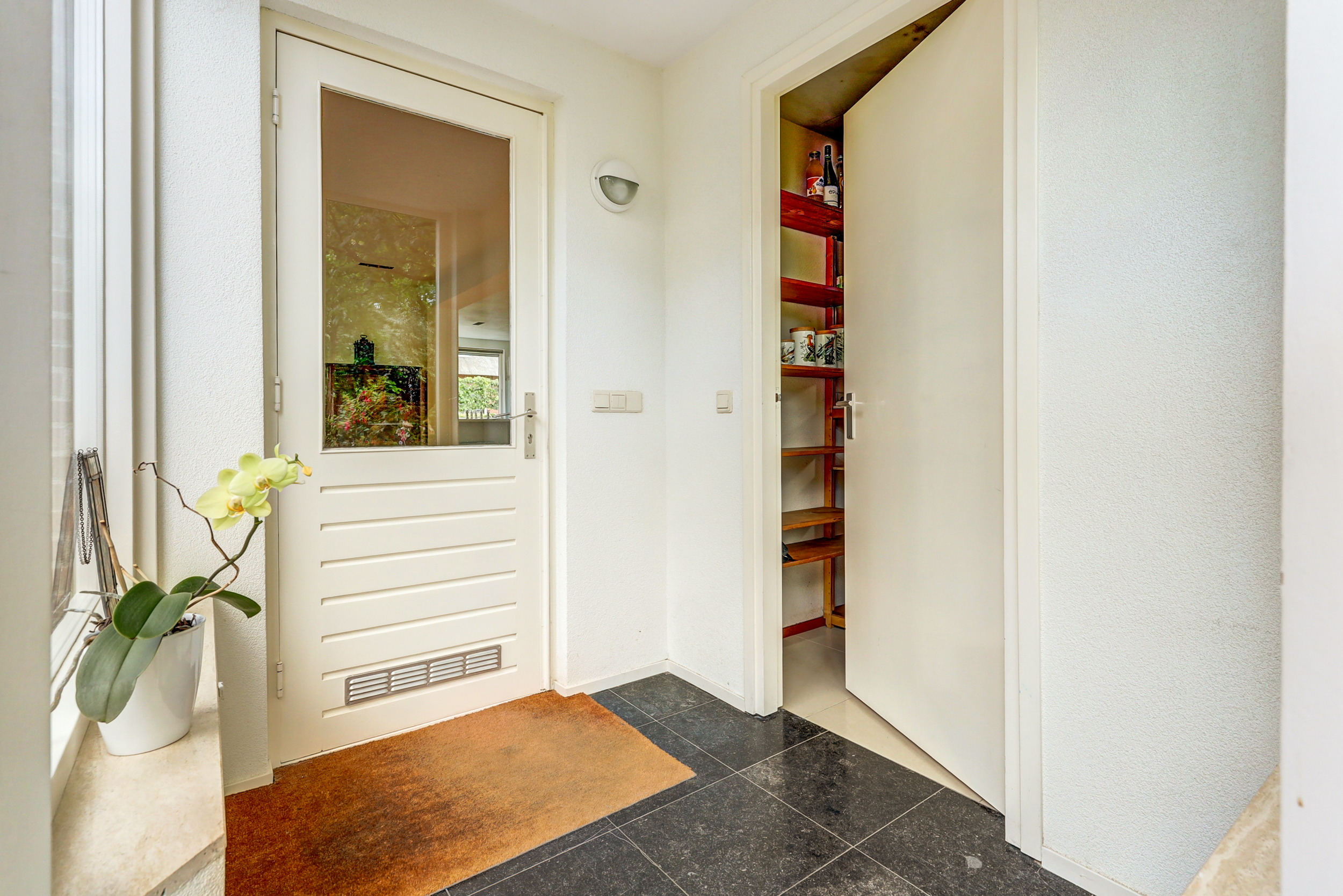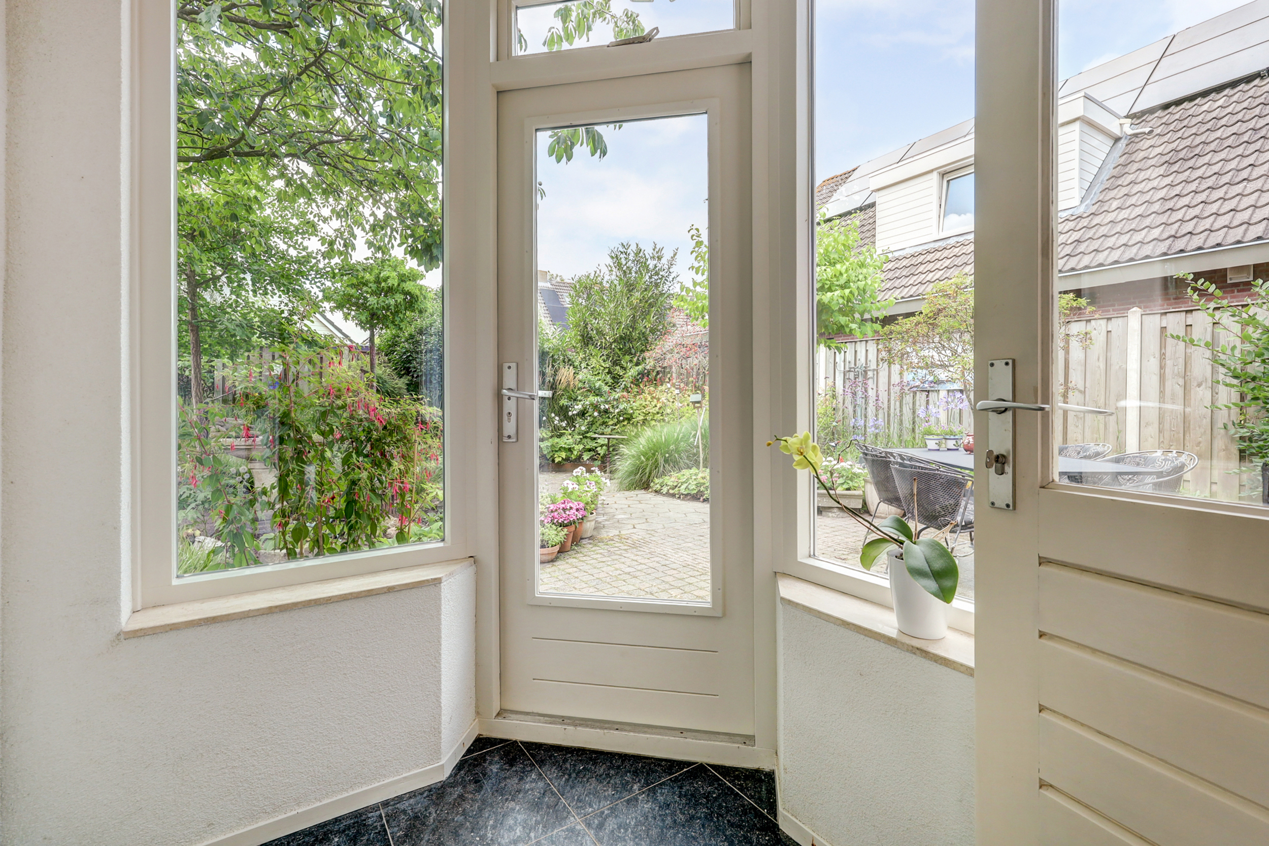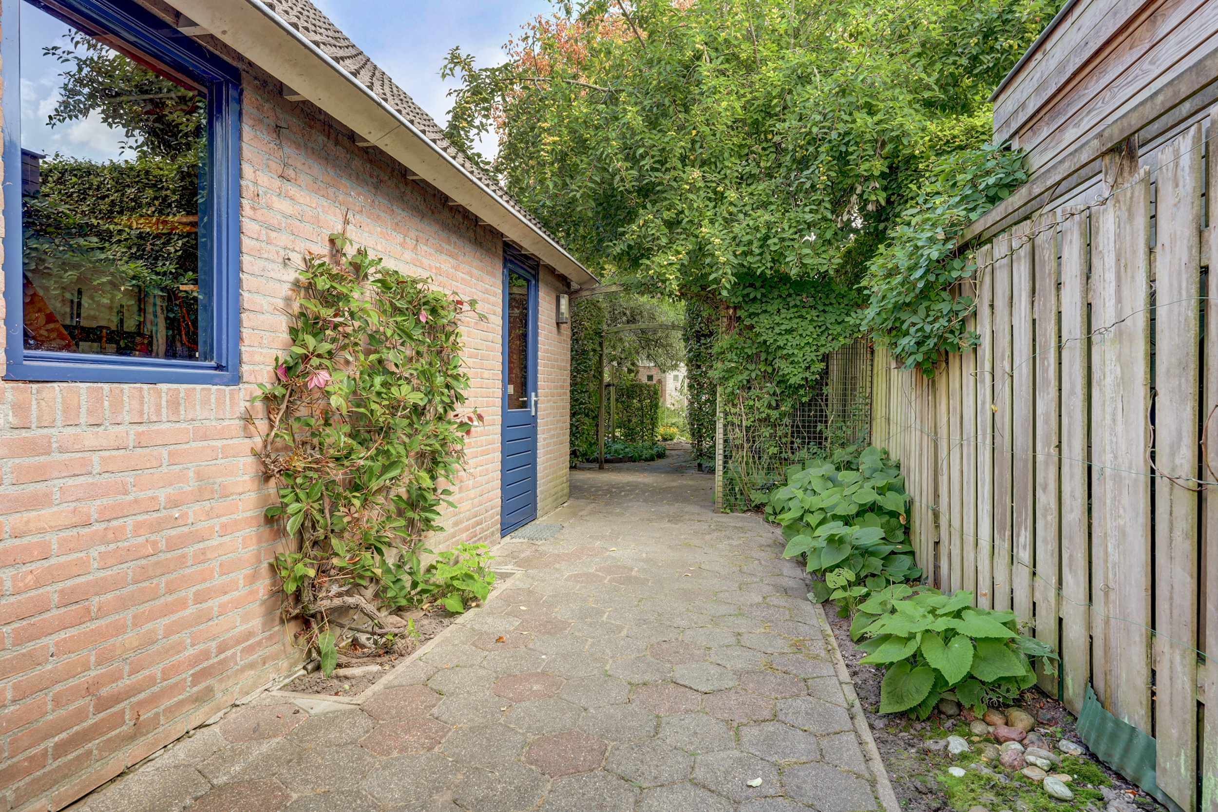 De buitenruimte is volledig rondom de woning gelegen en combineert op fraaie wijze betegeling met veel groenvoorziening. De vele planten en bomen geven de tuin een landelijke en sfeervolle uitstraling, waarbij direct zichtbaar is dat deze met zorg is ingericht en onderhouden. Er is volop ruimte om een gezellige zitplek te creëren, bijvoorbeeld met een grote tuintafel en stoelen om samen met familie en vrienden te genieten van lange zomeravonden. Dankzij de grote openslaande deuren vanuit de woonkamer loopt de tuin naadloos over in de binnenruimte, waardoor binnen en buiten perfect met elkaar verbonden zijn. De woning beschikt over een grote zonneluifel, waardoor je altijd een fijn plekje kunt vinden – of je nu wilt genieten van de zon of juist de schaduw opzoekt.