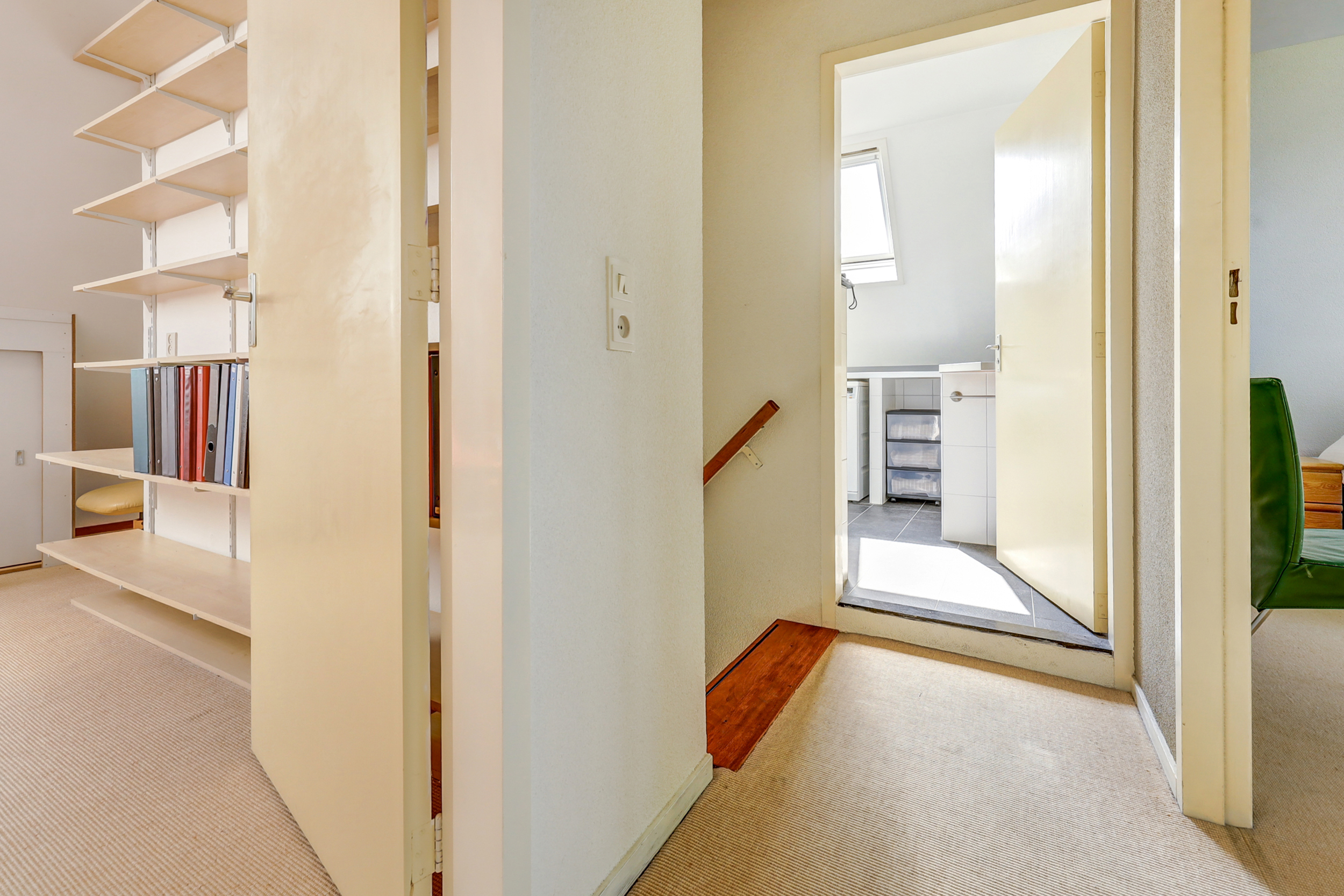 De zolder is bereikbaar via een vlizotrap en biedt volop ruimte voor het opbergen van spullen die niet dagelijks gebruikt hoeven te worden. Ideaal voor koffers, seizoensgebonden items of extra voorraad.
