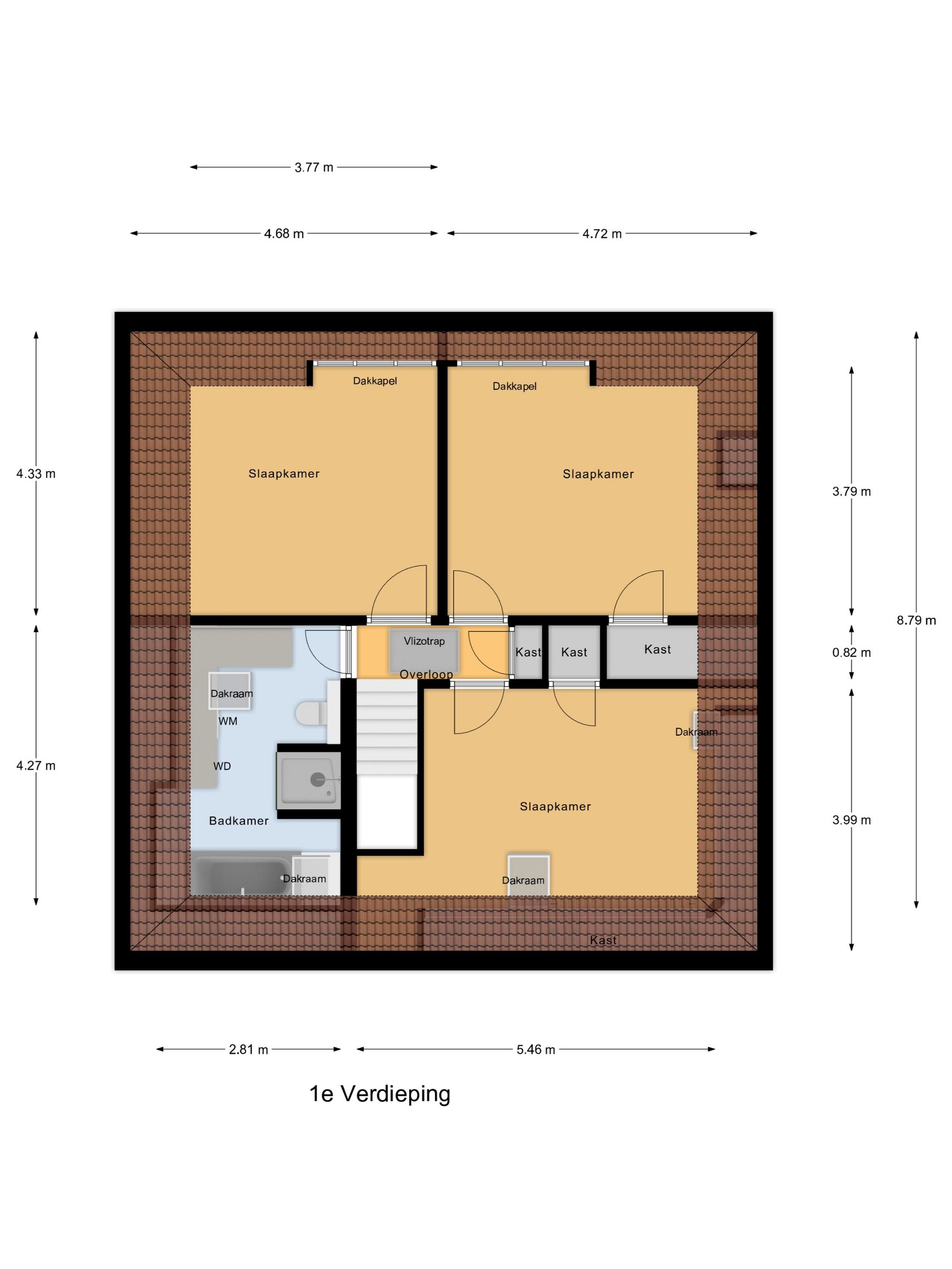 Dankzij de aanwezige dakkapellen zijn de slaapkamers opvallend groot van formaat en kunnen ze stuk voor stuk als hoofdslaapkamer dienen. De vele raampartijen zorgen voor het natuurlijk daglicht, waardoor de kamers een prettige en lichte sfeer hebben. Bovendien is er in elke kamer voldoende opbergruimte aanwezig door de inbouwkasten en de kastruimte onder de knieschotten. Extra comfort wordt geboden door de aanwezige airconditioning, ideaal tijdens warme zomerdagen. De badkamer is ruim opgezet en compleet uitgerust met een ligbad, douche, toilet en een wastafel met groot meubel. Daarnaast bevinden zich hier ook de aansluitingen voor wasmachine en droger, wat de badkamer extra praktisch maakt.