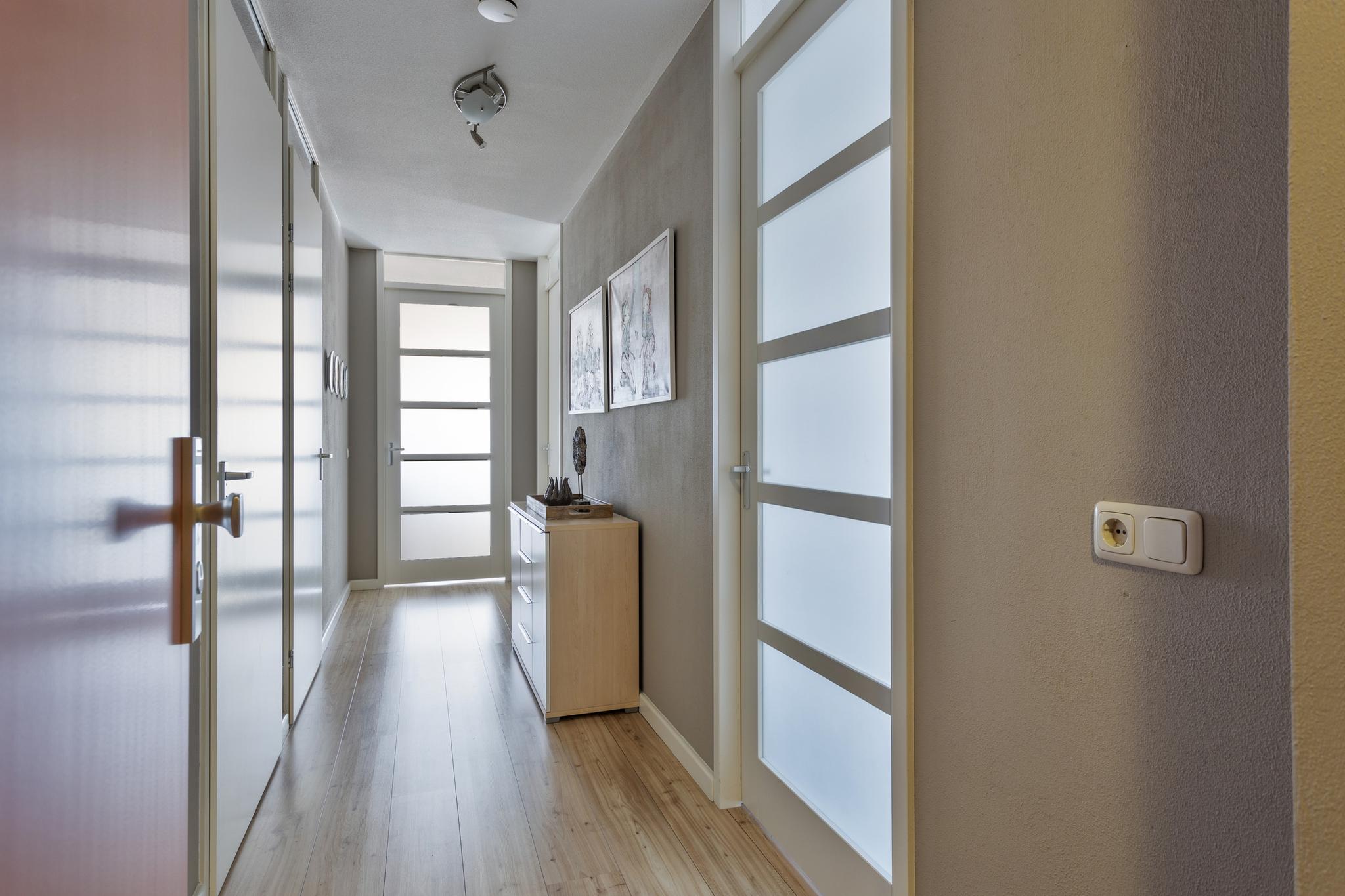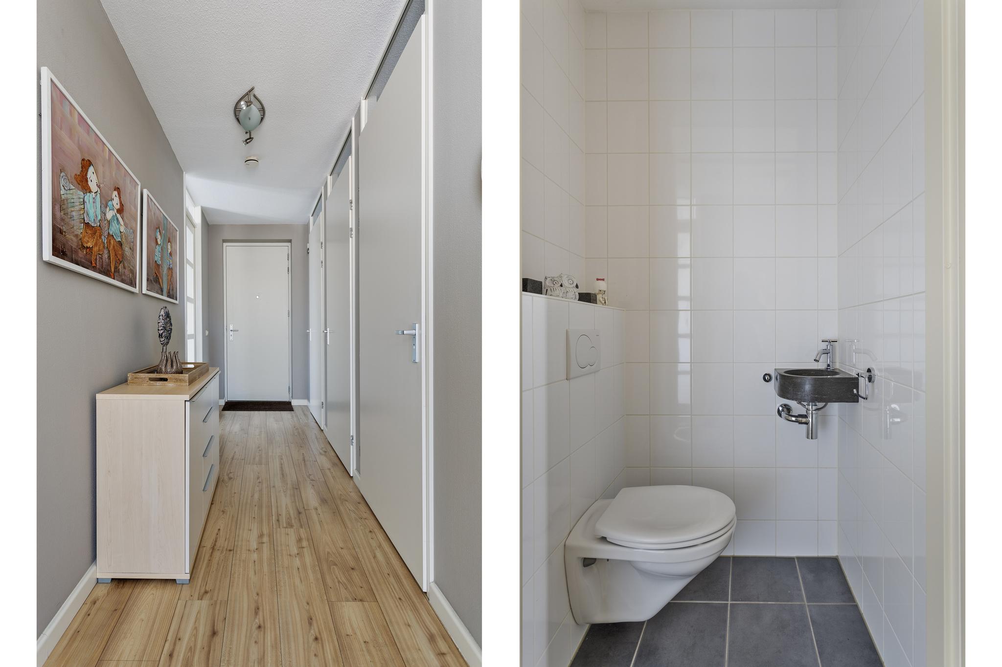 Via de lift of het trappenhuis bereikt u moeiteloos de derde verdieping van het netjes onderhouden appartementencomplex. Bij binnenkomst stapt u direct in een ruime en overzichtelijke entreehal. Vanuit de entreehal heeft u direct toegang tot alle vertrekken: twee slaapkamers, de badkamer, het aparte toilet, de inpandige berging en natuurlijk de woonkamer. Het gehele appartement is strak afgewerkt en voorzien van een onderhoudsvriendelijke laminaatvloer die zorgt voor een moderne basis. Zodra u de woonkamer binnenloopt, valt het direct op hoeveel licht er binnenvalt. De grote raampartijen geven de ruimte een frisse uitstraling en maken dit een plek waar u zich meteen thuis zult voelen. De woonkamer biedt voldoende ruimte voor een gezellige zithoek én een ruime eettafel – ideaal voor etentjes of lange koffiemomenten. De jaloezieën zorgen voor zowel privacy als sfeer, volledig afgestemd op het moment van de dag. De moderne nieuwe open keuken met composiet werkblad sluit perfect aan op de woonkamer en is van alle gemakken voorzien. U vindt er onder andere een inductie kookplaat met afzuiging, een vaatwasser, koelkast en een handige combioven. Via de woonkamer heeft u toegang tot het zonnige balkon, gelegen op het zuidoosten. Een heerlijke plek om ’s ochtends wakker te worden met uw eerste kop koffie of om lekker te loungen in de avondzon. Vanuit het balkon kijkt u heerlijk weg, waardoor u kunt genieten van een prettig uitzicht.