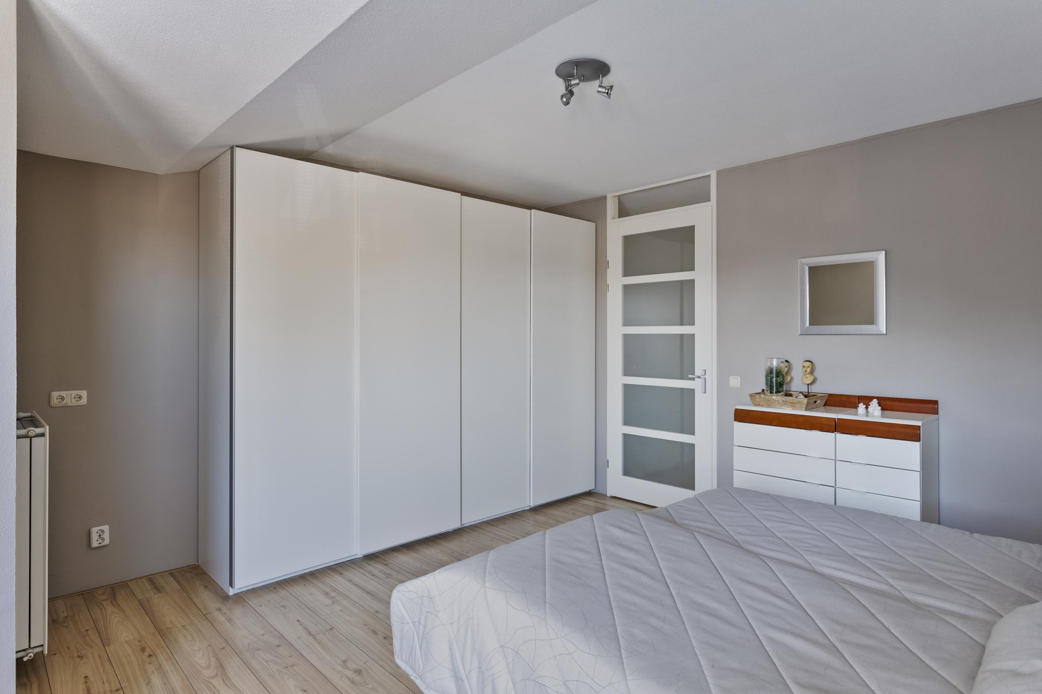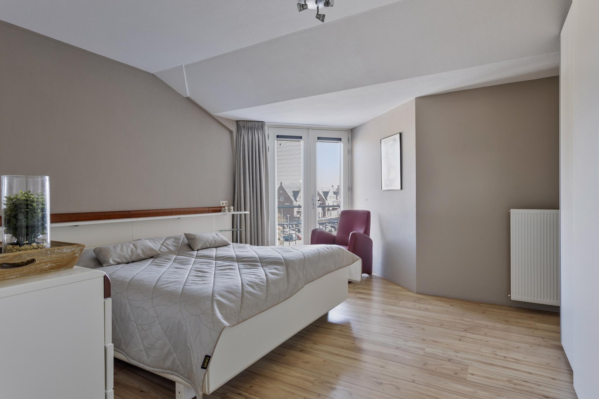 Het appartement beschikt over twee slaapkamers, elk met hun eigen charme en mogelijkheden. De hoofdslaapkamer is opvallend ruim en voelt direct als een fijne plek om tot rust te komen na een lange dag. Hier plaatst u met gemak een tweepersoonsbed met nachtkastjes, een grote kledingkast en eventueel andere meubels. Wat deze kamer extra bijzonder maakt, is het Frans balkon: twee openslaande deuren die zorgen voor een prettige sfeer en extra daglicht. De tweede slaapkamer is ideaal om helemaal naar uw eigen wens in te vullen. Of u nu op zoek bent naar een thuiswerkplek, een creatieve hobbyruimte, logeerkamer of misschien wel een walk-in closet, hier is alles mogelijk.