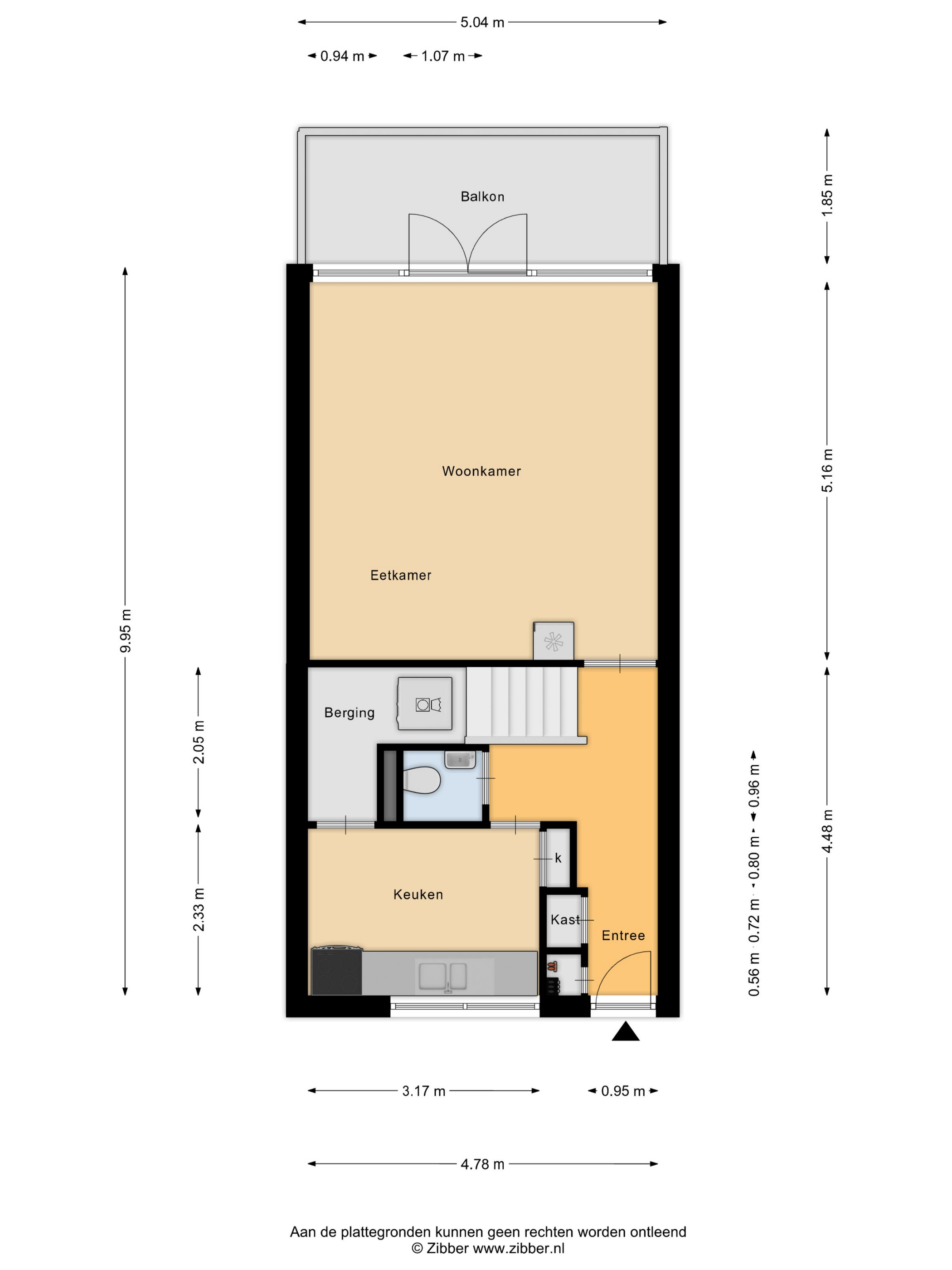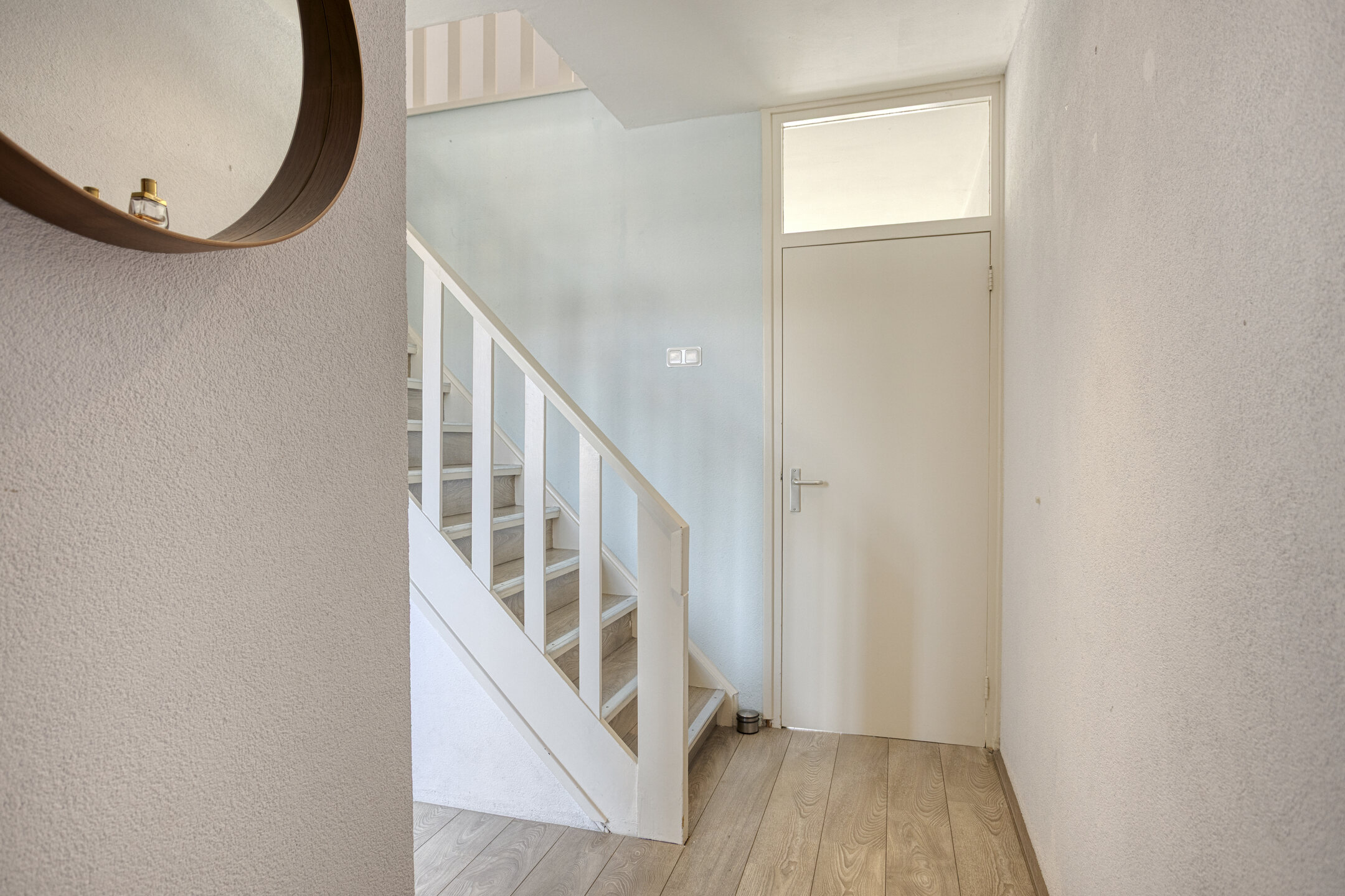 In de hal bevindt zich een separaat toilet en de trap naar boven.