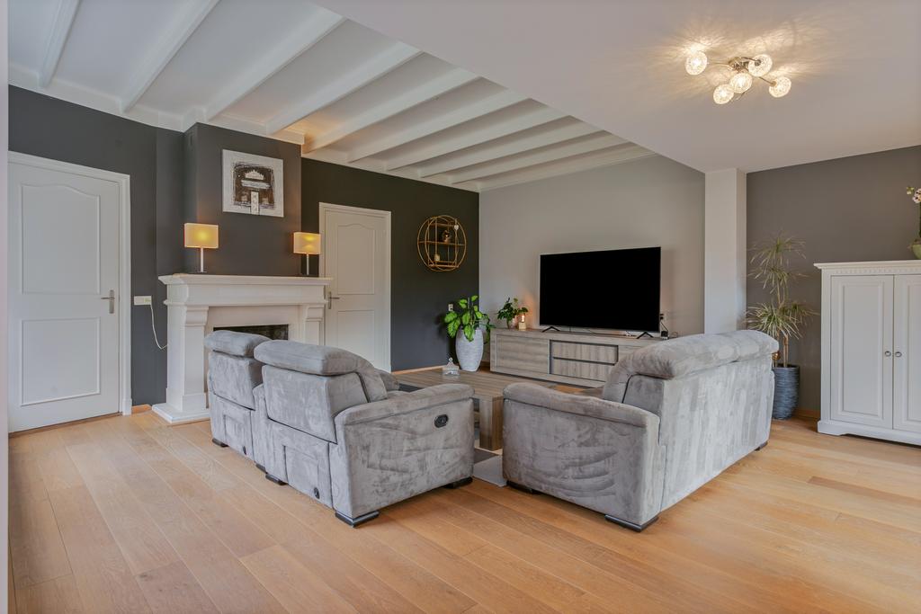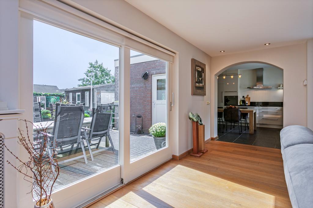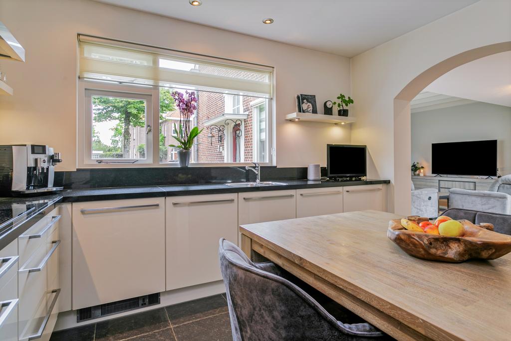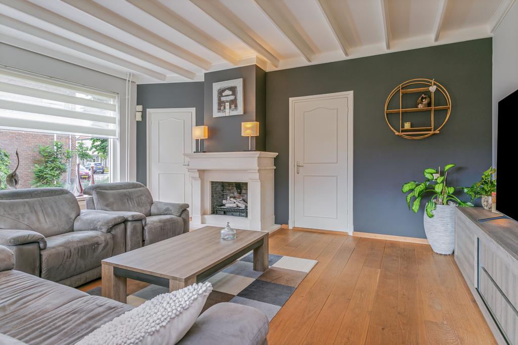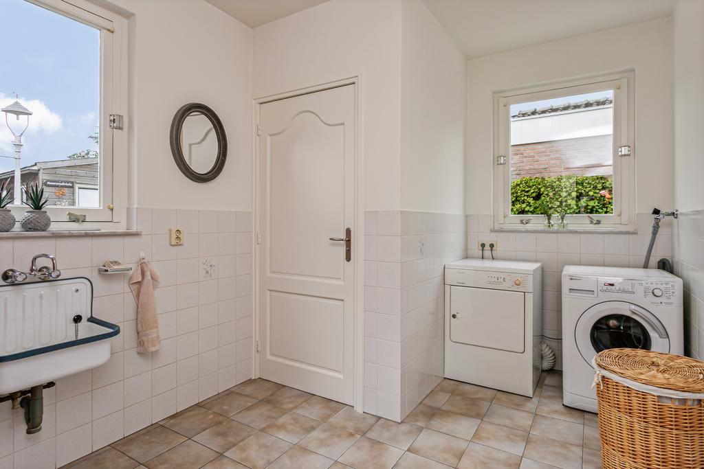Via de ruime oprit met ruimte voor meerdere auto's is de overkapte entree bereikbaar. De entree met meterkast geeft toegang tot een slaapkamer, trapopgang naar de eerste verdieping en de royale woonkamer. De slaapkamer op de begane grond is van een goed formaat en beschikt over genoeg ruimte voor een tweepersoons bed, nachtkastjes en kastenwand. De woonkamer beschikt over een karakteristiek houten plafond en een sfeervolle haard. De glad gestucte muren en de houten vloer dragen bij aan een hoogwaardig afwerkingsniveau. De woonkamer beschikt over een groot raampartij en een schuifpui die voor veel lichtinval zorgen en bijdragen aan een vrij uitzicht over het perceel. Onder de trap is er bergingsruimte aanwezig in de vorm van een trapkast. Vanuit de woonkamer is de uitbouw bereikbaar waarin de keuken en de bijkeuken zijn gerealiseerd. De moderne keuken is van alle gemakken voorzien zoals een koelkast, afzuigkap, inductie kookplaat en vaatwasser. Teven biedt de keuken genoeg ruimte aan een eethoek met tafel en zes stoelen. De inbouwspots dragen bij aan een prettige vorm van verlichting. Middels een loopdeur in de keuken bereikt u de bijkeuken met opstellingen voor de wasapparatuur en een extra fonteintje. Ook is er een separaat toilet aanwezig, een loopdeur geeft toegang tot de tuin. Deze ruimte zou na transformatie eventueel ook als badkamer kunnen dienen om de woning levensbestendig te maken.