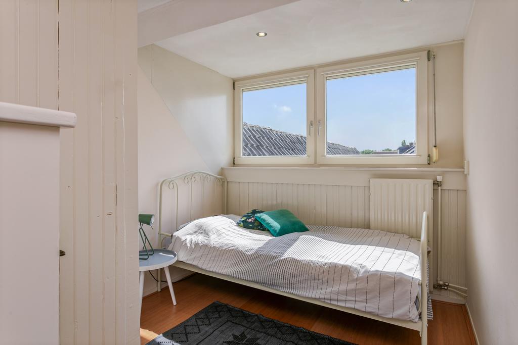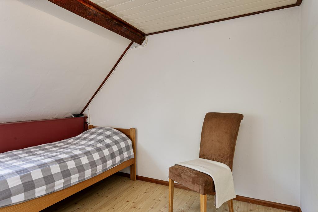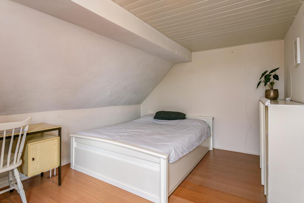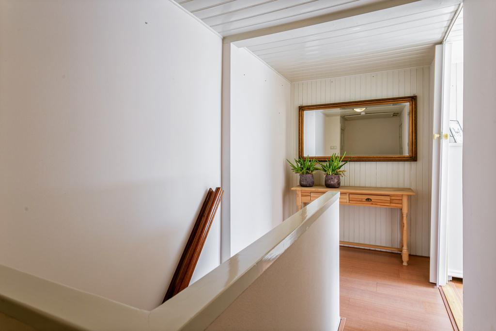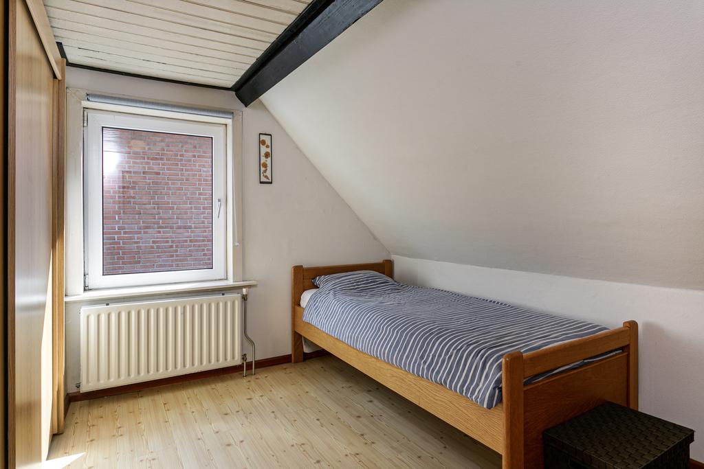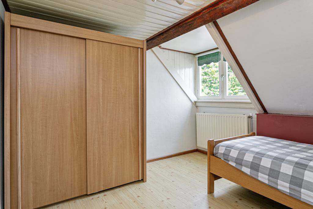 Via de trapopgang in de woonkamer treft u de overloop van de eerste verdieping aan die toegang geeft tot drie slaapkamers van een goed formaat. Aan de voorzijde van de woning bevinden zich de twee grootste slaapkamers. Aan de achterzijde bevindt zich de derde slaapkamer, deze is net zoals de andere slaapkamers uitgerust met een laminaat vloer. De karakteristieke gordingen geven de slaapkamers een sfeervol element mee. De vlizotrap geeft toegang tot de ruime bergzolder waar u genoeg ruimte heeft om overbodige spullen op te slaan.