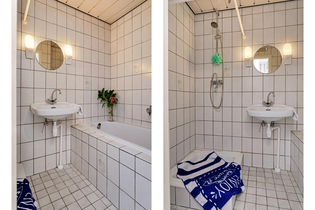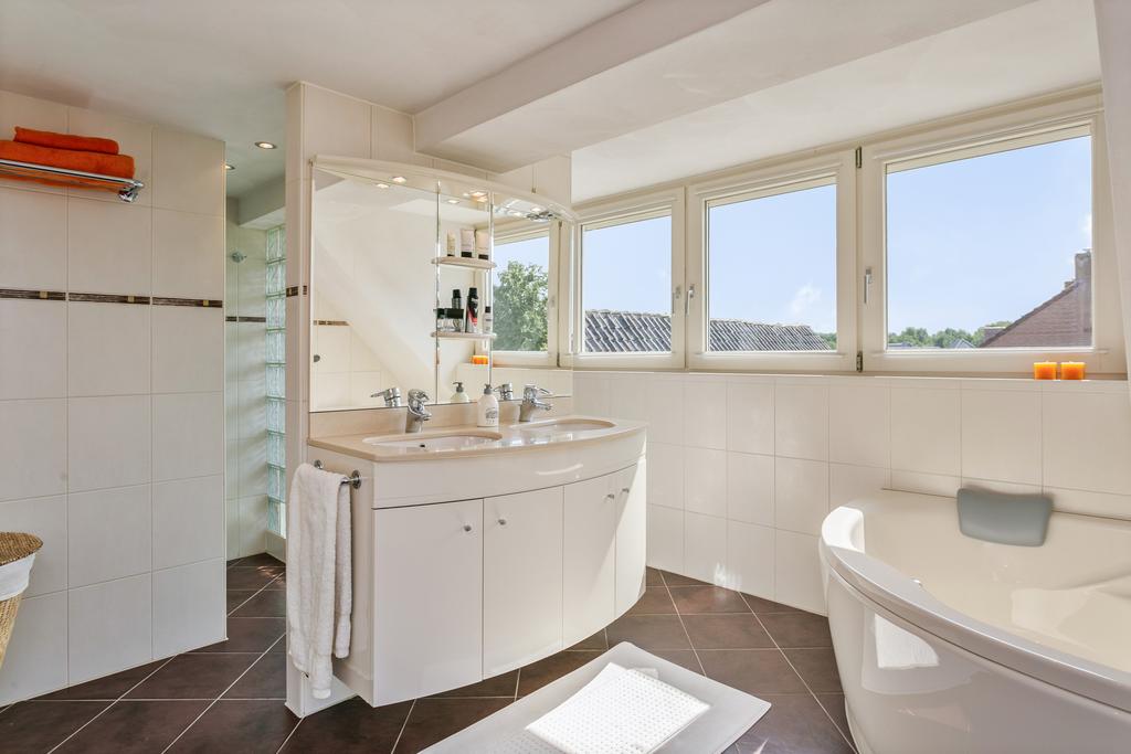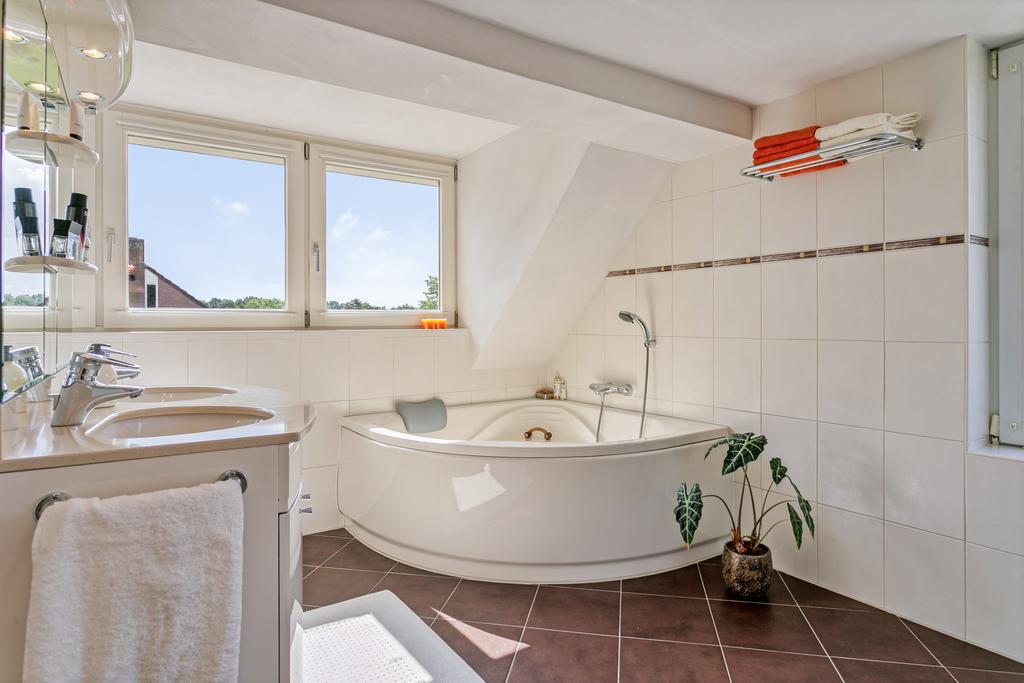 - Ligbad, douche, wastafel, toilet, dubbele wastafel, wastafelmeubel en inloopdouche