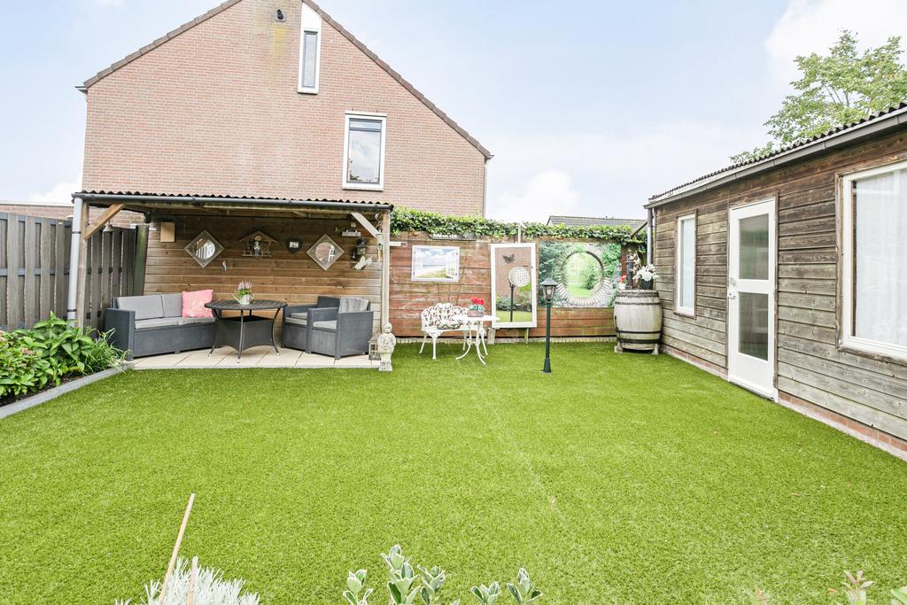 De tuin is toegankelijk vanuit de schuifpui in de woonkamer of loopdeur in de bijkeuken. De diverse tuin beschikt over meerdere gemakken en is gunstig op het zuiden georiënteerd. Met meerdere terrassen en een overkapping zijn er genoeg plaatsen om tot rust te komen of een zithoek te creëren. Daarnaast beschikt de tuin over een garage met roldeur waarin u onder andere een auto kan stallen. Ook is er een royale schuur aanwezig met bergzolder, elektra en verlichting. Dit maakt de tuin ideaal voor meerdere doeleinden waardoor de tuin multifunctioneel te noemen is.