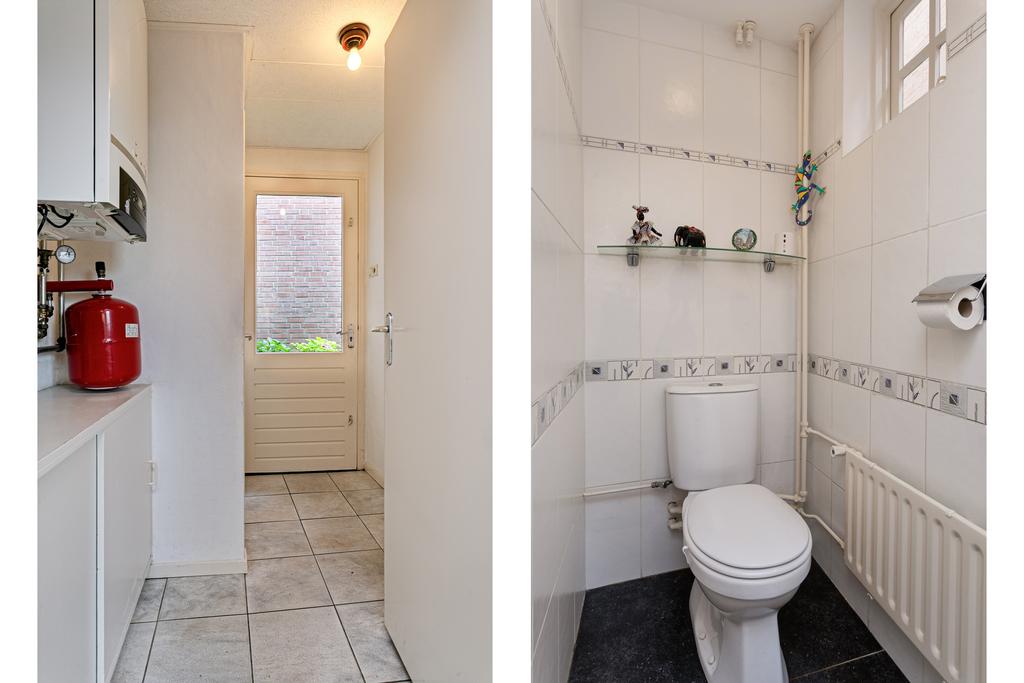 Via de voordeur betreedt u het pand, vervolgens komt u uit in de entree met meterkast. Vanuit de entree is de sfeervolle woonkamer bereikbaar welke is uitgerust met een houten vloer. Er is genoeg ruimte voor een zitgedeelte en een eettafel met zes stoelen. De radiator aan de voorzijde van de woonkamer is afgewerkt in de vorm van een ombouw, daarnaast geeft de nis aan de achterzijde een karakteristiek element mee aan de woonkamer. Diverse raampartijen zorgen voor genoeg lichtinval. Ook is er bergingsruimte aanwezig in de vorm van een kelder. Middels de loopdeur komt u in de ruime keuken terecht. De keuken is van meerdere gemakken voorzien zoals een inductie kookplaat, afzuigkap, oven, vaatwasser en koelkast. Tevens is er ruimte om een extra zithoek te creëren. De technische ruimte is vanuit de keuken bereikbaar. De opstelling van de cv-ketel is hier gerealiseerd, ook geeft deze ruimte toegang tot de badkamer het toilet en het zijperceel. De badkamer beschikt over een ligbad, wastafel en een douche. De berging aan de achterzijde van de woning dient nu als ruimte voor de wasapparatuur maar zou echter ook als toekomstige badkamer kunnen fungeren.