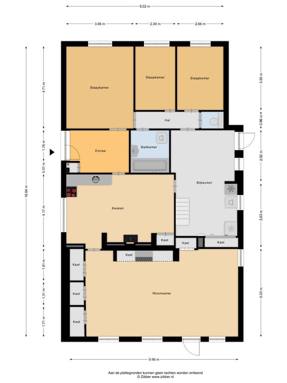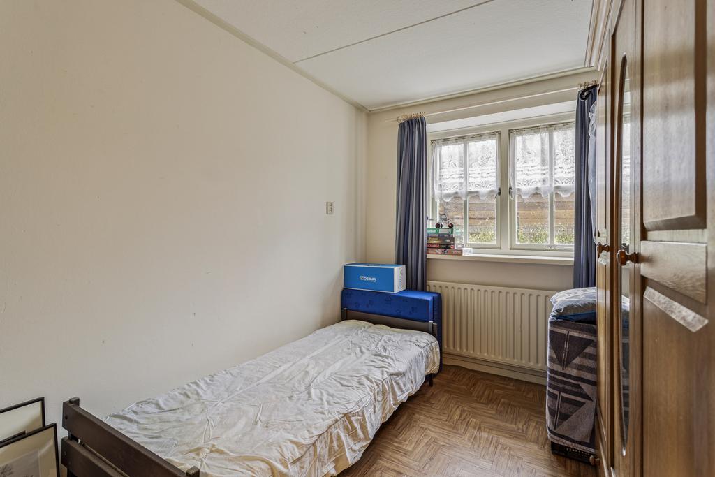 De bijkeuken is middels een loopdeur in de keuken bereikbaar, dit is een praktische ruimte met een aansluiting voor het witgoed en een koel-vries combinatie. Vanuit hier is de hal bereikbaar welke toegang verschaft tot drie slaapkamers op de begane grond, een separaat toilet en de badkamer. Dit maakt de woning levensloopbestendig aangezien alle voorzieningen zich op de begane grond bevinden.