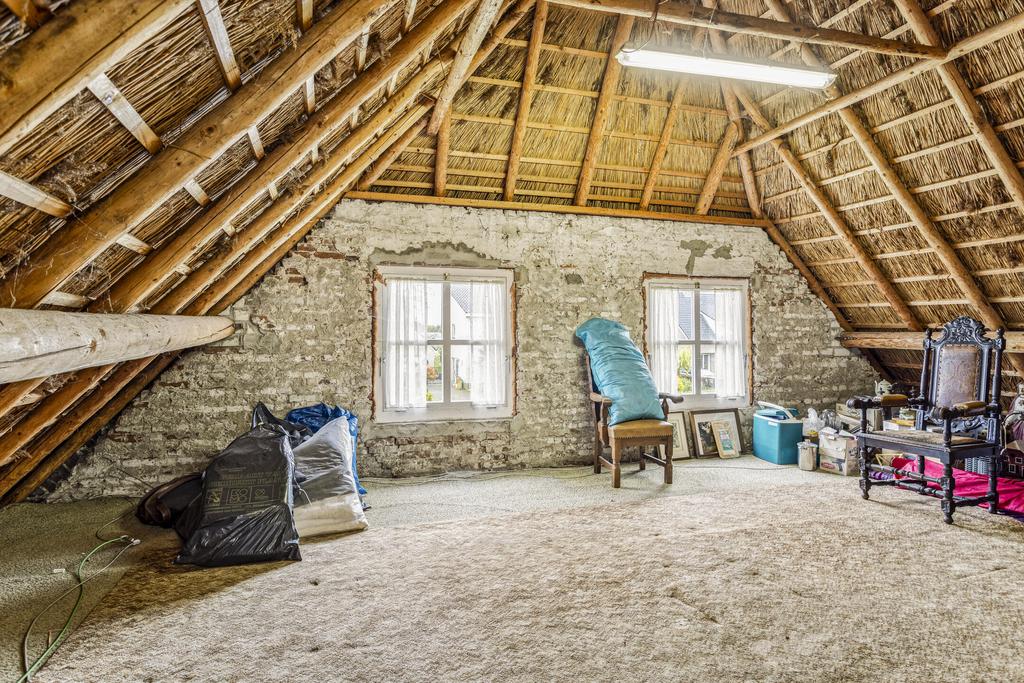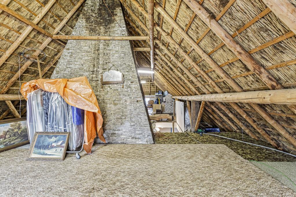 Vanuit de bijkeuken is middels een vaste trapopgang de eerste verdieping bereikbaar. Momenteel wordt de verdieping als opbergruimte gebruikt maar door de grootte van de etage is er de mogelijkheid om meerdere slaapkamers te creëren. Er is meer dan voldoende ruimte voor drie of zelfs vier slaapkamers op de verdieping.