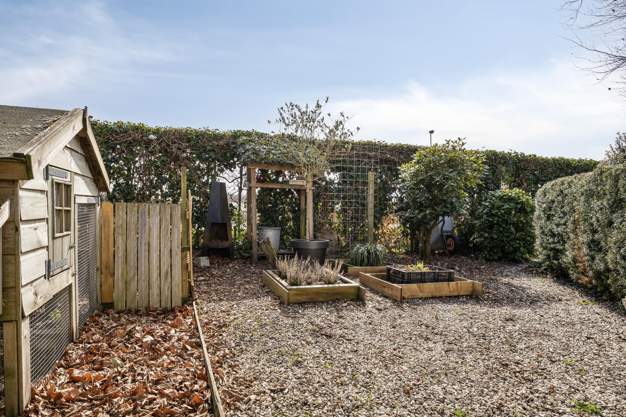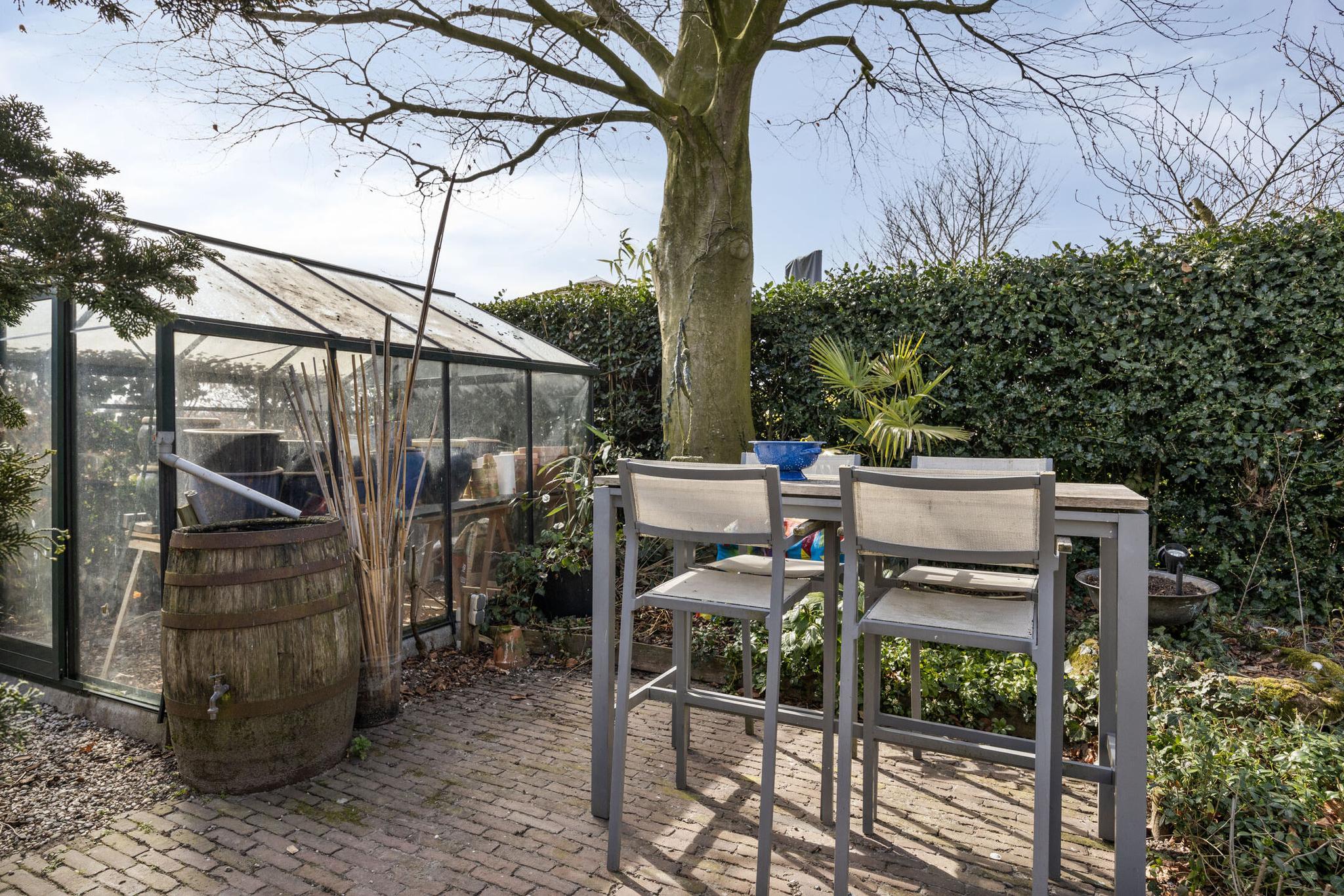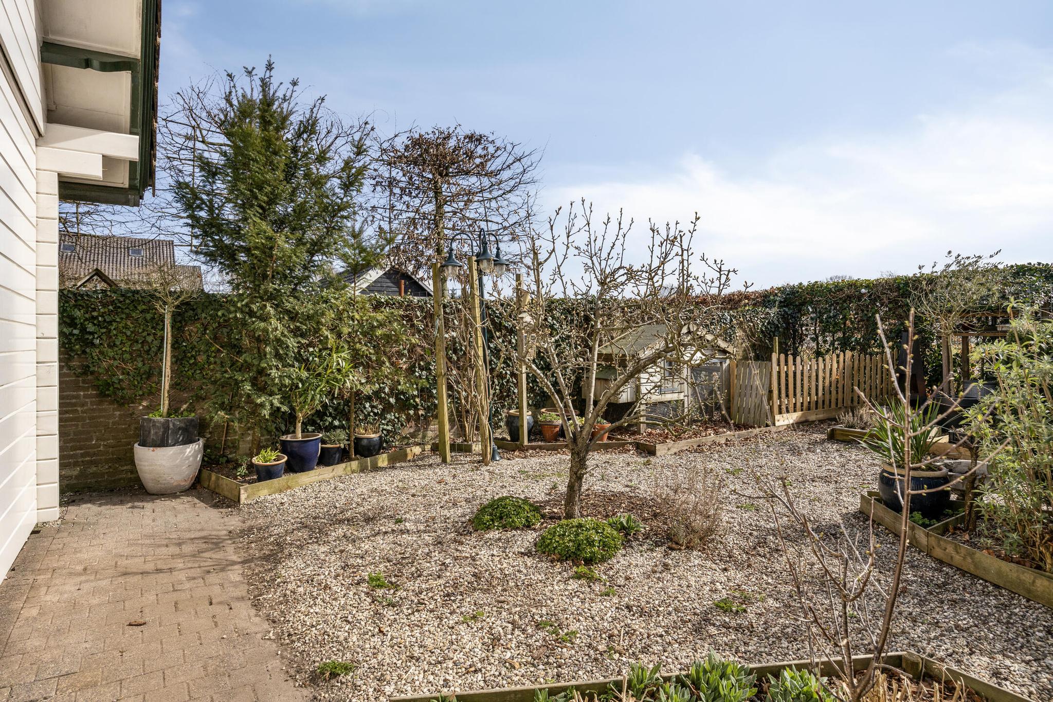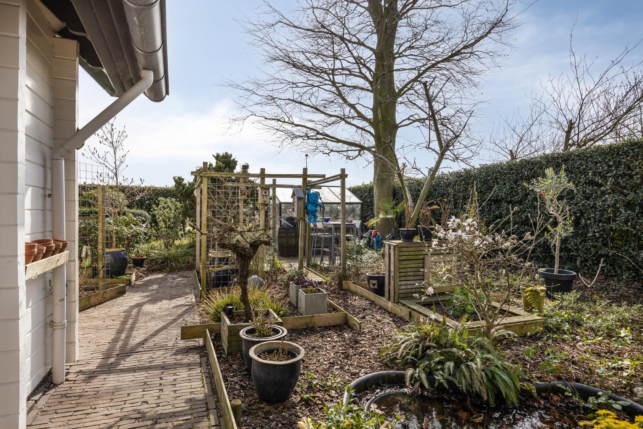 De buitenruimte van deze woning, georiënteerd op het zonnige zuiden, is ruim van formaat en fraai aangelegd. De combinatie van diverse bestrating en een gevarieerde beplanting maakt de tuin zowel praktisch als sfeervol. Direct vanuit de woonkamer is er een ruime plek beschikbaar waar een tuintafel met stoelen prima tot zijn recht komt. Deze plek is ideaal om te verbinden met de binnenruimte, waardoor je gemakkelijk van binnen naar buiten kunt stappen. Aan de achterzijde van het perceel bevindt zich een glazen kas, perfect voor het verbouwen van groente, fruit of bloemen. Deze kas biedt niet alleen een handige ruimte voor de tuinliefhebber, maar voegt ook een charmant element toe aan de buitenruimte. Via de achterzijde van het perceel is de tuin ook toegankelijk, waar je kunt genieten van het prachtige uitzicht over de uitgestrekte landerijen. Tot slot is er een aangebouwde berging, ideaal voor het opslaan van tuingereedschap of andere benodigdheden. Daarnaast biedt de zijkant van de woning een achterom via een houten poort, wat zorgt voor extra gemak en toegankelijkheid.