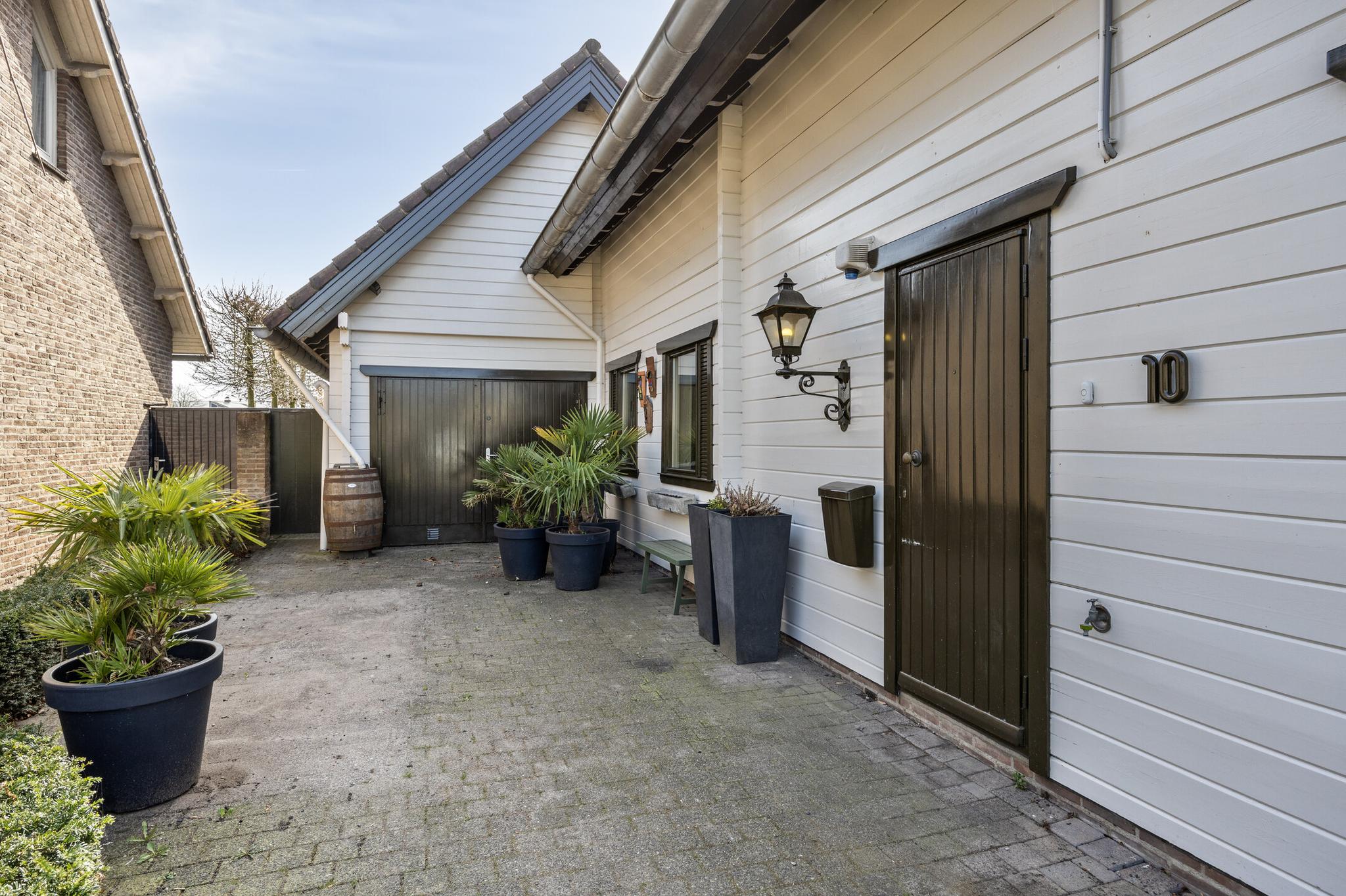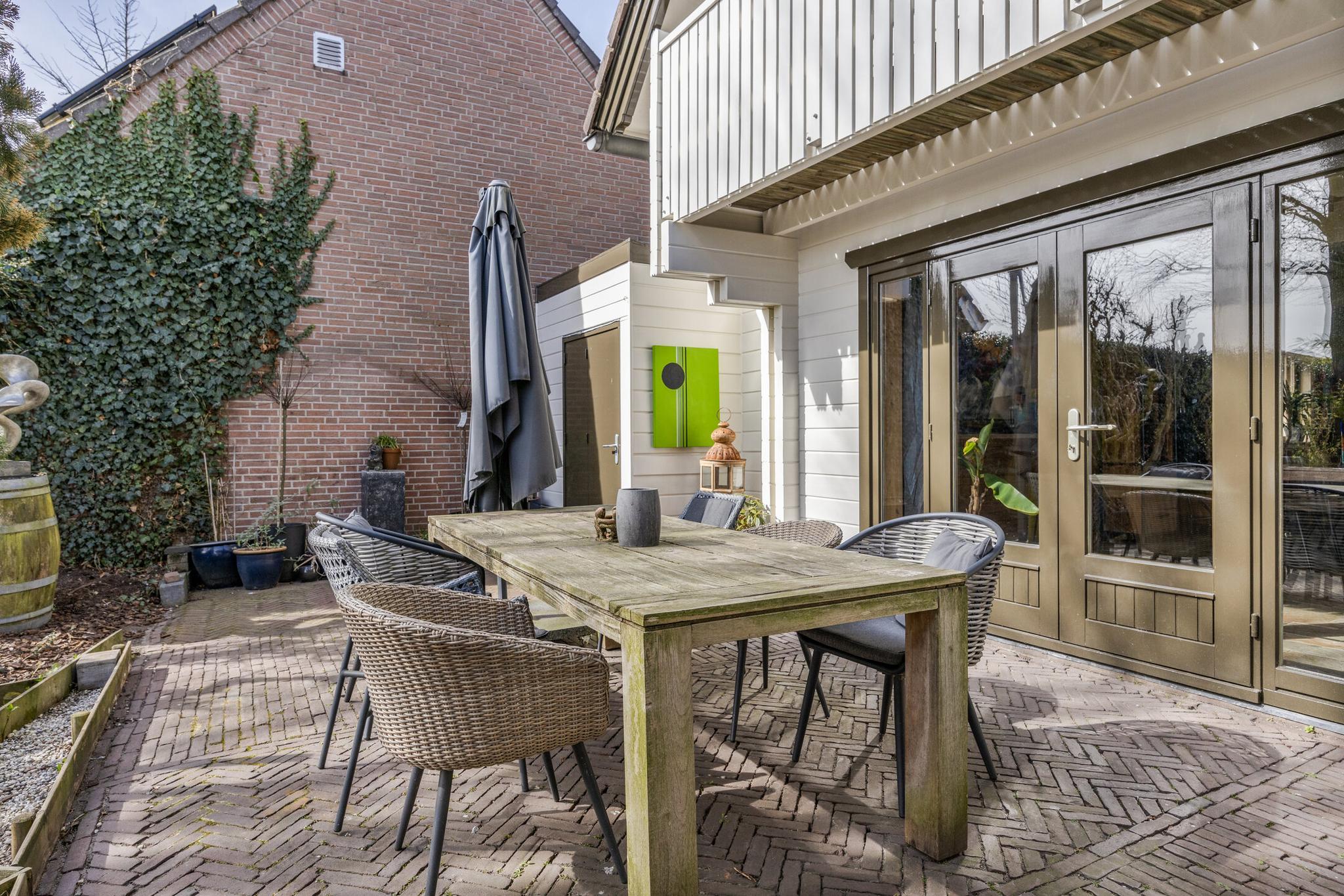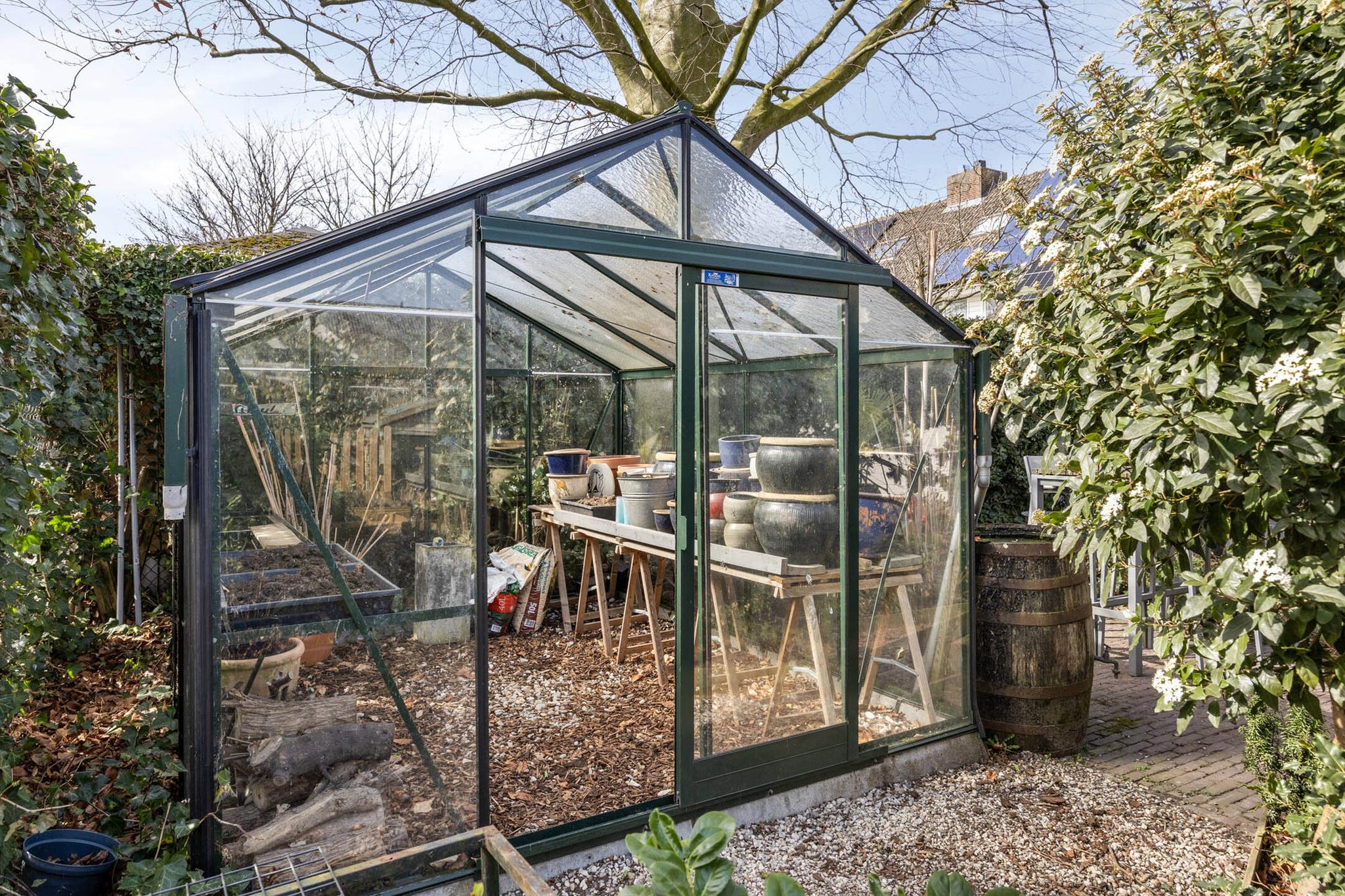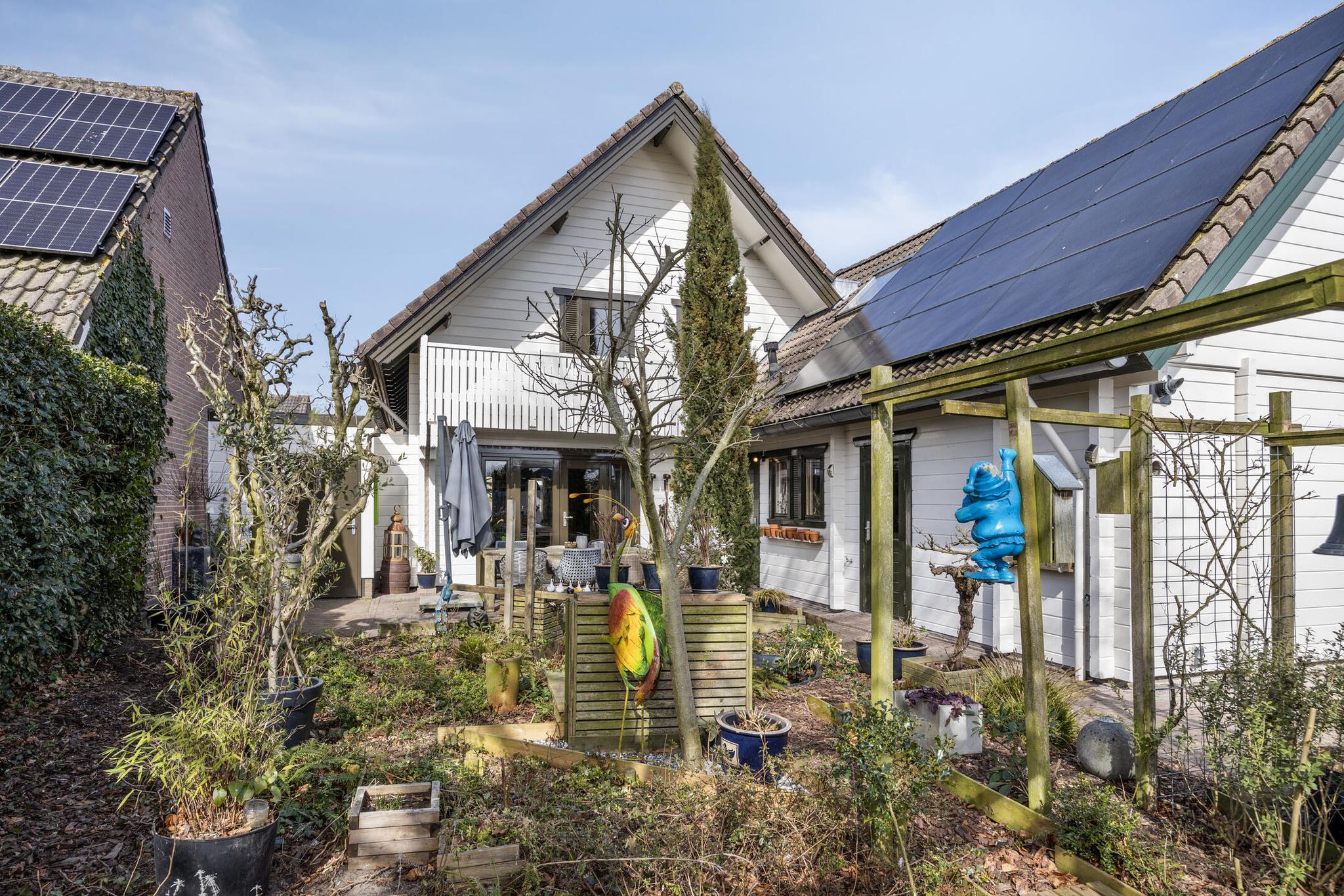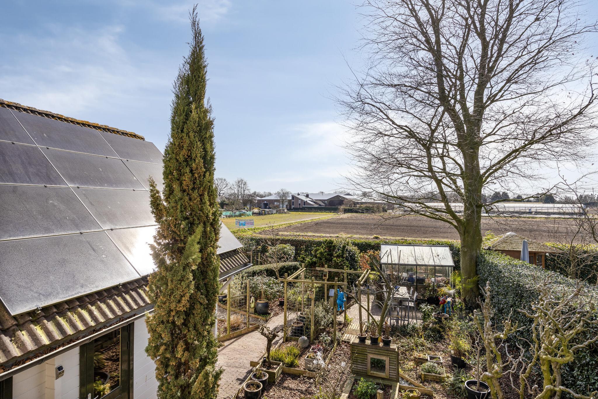 De buitenruimte van deze woning, georiënteerd op het zonnige zuiden, is ruim van formaat en fraai aangelegd. De combinatie van diverse bestrating en een gevarieerde beplanting maakt de tuin zowel praktisch als sfeervol. Direct vanuit de woonkamer is er een ruime plek beschikbaar waar een tuintafel met stoelen prima tot zijn recht komt. Deze plek is ideaal om te verbinden met de binnenruimte, waardoor je gemakkelijk van binnen naar buiten kunt stappen. Aan de achterzijde van het perceel bevindt zich een glazen kas, perfect voor het verbouwen van groente, fruit of bloemen. Deze kas biedt niet alleen een handige ruimte voor de tuinliefhebber, maar voegt ook een charmant element toe aan de buitenruimte. Via de achterzijde van het perceel is de tuin ook toegankelijk, waar je kunt genieten van het prachtige uitzicht over de uitgestrekte landerijen. Tot slot is er een aangebouwde berging, ideaal voor het opslaan van tuingereedschap of andere benodigdheden. Daarnaast biedt de zijkant van de woning een achterom via een houten poort, wat zorgt voor extra gemak en toegankelijkheid.