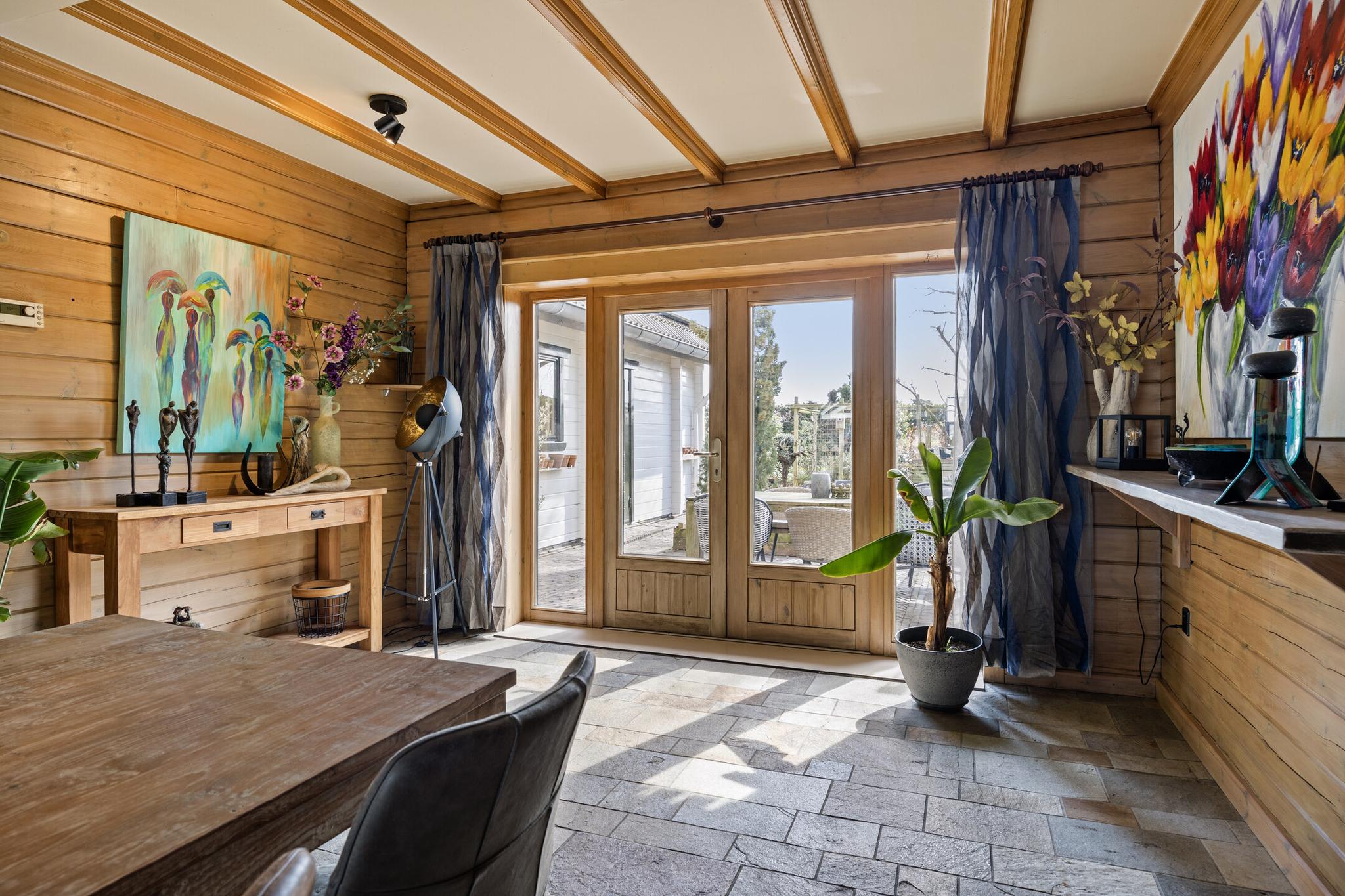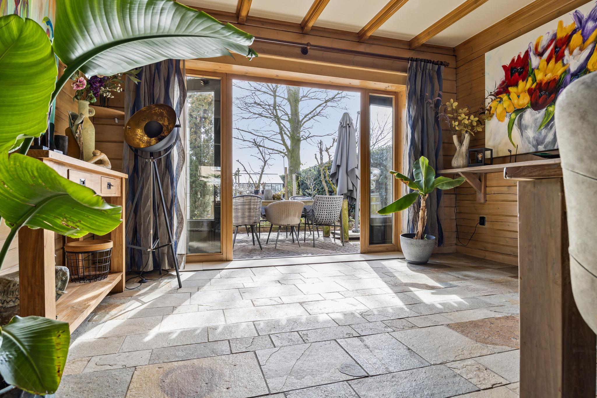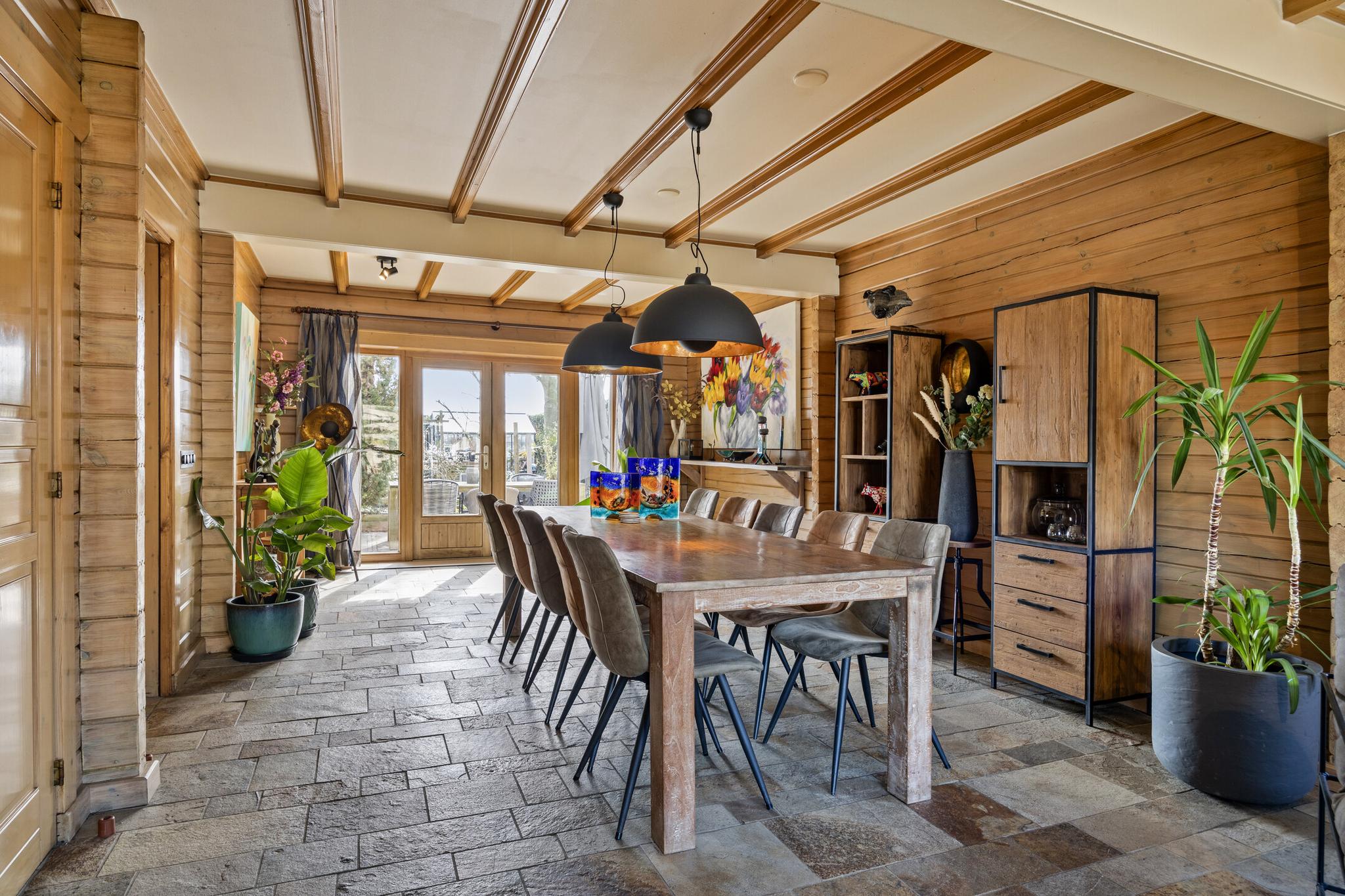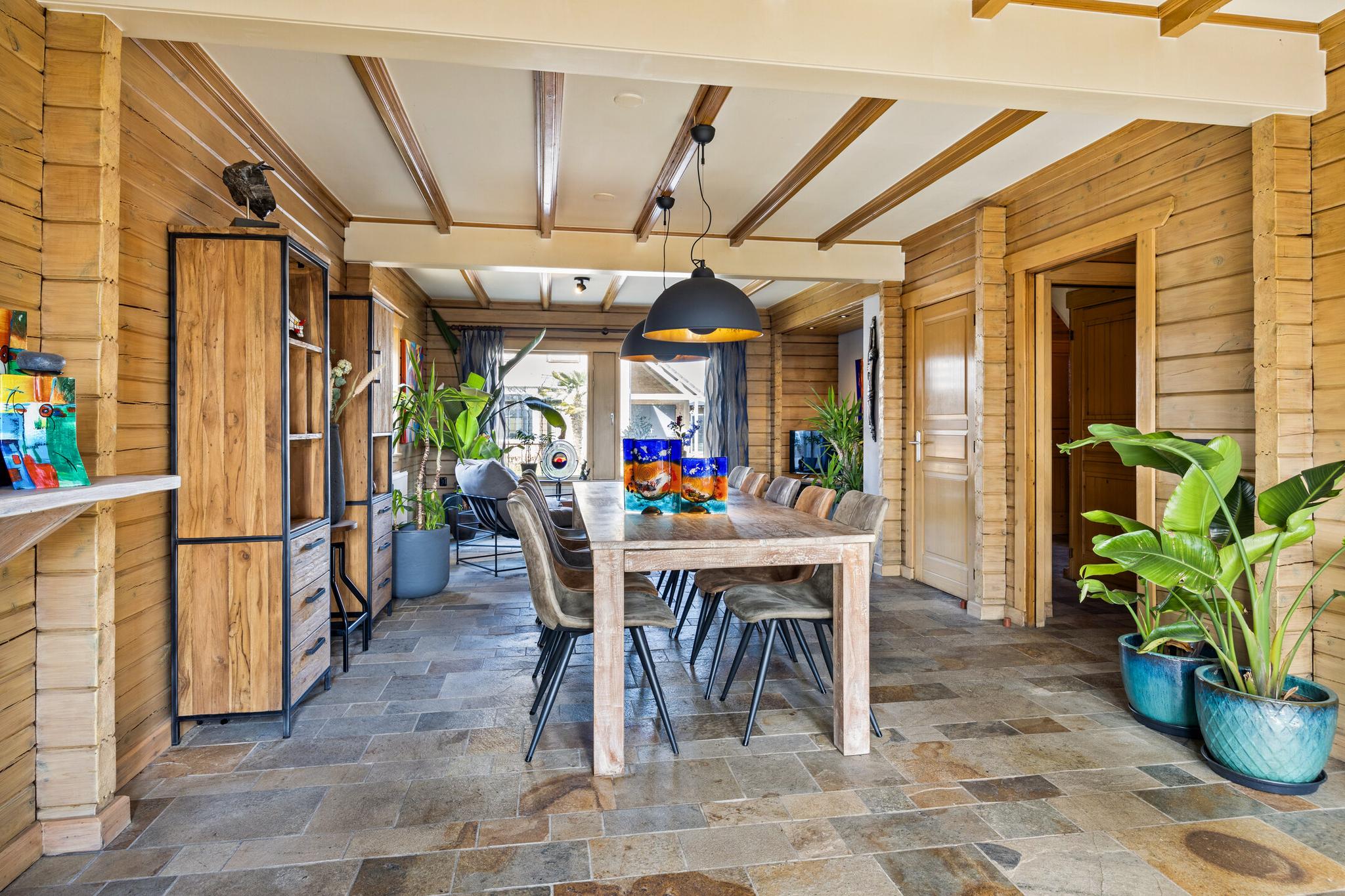 Via een bijzonder ruime hal betreden we deze karakteristieke woning, waarin het unieke karakter vanaf het eerste moment duidelijk zichtbaar is. In de woonkamer komt dit karakter uitstekend tot uiting: de combinatie van een betegelde vloerafwerking en houten details zorgt voor een sfeervolle uitstraling. Dankzij de vele raampartijen stroomt het daglicht de ruimte binnen, waardoor de woonkamer nog aangenamer aanvoelt. Aan de voorzijde van de woonkamer is er voldoende ruimte voor een gezellige zitkamer, perfect voor het plaatsen van een royale hoekbank. Aan de achterzijde biedt de woning ruimte voor een grote eettafel, ideaal voor het organiseren van gezellige borrels of dineravonden met vrienden en familie. De ruime tuindeuren zorgen voor een perfecte verbinding met de buitenruimte, waardoor de combinatie van binnen en buiten het optimale comfort geeft.